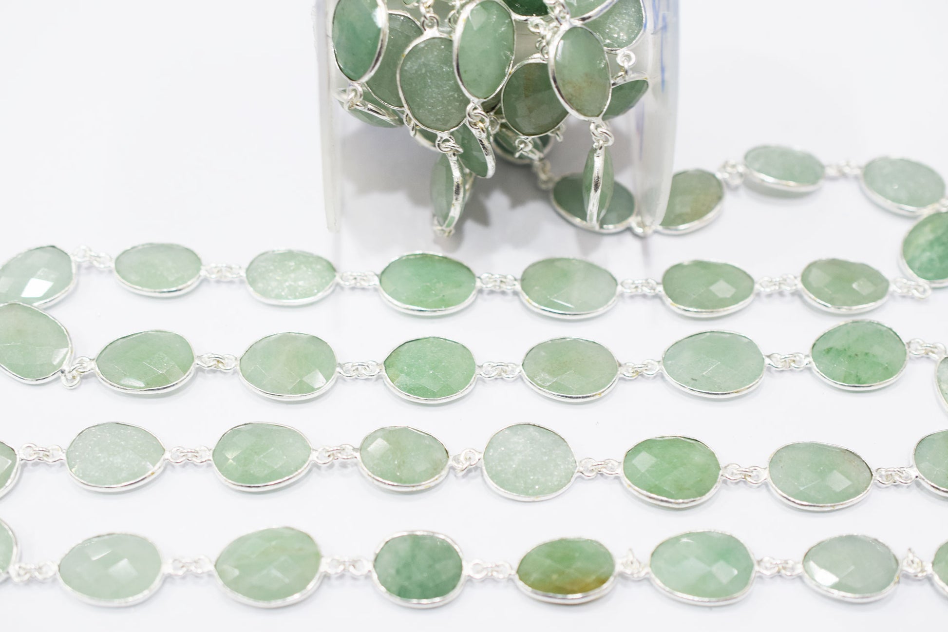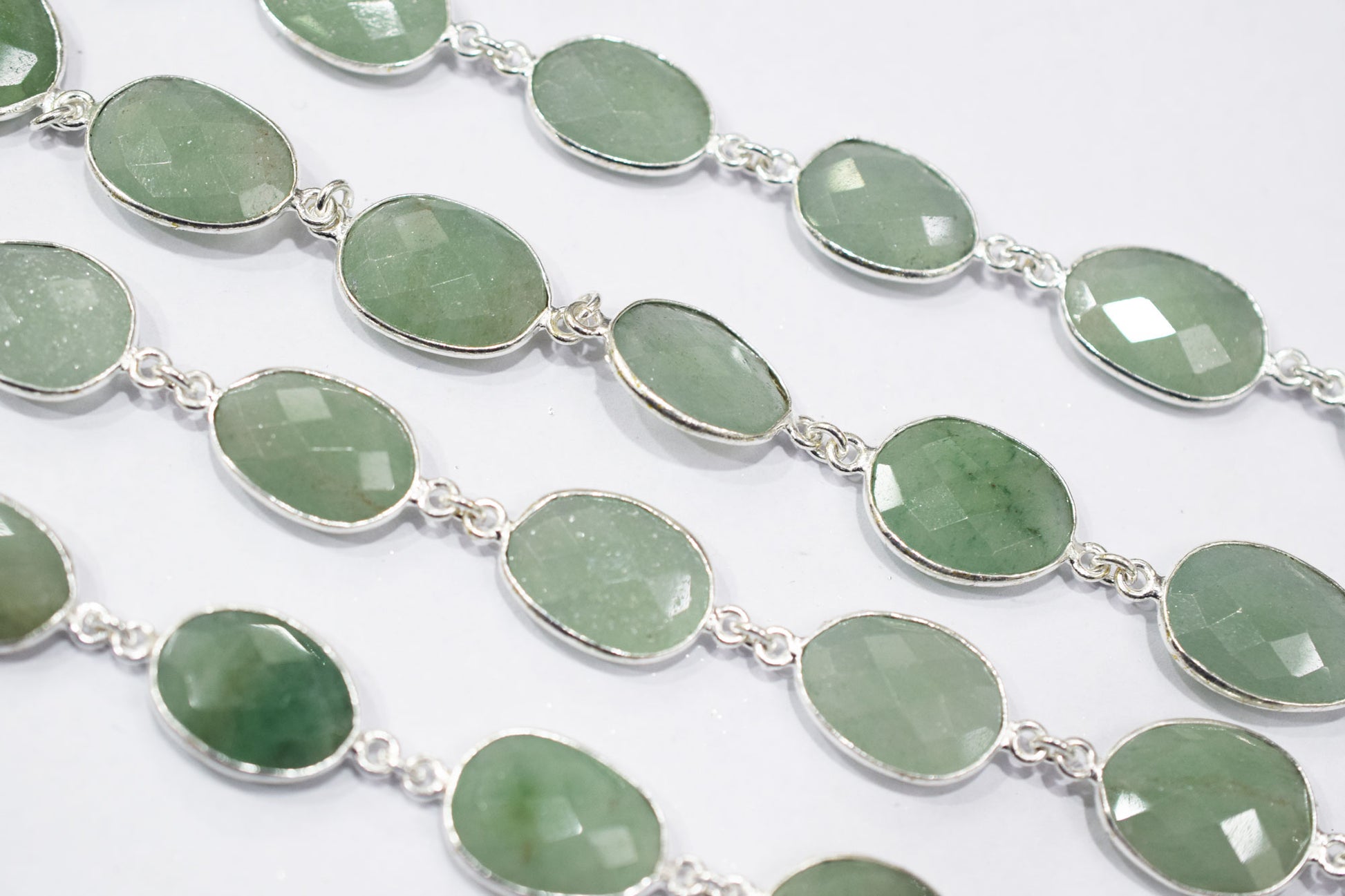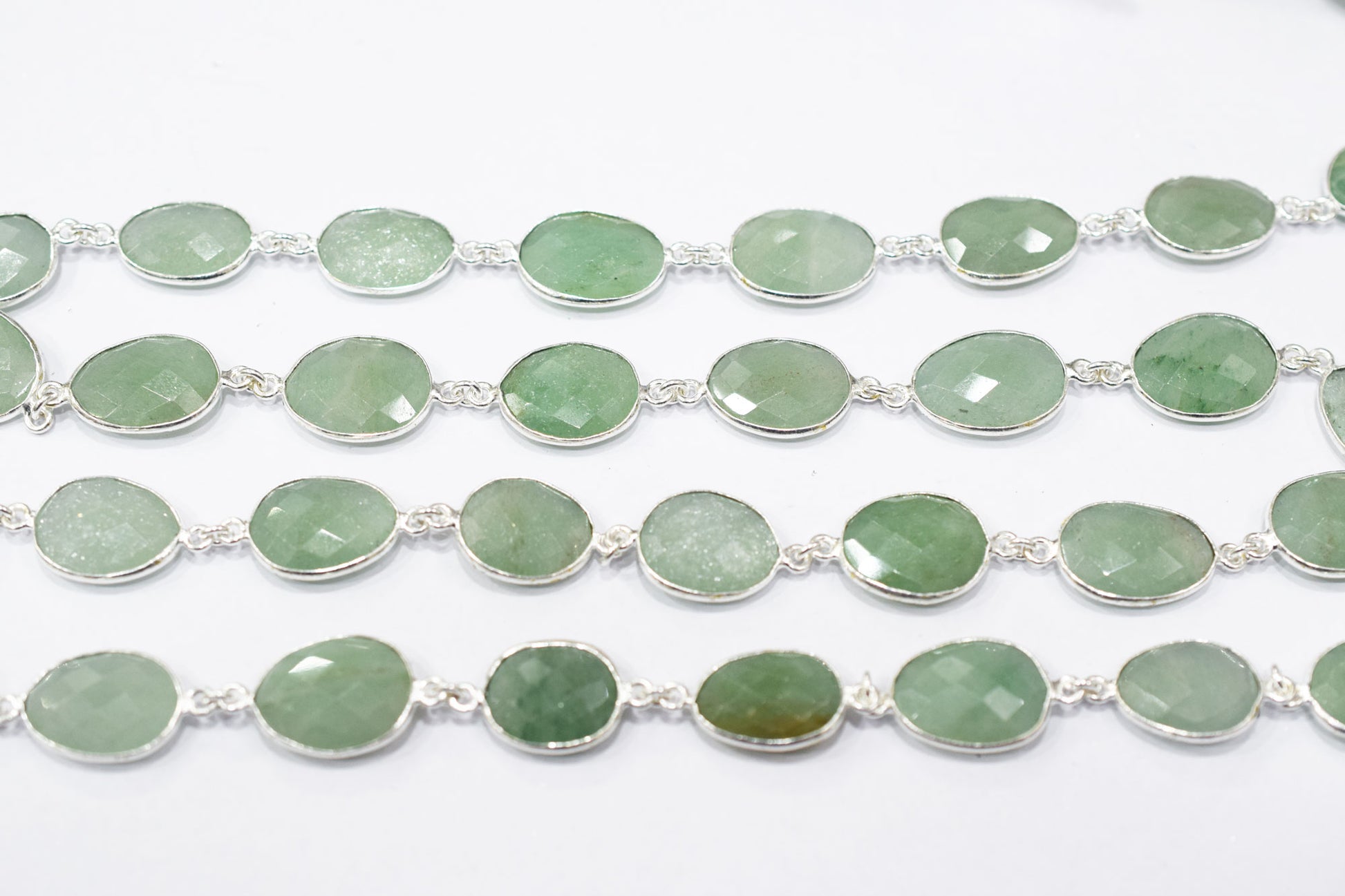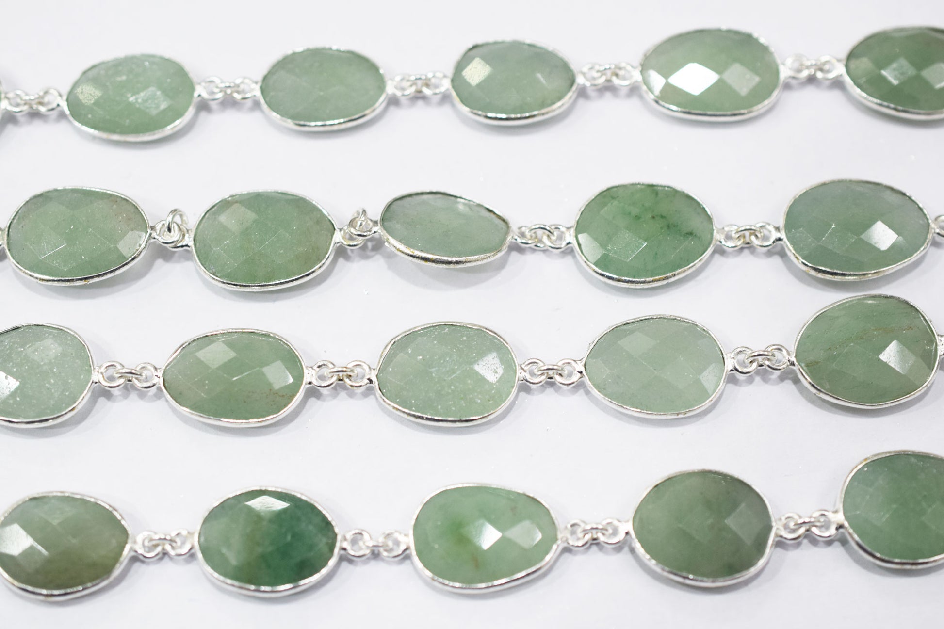 Grape Green Aventurine Faceted Slice Shape Connector Chain , Grape Green Aventurine Free Form Shape Bezel Link Chain , 14x16 - 14x18 mm , RB-6465