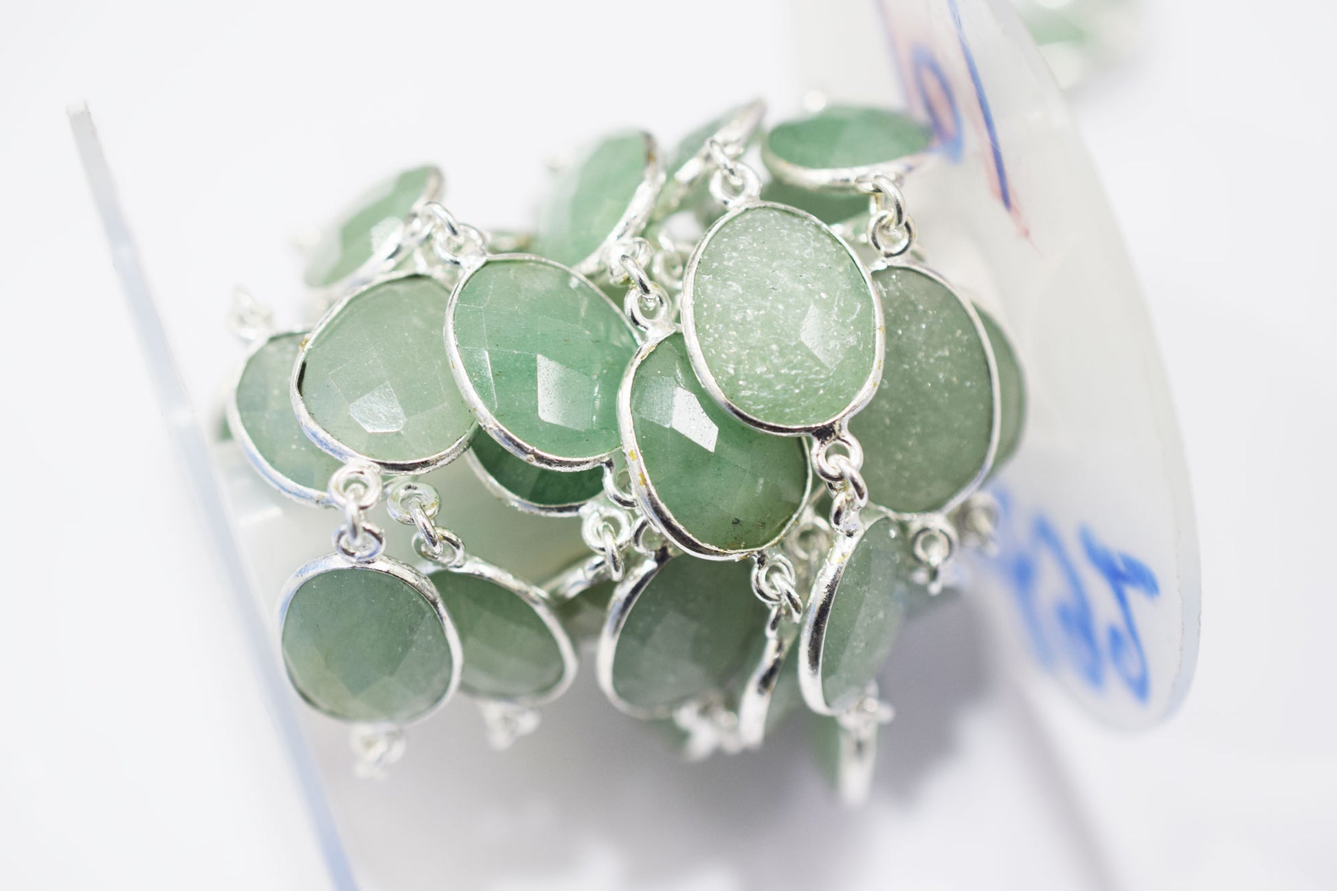 Grape Green Aventurine Faceted Slice Shape Connector Chain , 14x16 - 14x18 mm , RB-6465