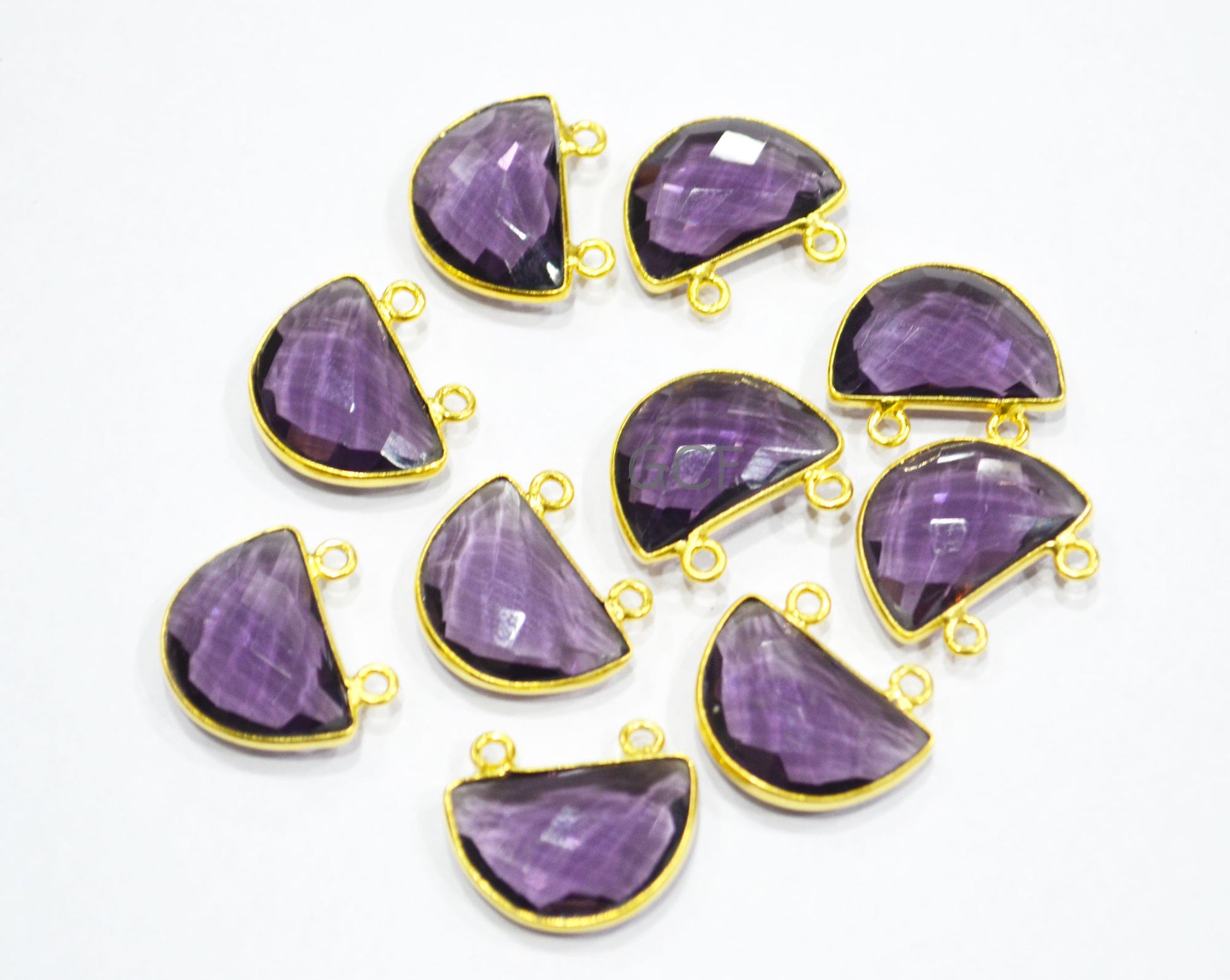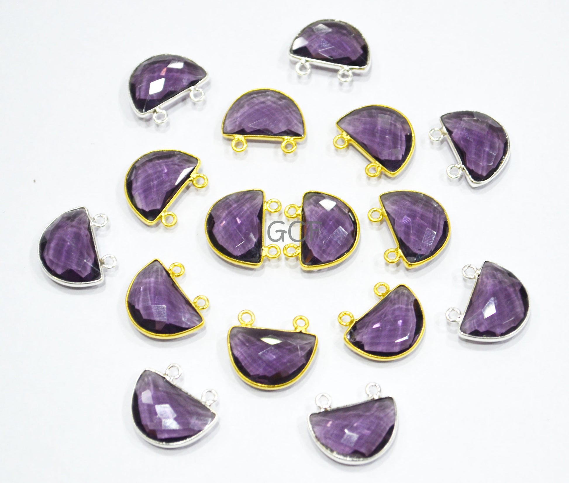 Grape Slush Hydro Quartz Faceted Half Moon Shape Connector ,Grape Slush Hydro Glass Double Bail Connector ,Sold By Piece , 13x19 mm ,RB-7097