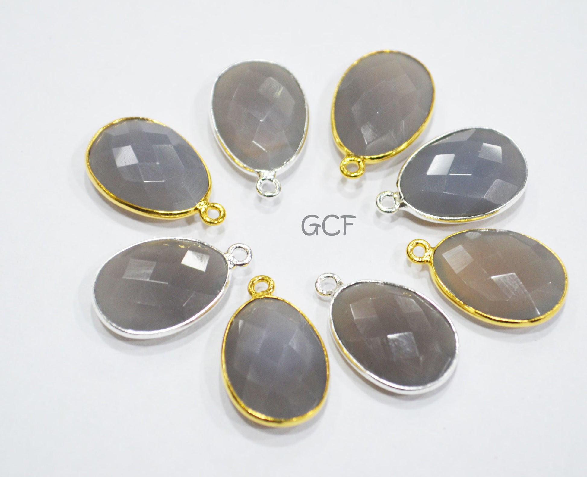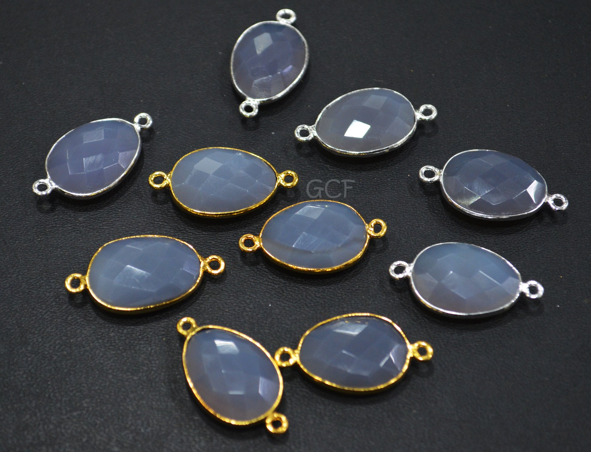 Gray Chalcedony Faceted Egg Shape Connector , Gray Chalcedony Single And Double Bail Bezel Connector , Sold By Piece , 14x18 mm , RB-6915