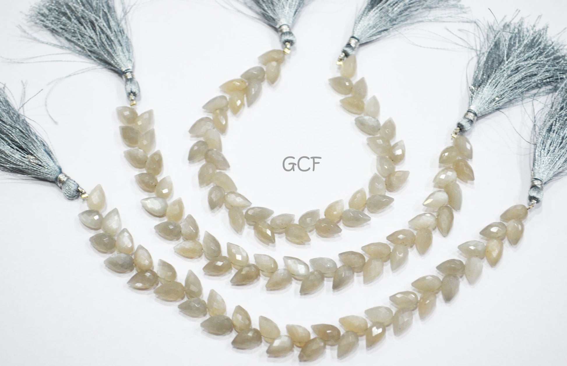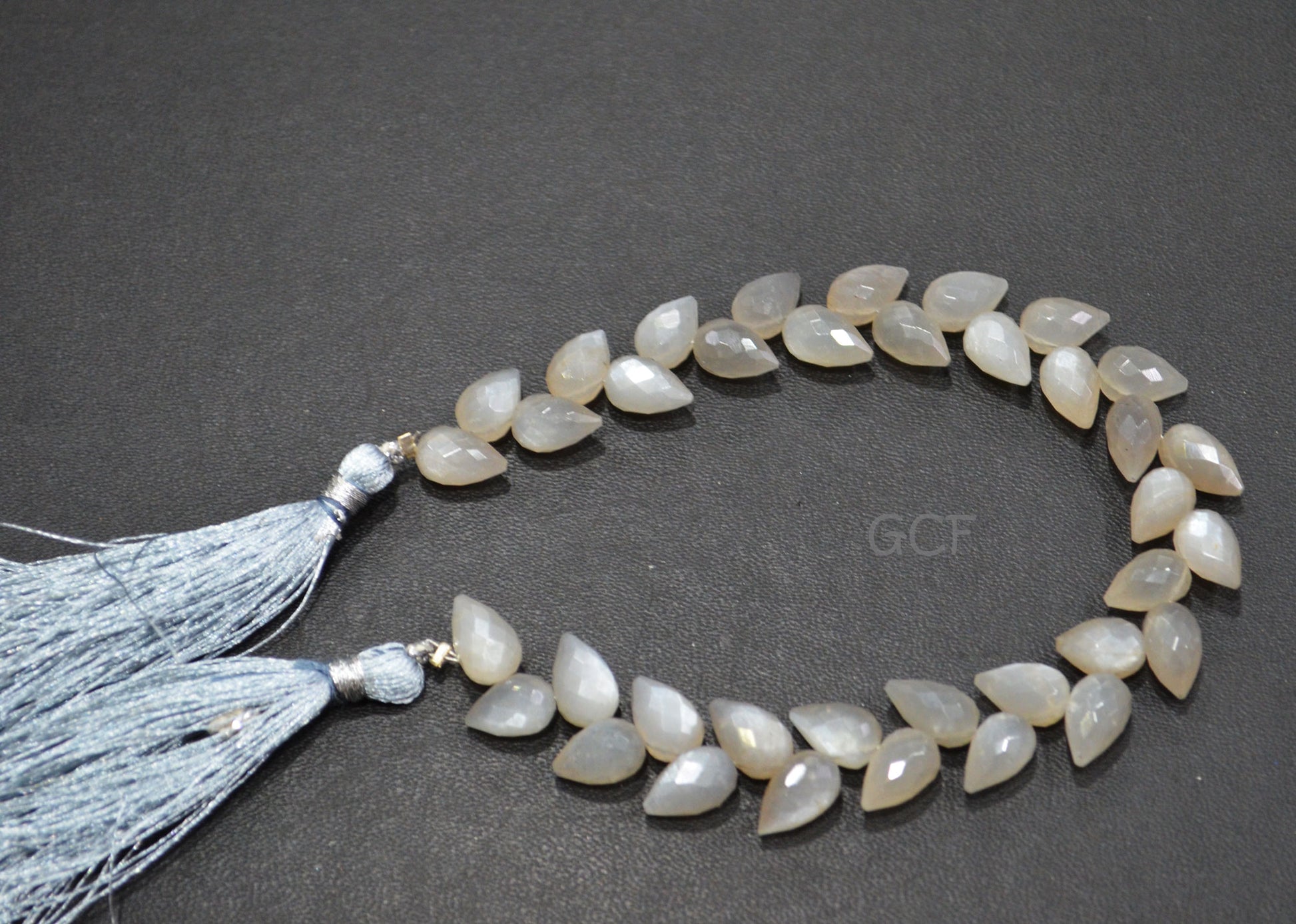 Gray Moonstone Diagonal Drill Tear Drops Shape Beads ,Gray Moonstone Faceted Briolettes ,Sold By Strand ,7.5 Inches , 5.5x9 - 6x10 mm ,31270