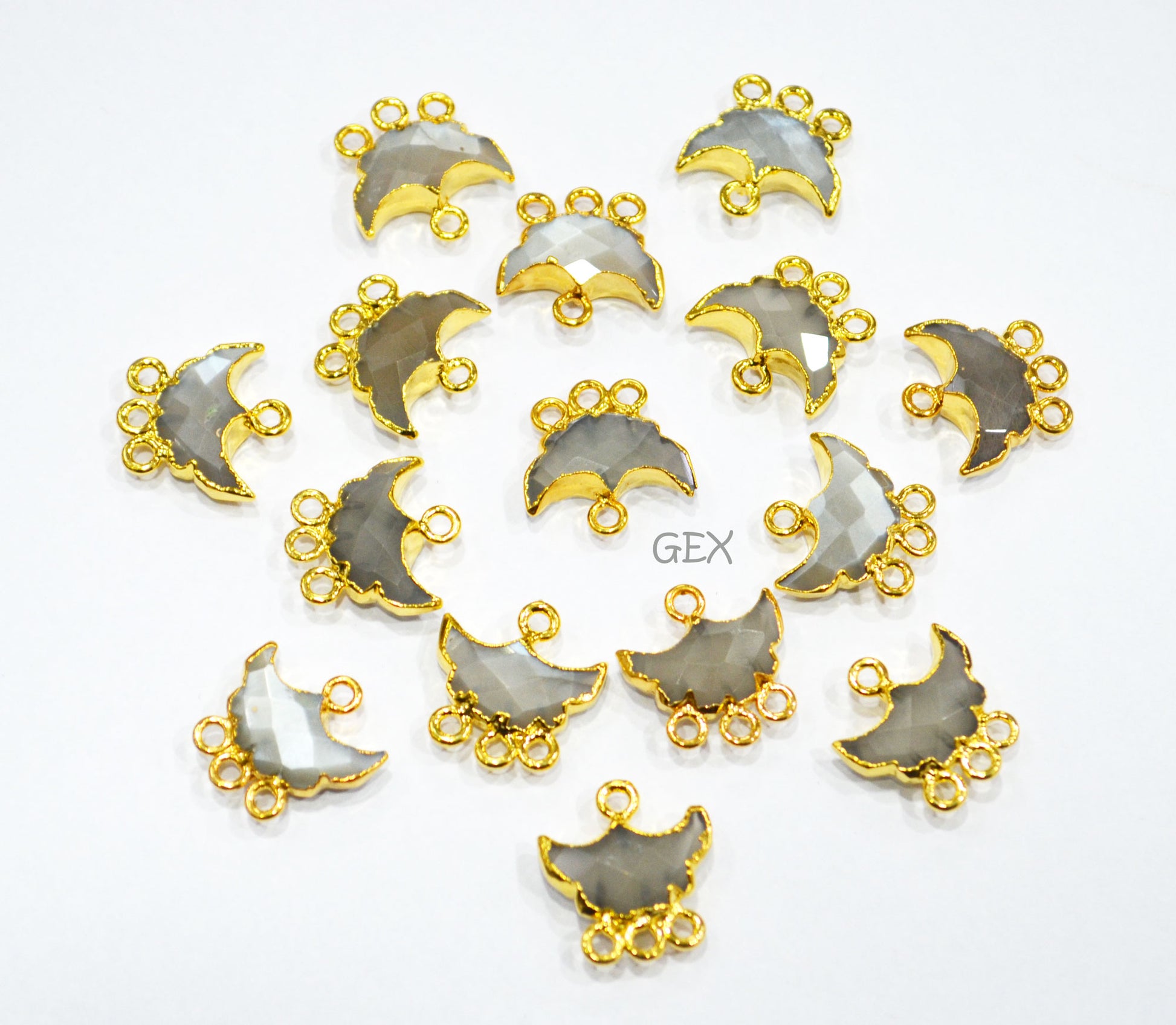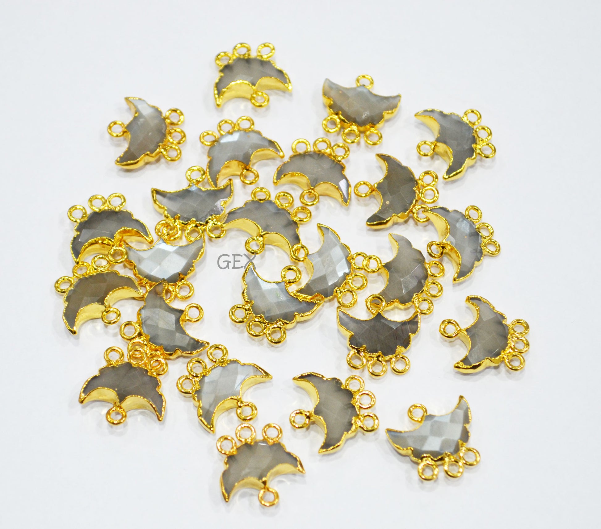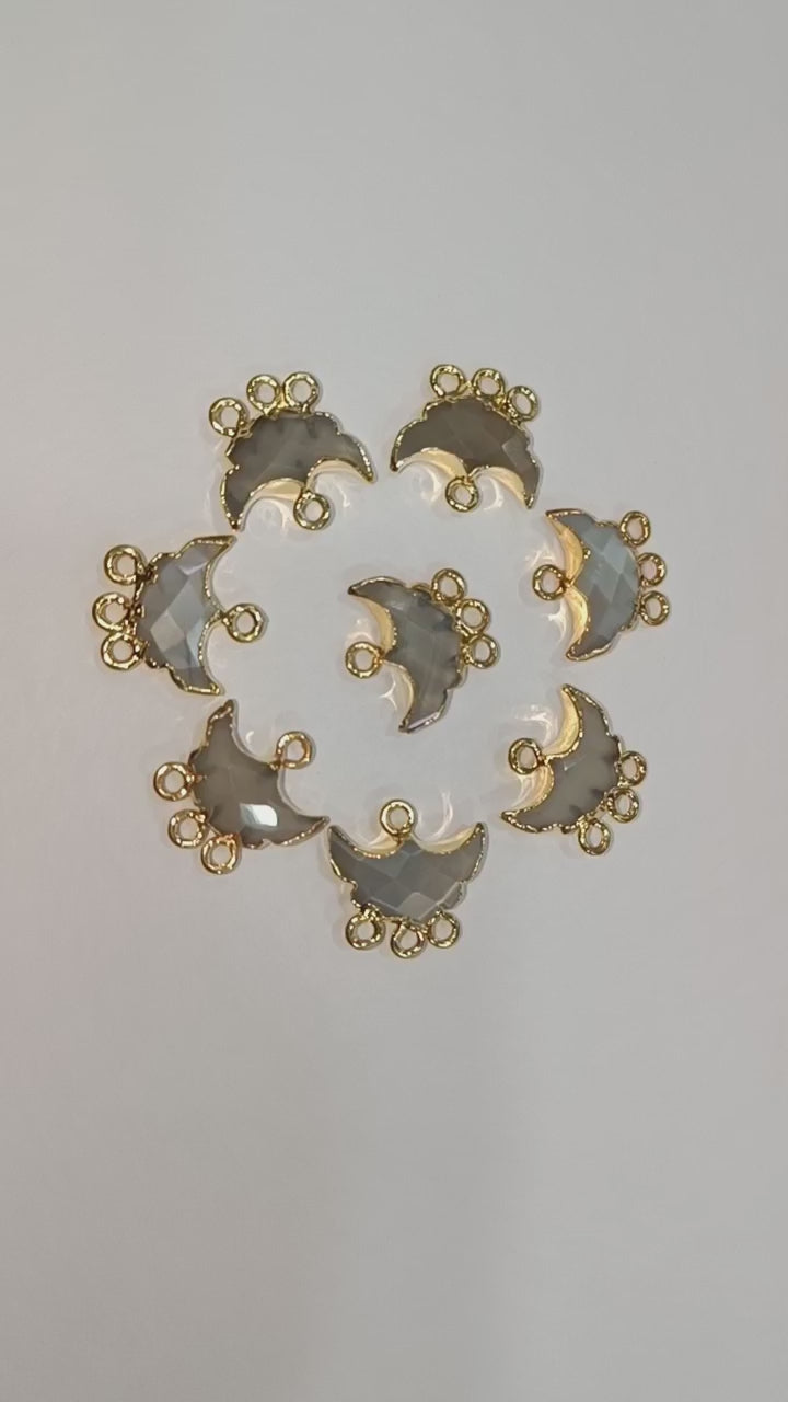 Gray Moonstone Electroplated Half Moon Shape Connector , Gray Moonstone Four Bail Faceted Connector Charm , Sold By Piece , 15 - 16 mm , 31910