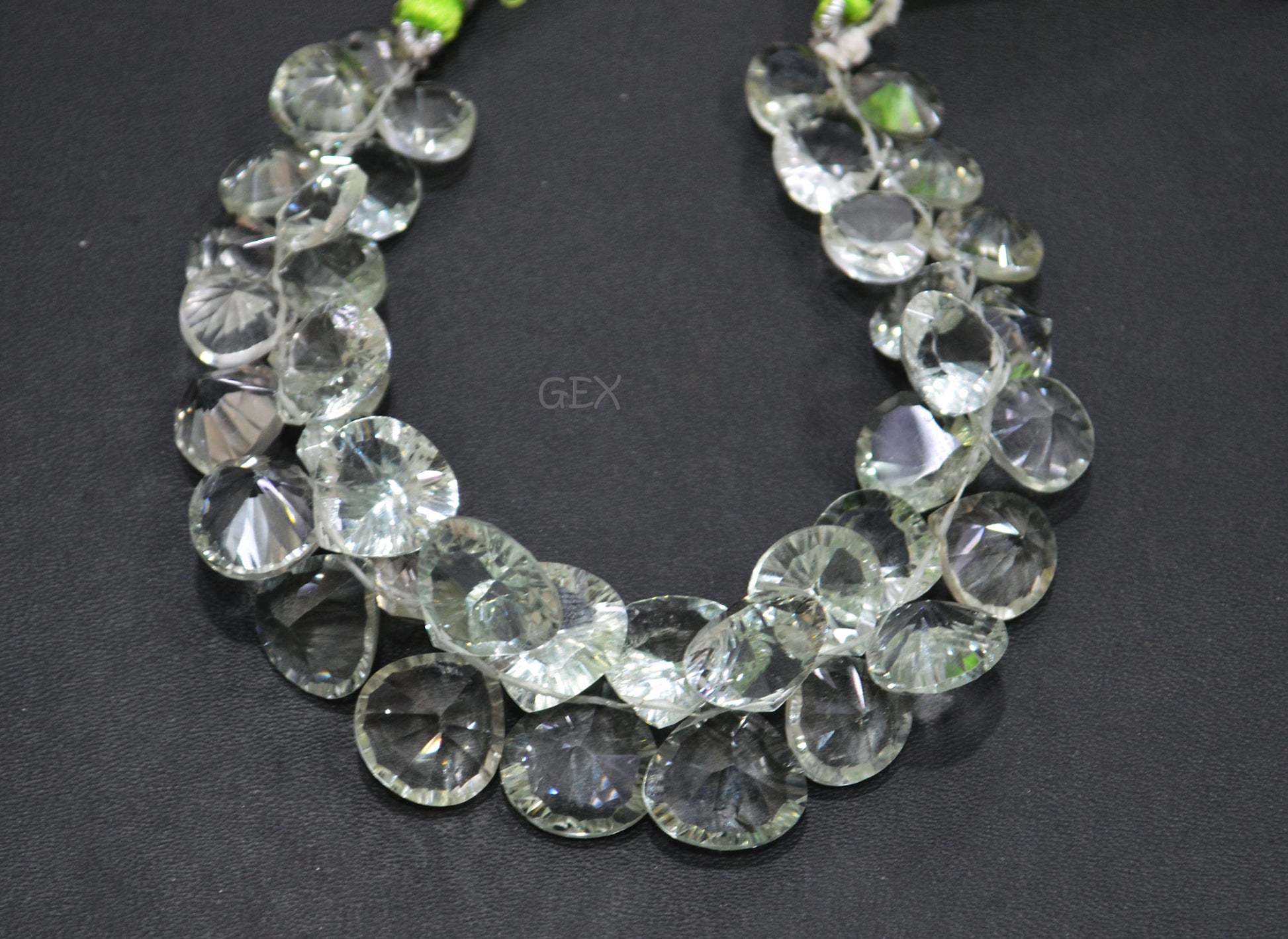 Green Amethyst Concave Cut Heart Shape Beads , Green Amethyst Concave Cut Briolettes , Sold By Strand , 10x10 - 14x14 mm , 7 Inches , BL-2689