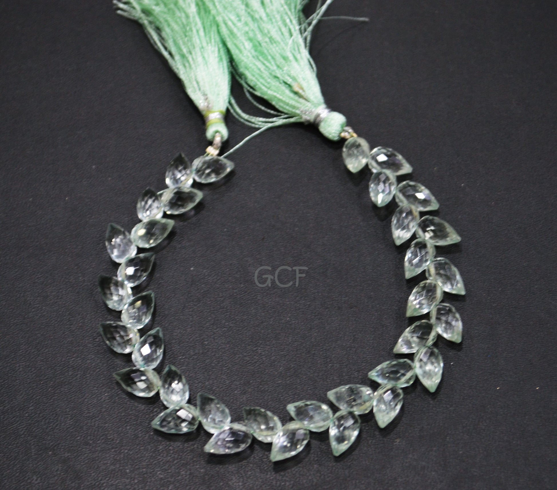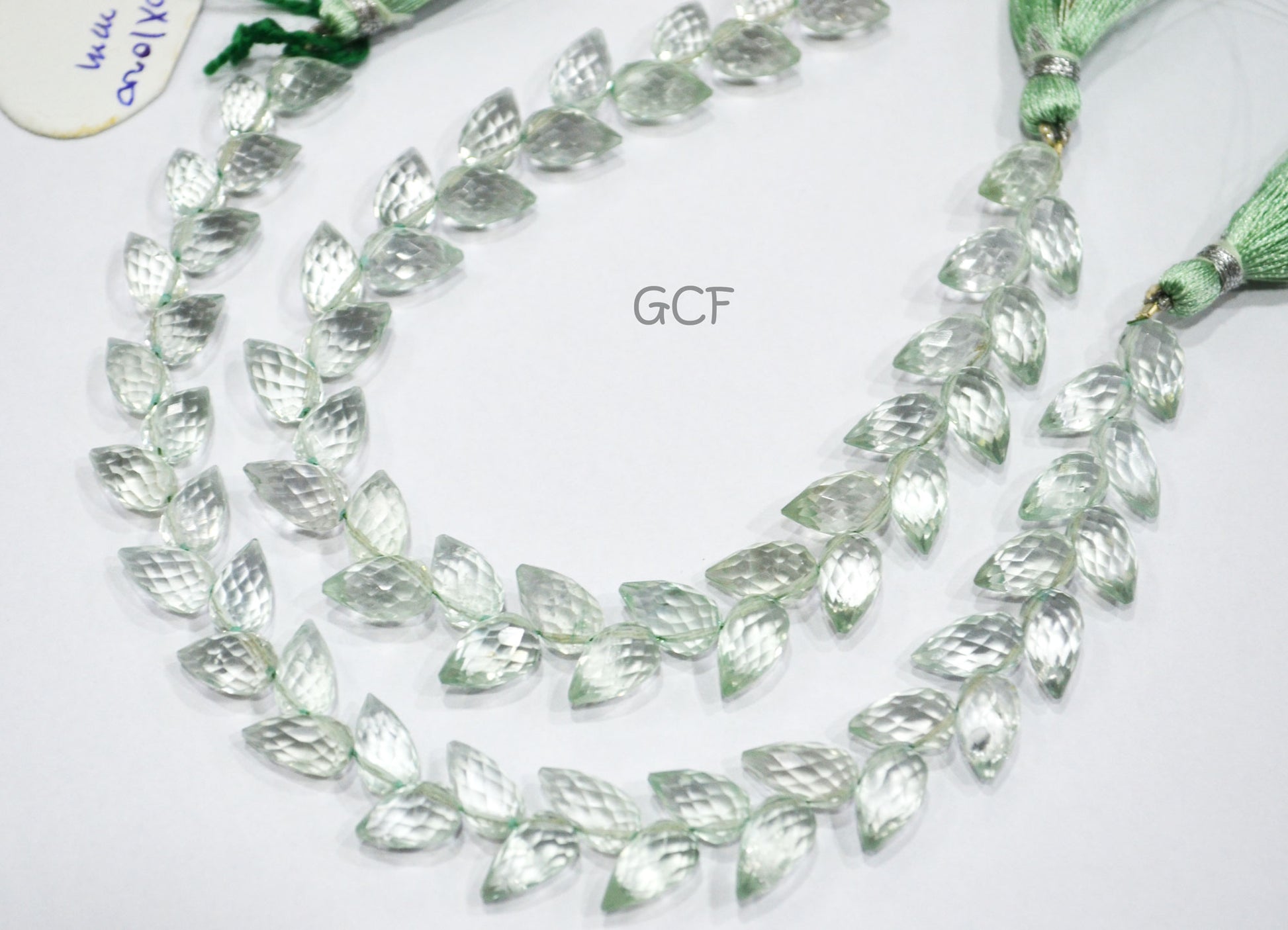 Green Amethyst Diagonal Drill Tear Drops Shape Beads , Green Amethyst Faceted Briolettes , Sold By Strand , 7.5 Inches , 5.5x10 mm , 31247