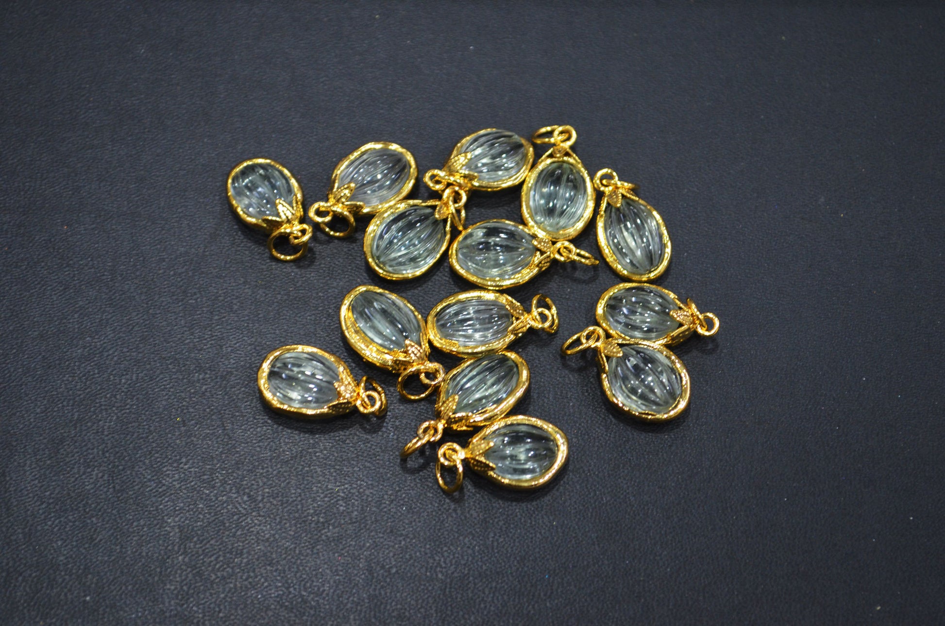 Green Amethyst Electroplated Oval Shape Pendant , Green Amethyst Carved Oval Shape Charm , Sold By Piece , 11x20 mm , RB-7317