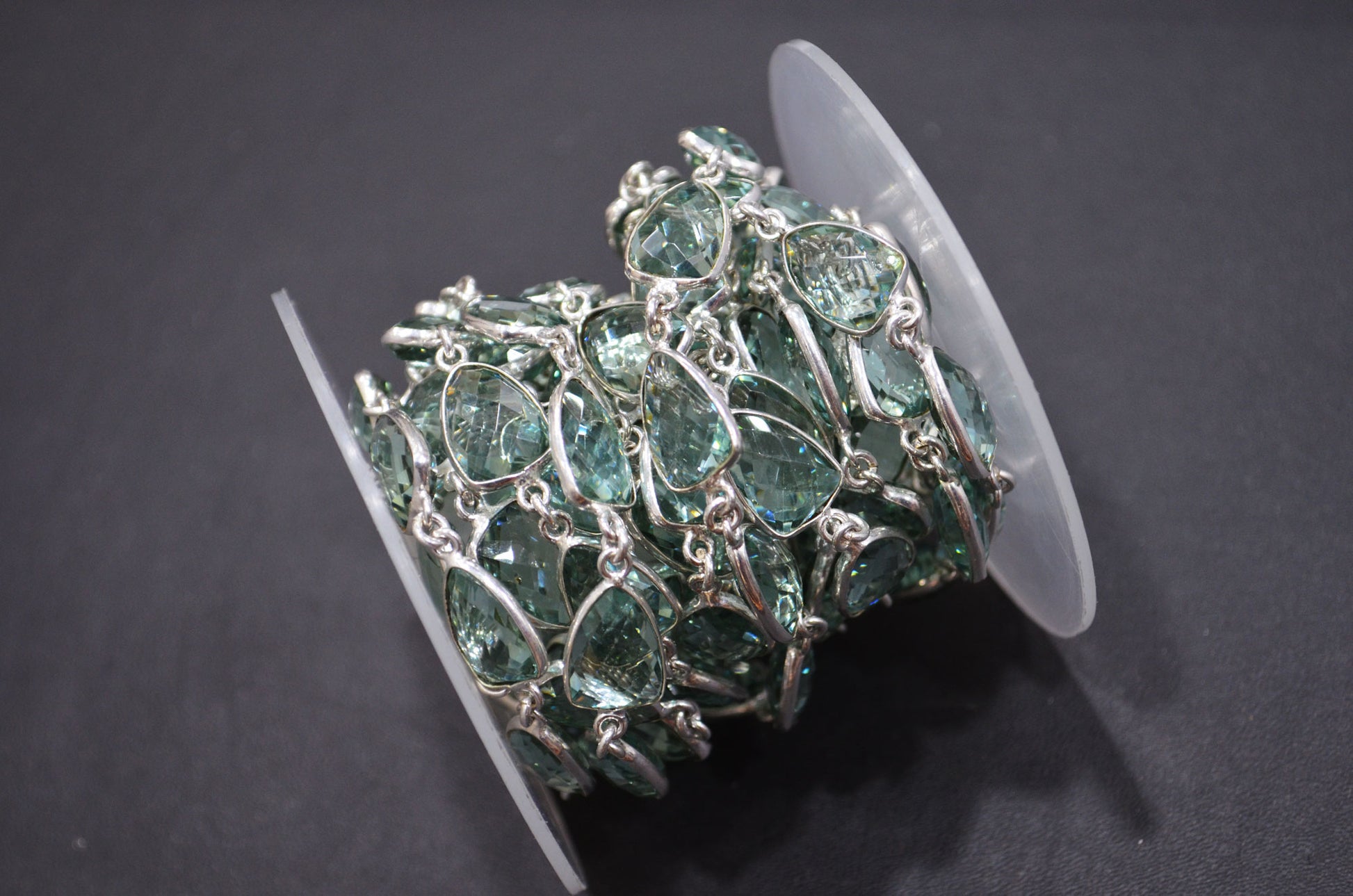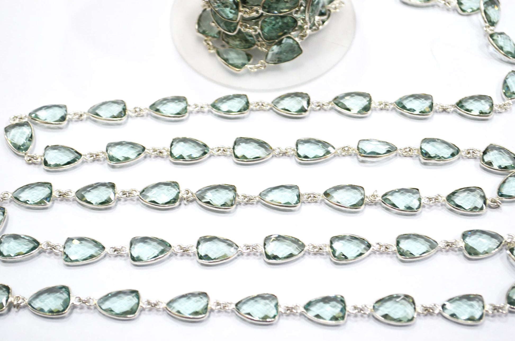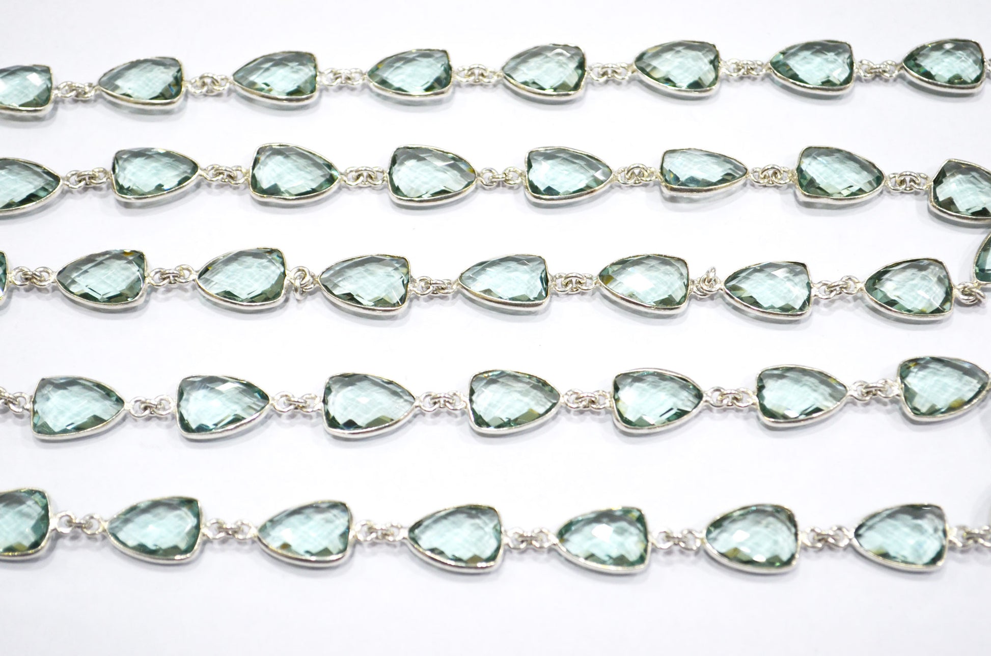 Green Amethyst Hydro Quartz Faceted Trillion Shape Connector Chain , Green Amethyst Hydro Quartz Bezel Link ChainΒ , 10x13 mm , RB-5884