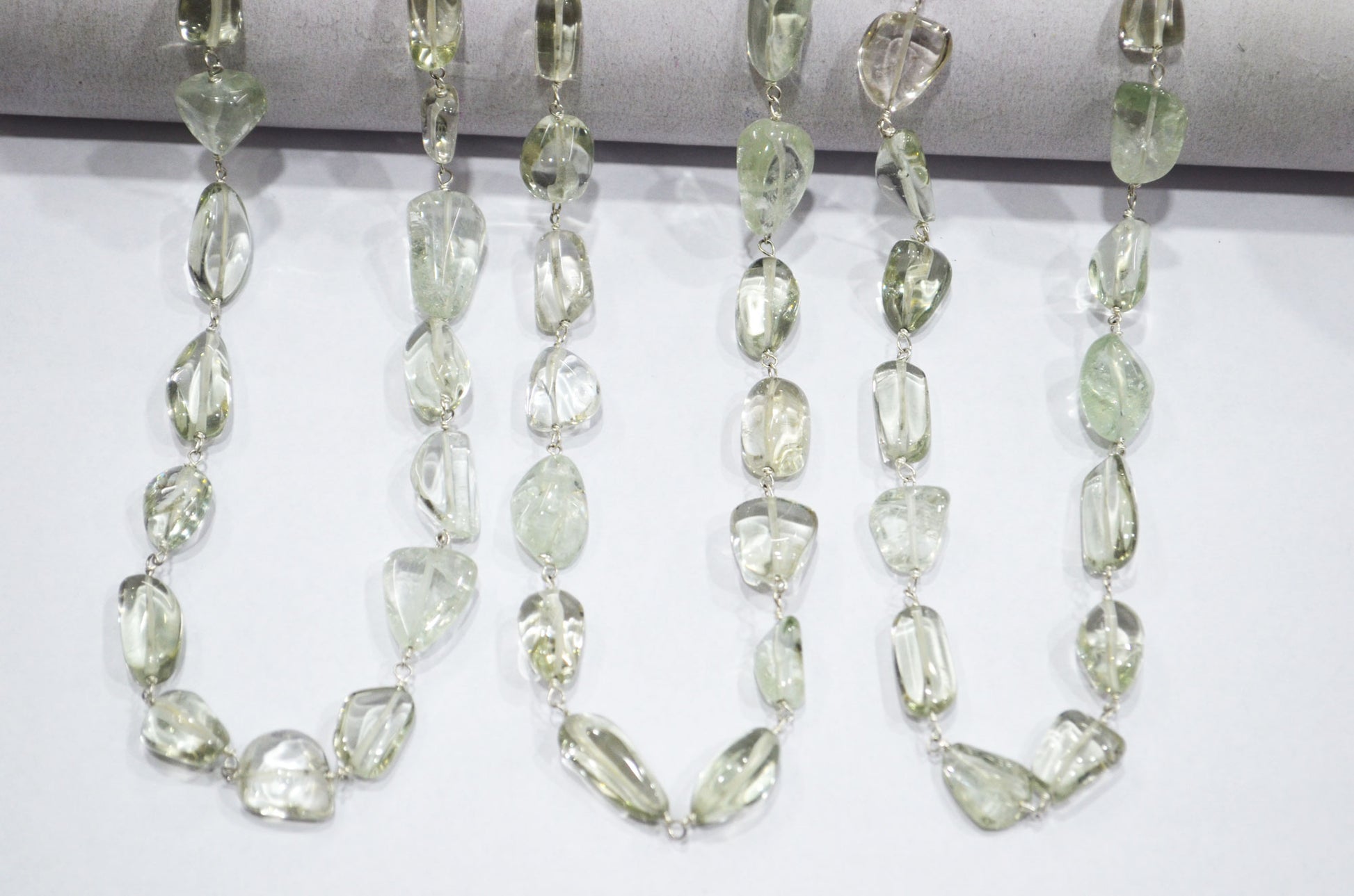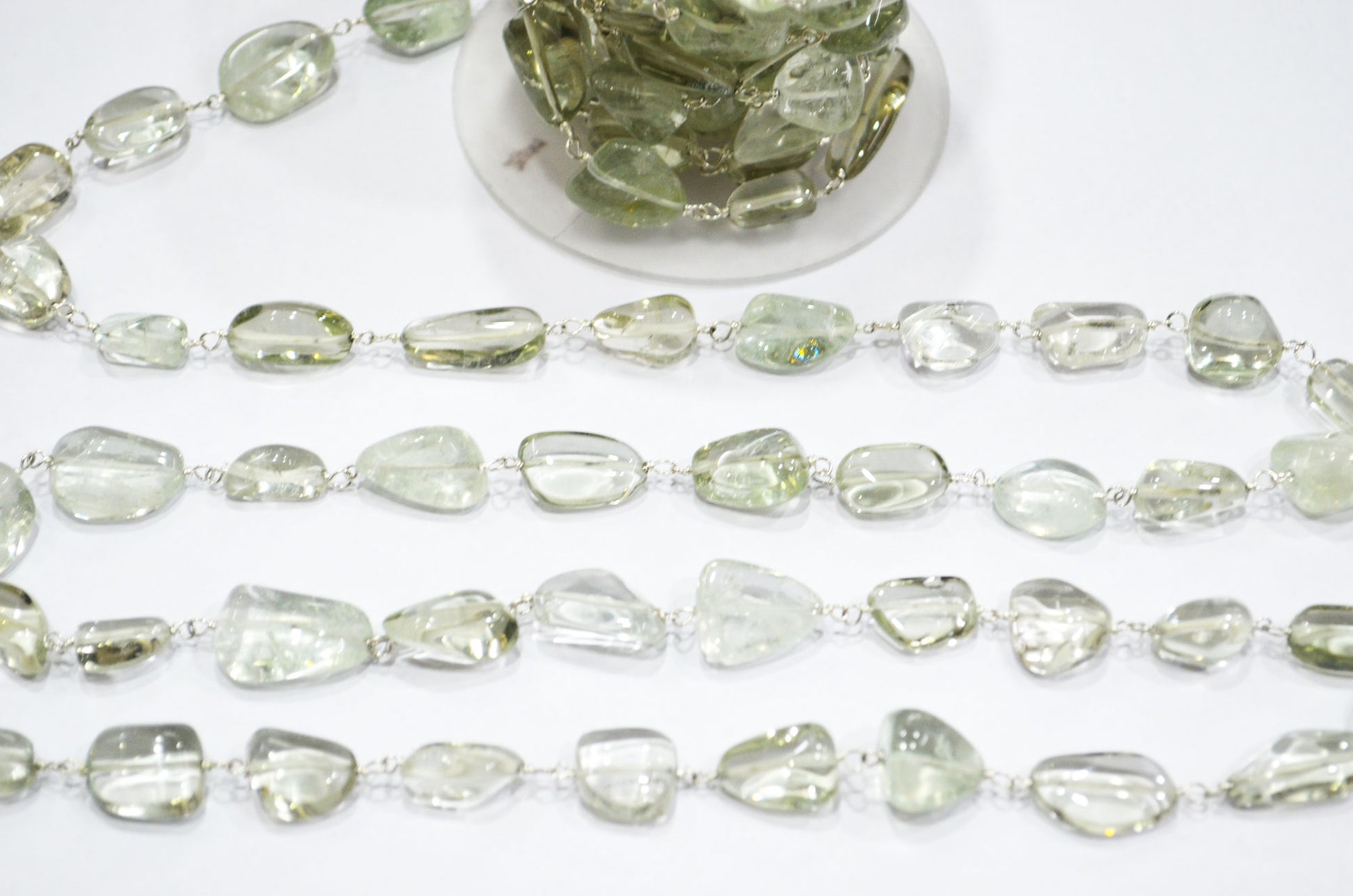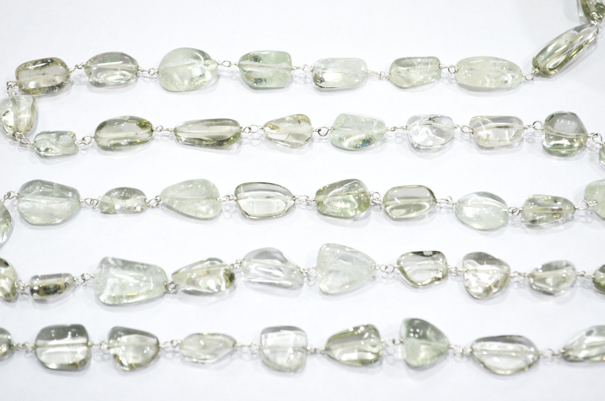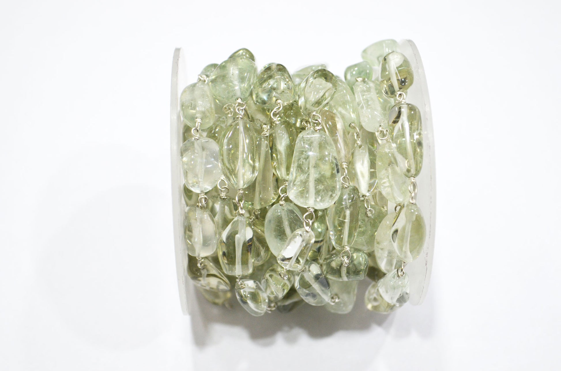 Green Amethyst Smooth Nuggets Rosary Beaded Chain , Green Amethyst Tumble Shape Wire Wrapped Chain , 6 - 11 mm , RB-6048