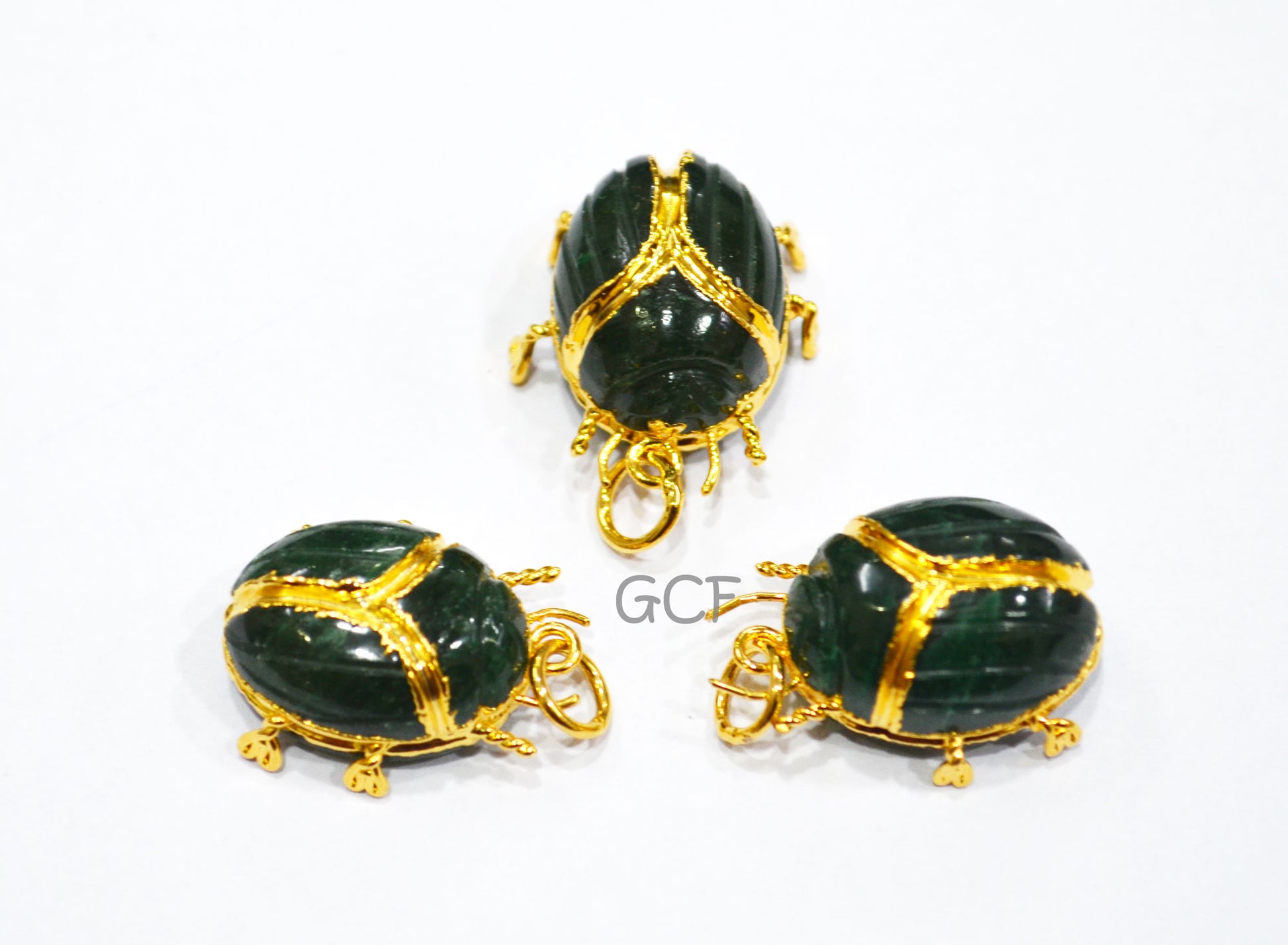 Green Aventurine Electroplated Beetle Pendant , Egyptian Scarab Green Aventurine Charm , Sold By Piece , 2.25 - 2.75 cm , 31350
