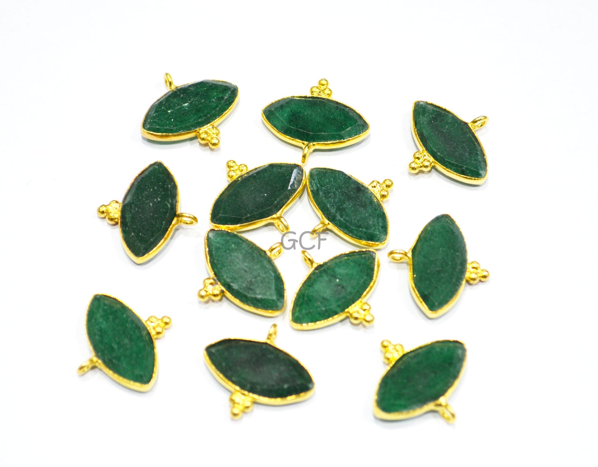 Green Aventurine Faceted Marquise Shape Connector , Green Aventurine Marquise Single Bail Bezel Connector ,Sold By Piece , 9x18 mm , RB-7135