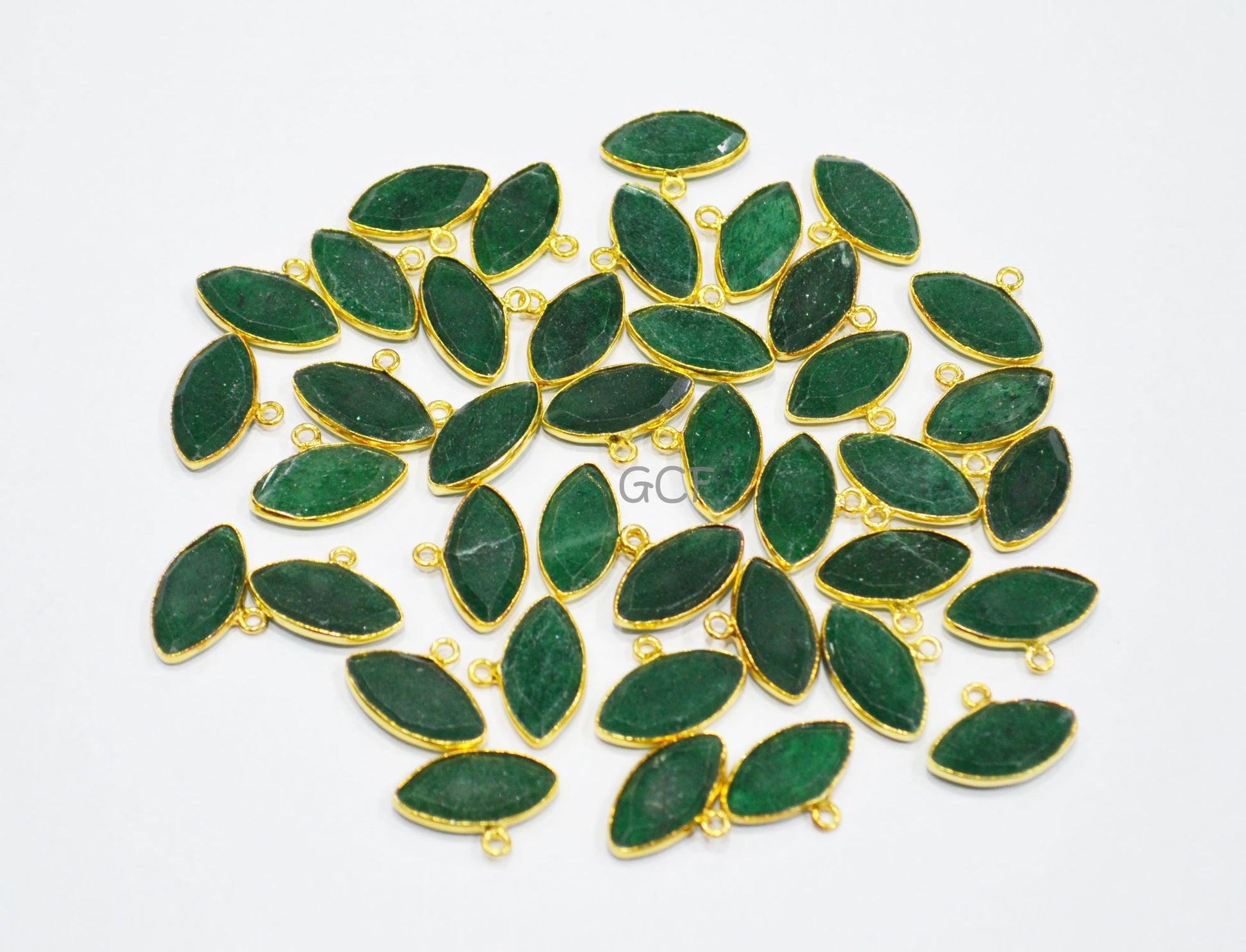 Green Aventurine Faceted Marquise Shape Connector , Green Aventurine Marquise Single Bail Bezel Connector ,Sold By Piece , 9x18 mm , RB-7136