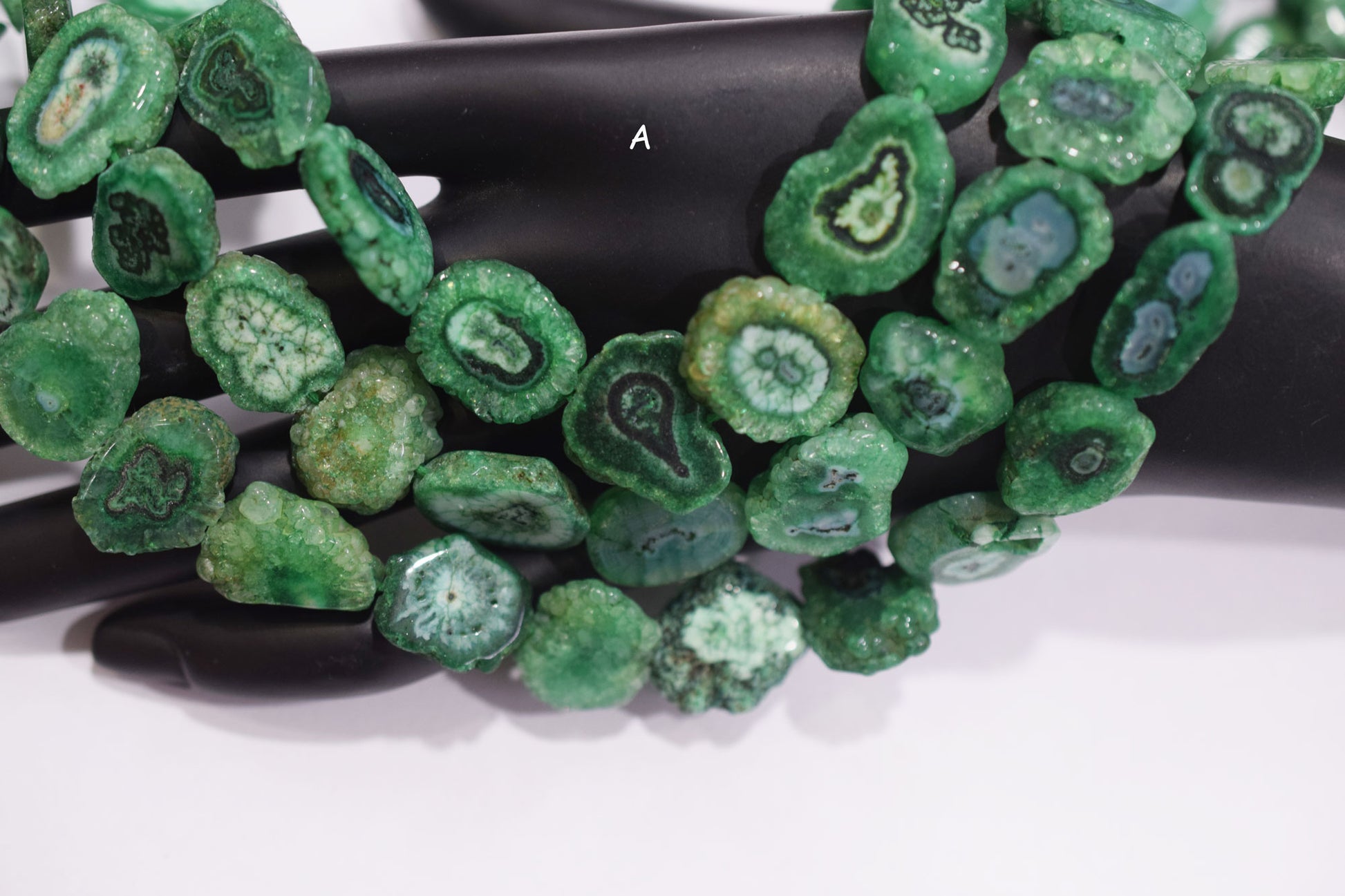 Green Color Druzy Nuggets Shape Beads , Green Color Druzy Smooth Beads , Sold By Strand , 12x14 - 21x22 mm , 13" , 19920
