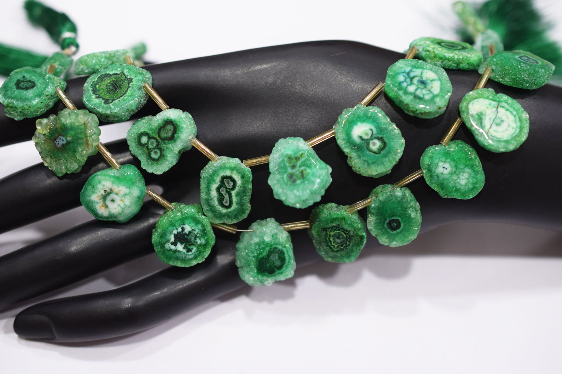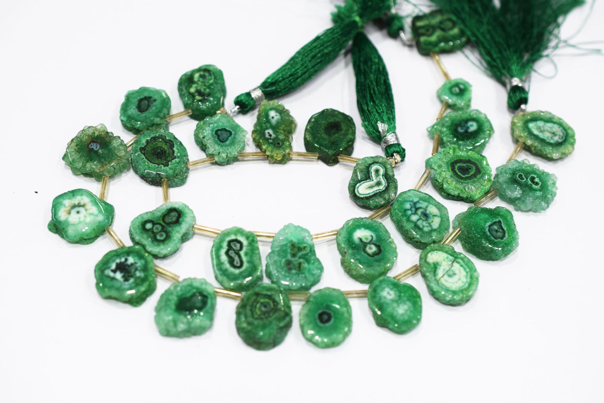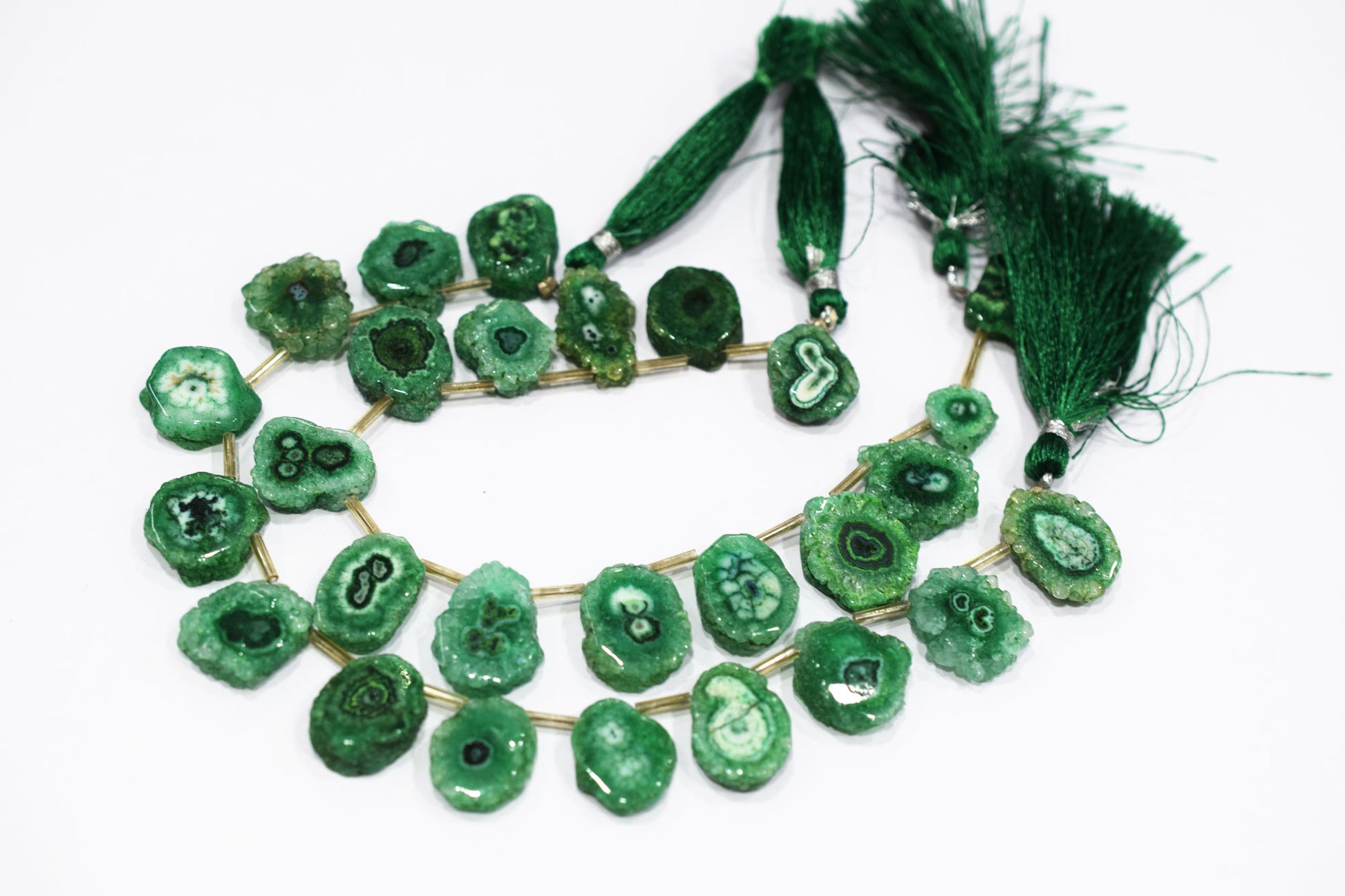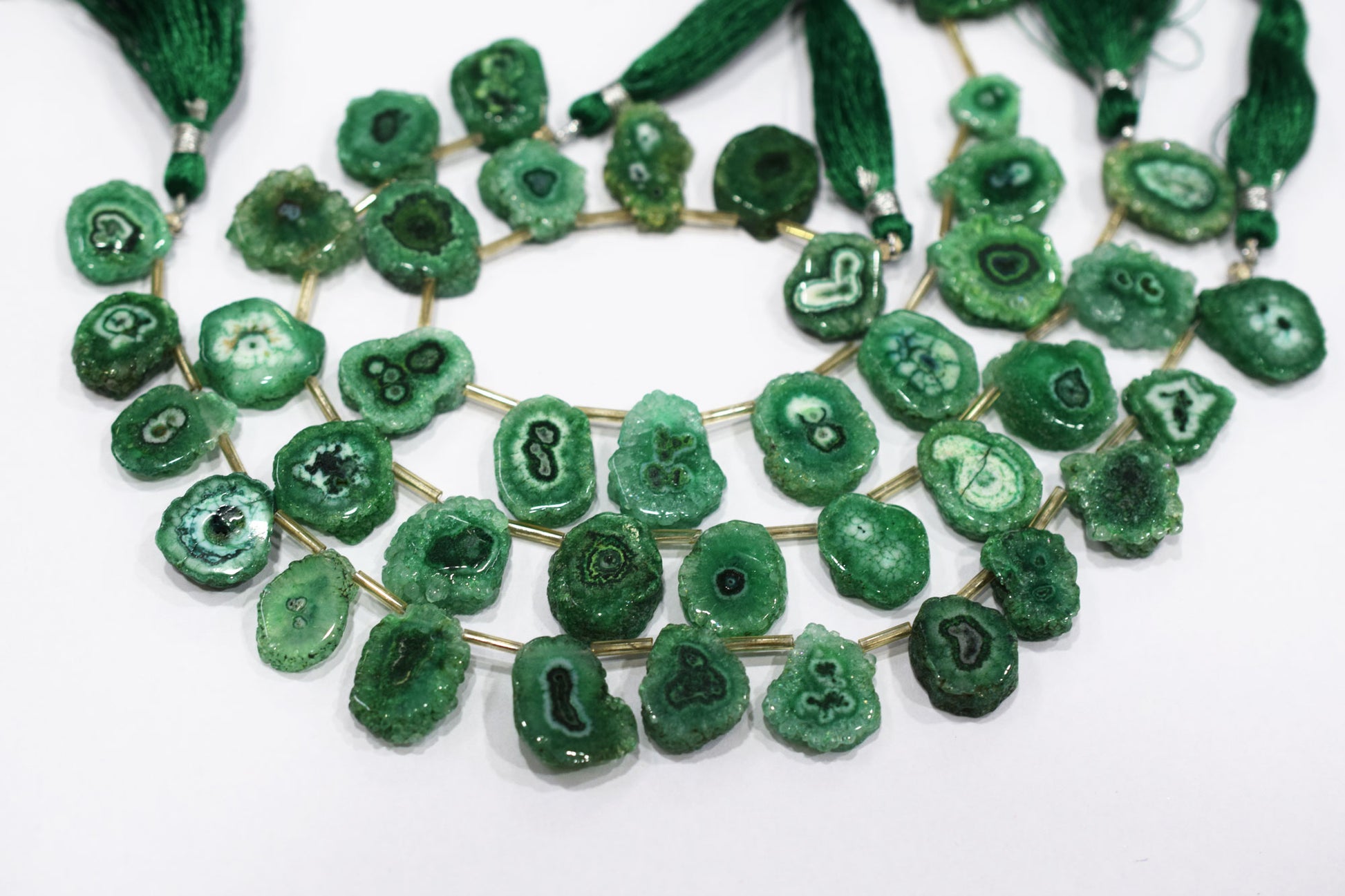 Green Color Druzy Nuggets Shape Briolettes , Sold By Strand , 13x15 - 16x18 mm , 8" , 20646