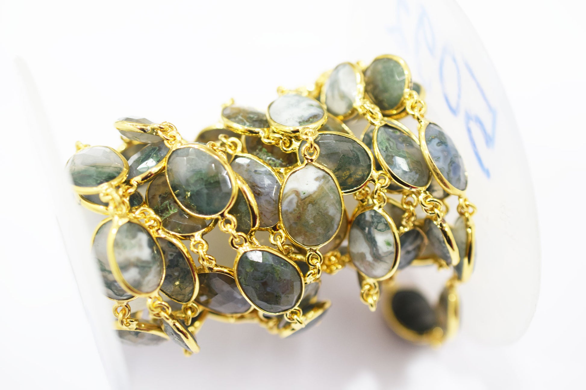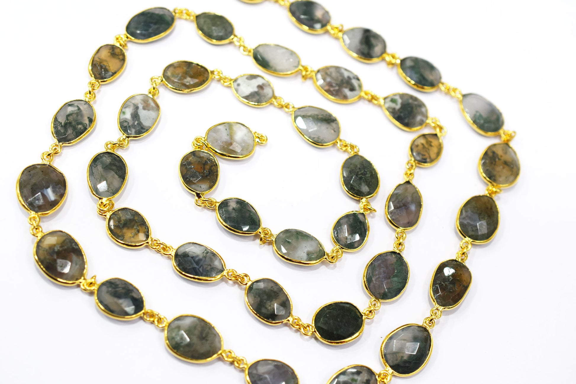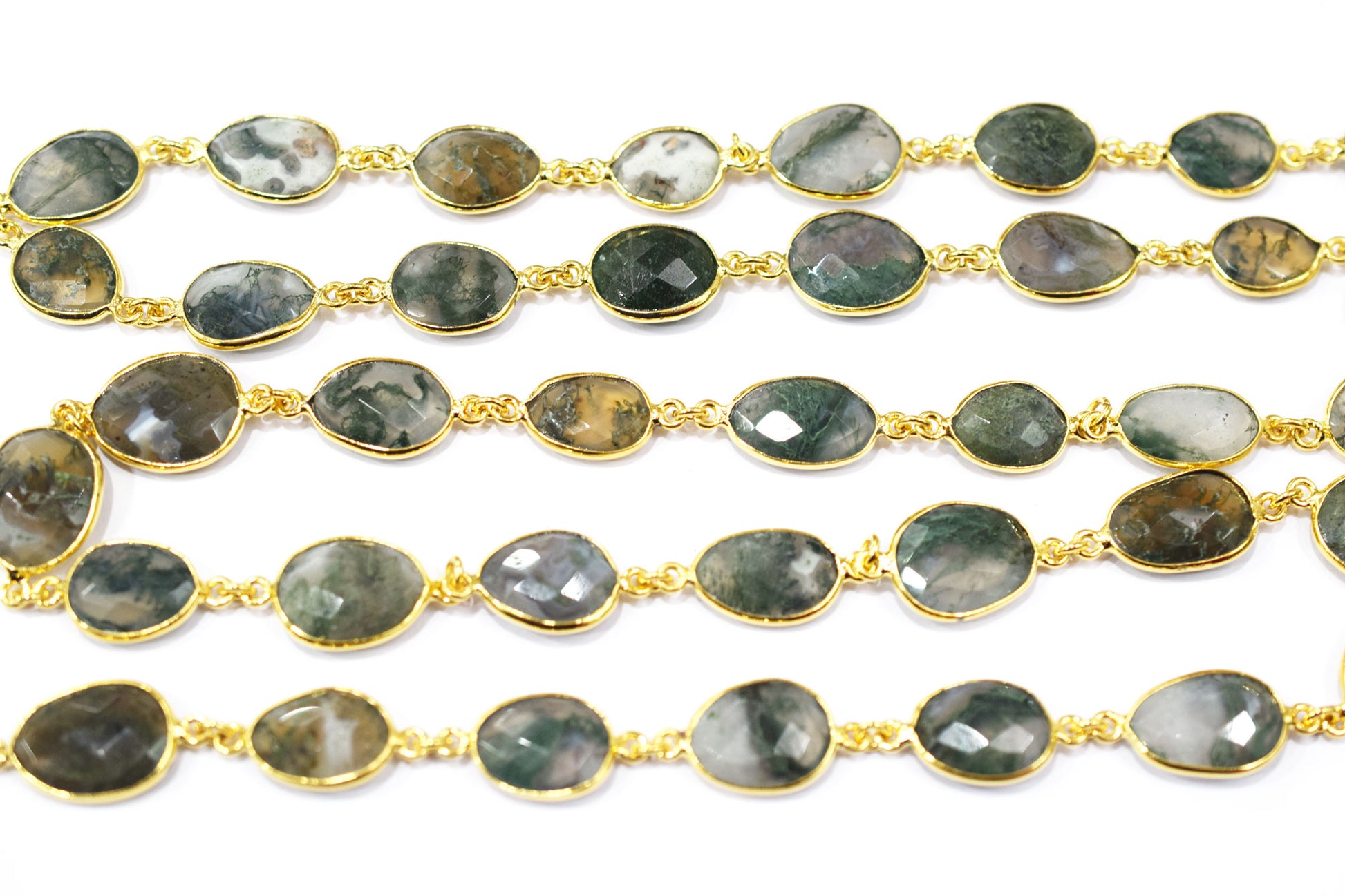 Green Ocean Fossil Jasper Faceted Slice Shape Connector Chain , Green Ocean Fossil Jasper Free Form Shape Bezel Link Chain , 12x13 - 14x15 mm , RB-6470