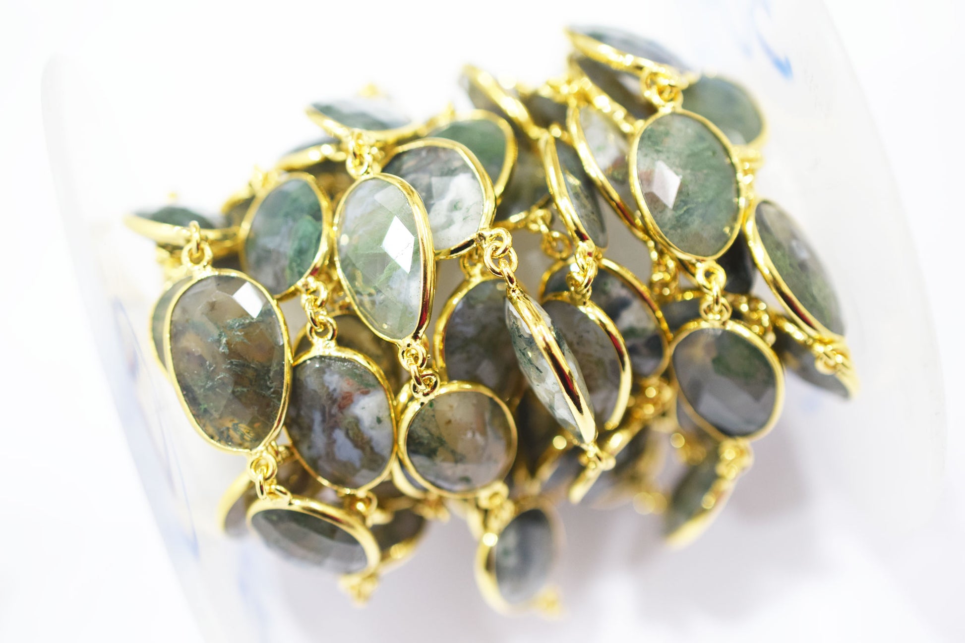 Green Ocean Fossil Jasper Faceted Slice Shape Connector Chain , 14x17 - 16x18 mm , RB-6468