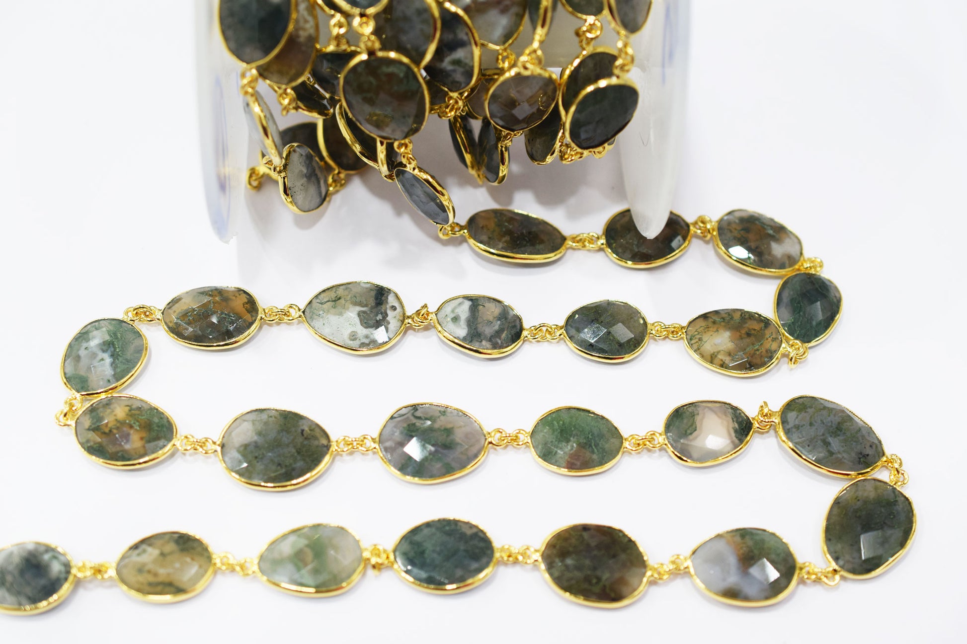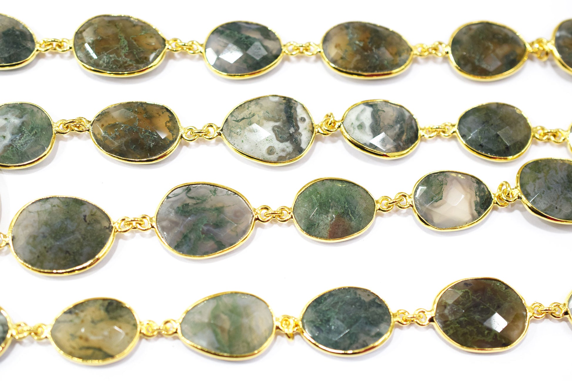 Green Ocean Fossil Jasper Faceted Slice Shape Connector Chain , Green Ocean Fossil Jasper Free Form Shape Bezel Link Chain , 14x17 - 16x18 mm , RB-6468