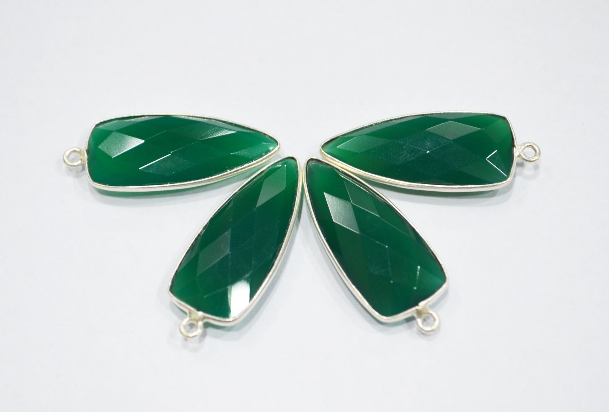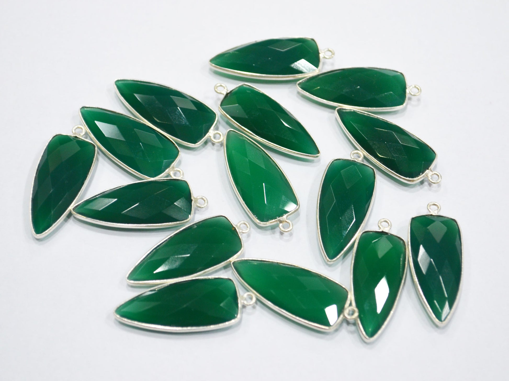 Green Onyx Faceted Arrowhead Shape Single Bail Connector , Green Onyx Bezel Connector , Sold By Piece , 12x28 mm , RB-6301