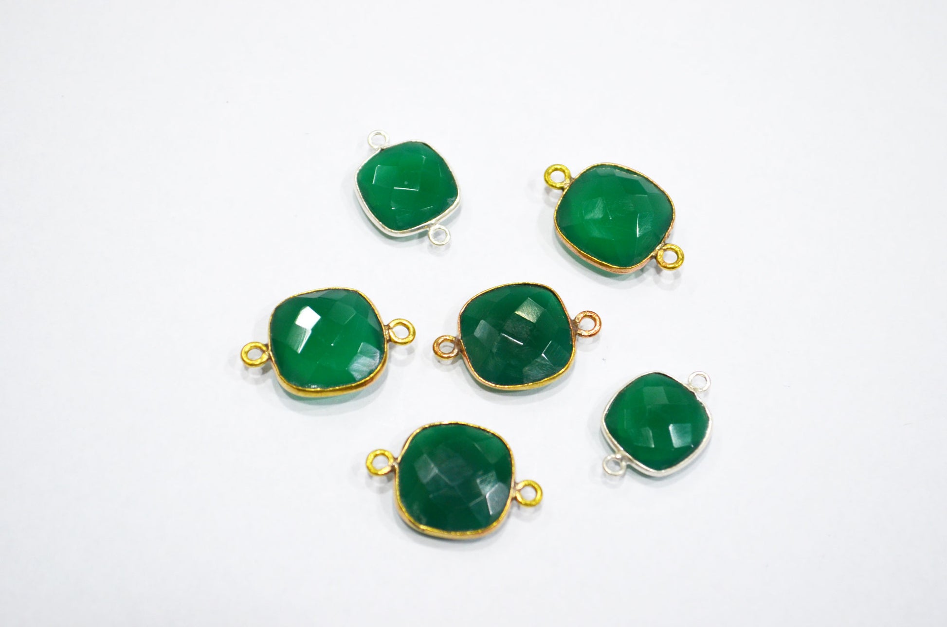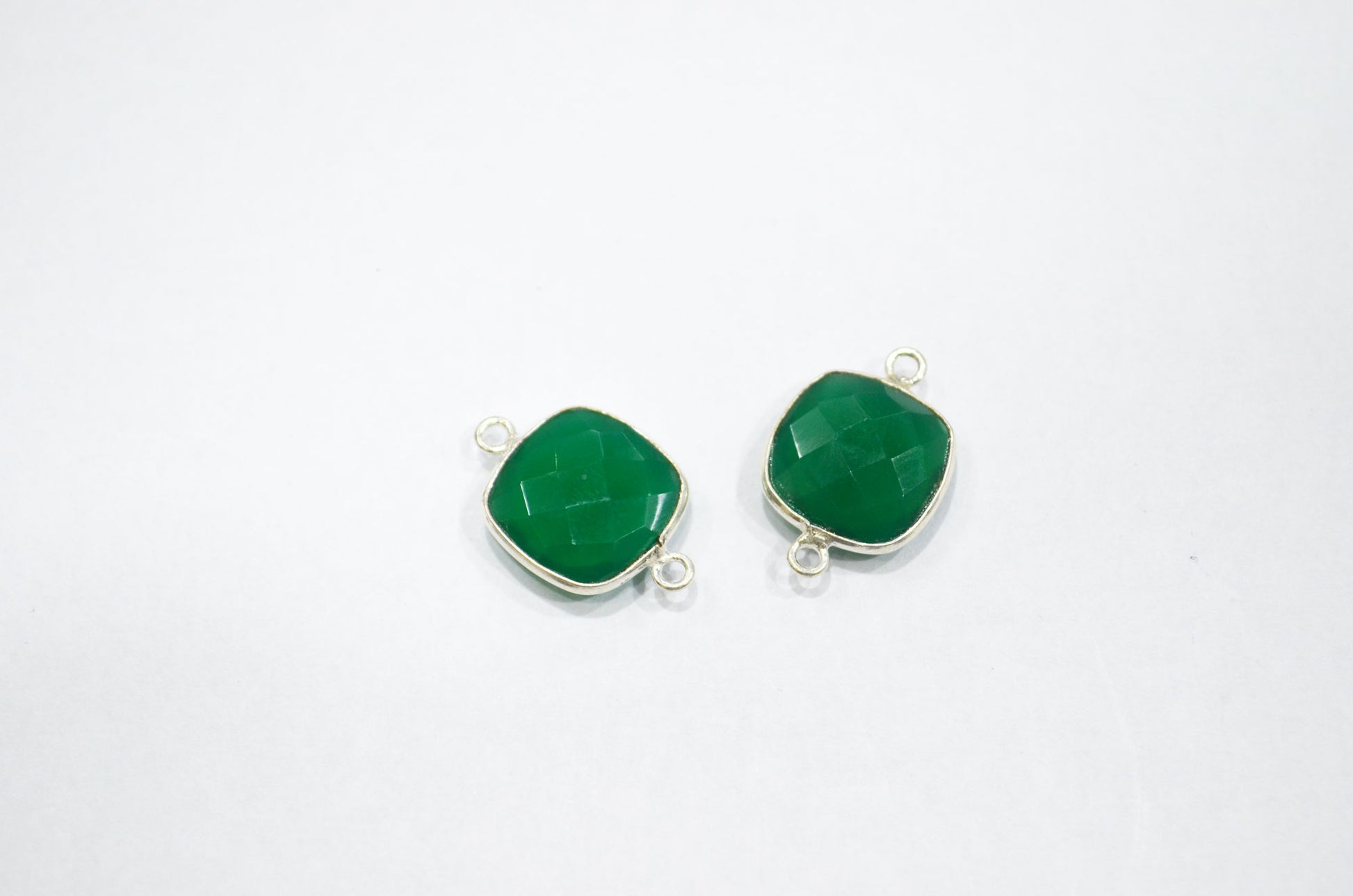 Green Onyx Faceted Cushion Shape Connector , Sold By Piece , 13 mm , RB-5831