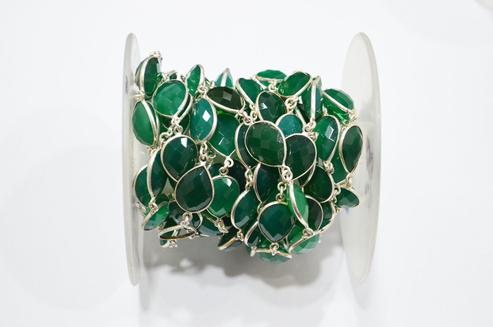 Green Onyx Faceted Pear Shape Connector Chain , 15 - 16 mm , RB-5695