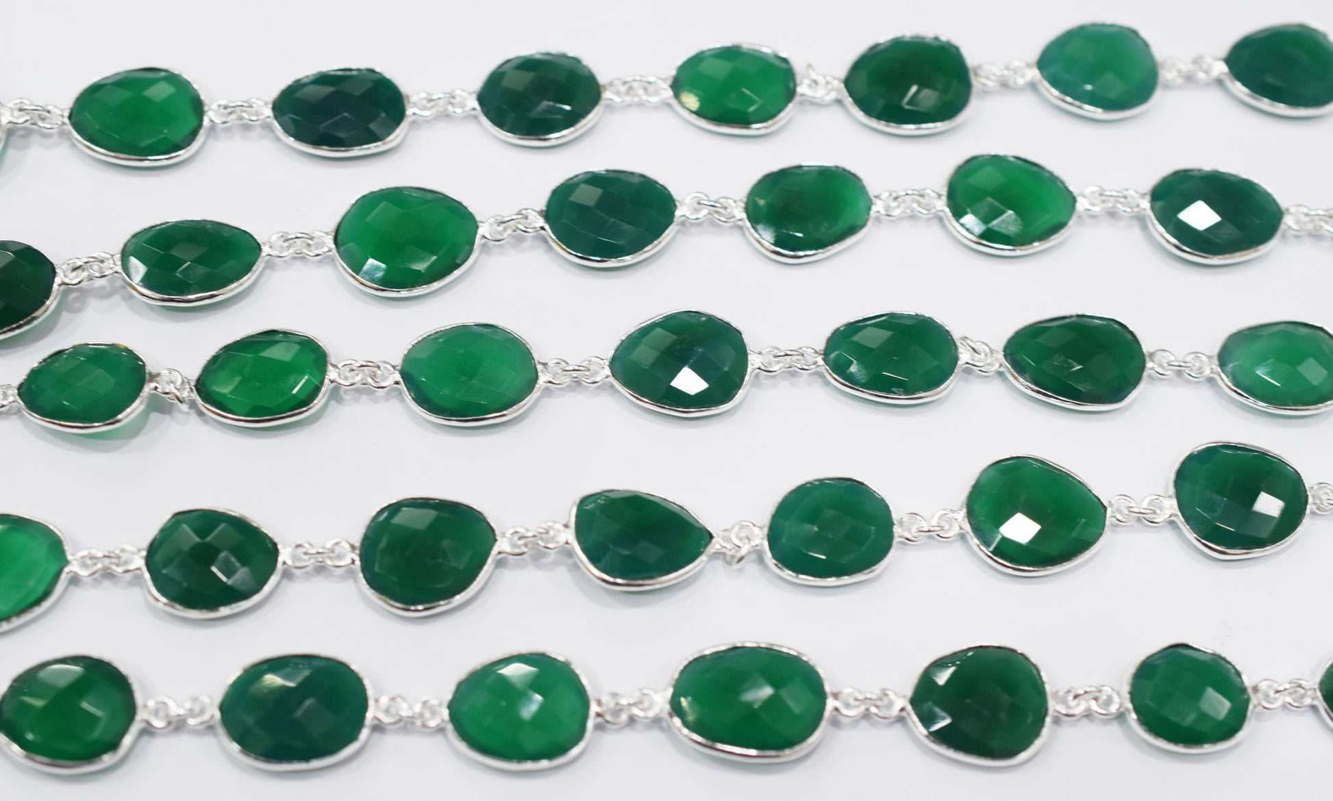 Green Onyx Faceted Slice Shape Connector Chain , 13x16 - 14x20 mm , RB-6693