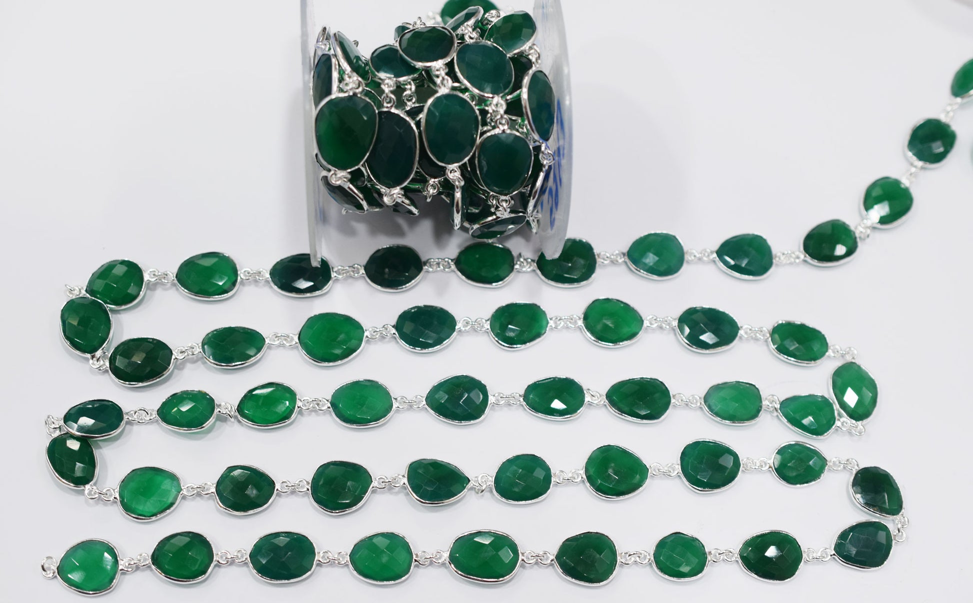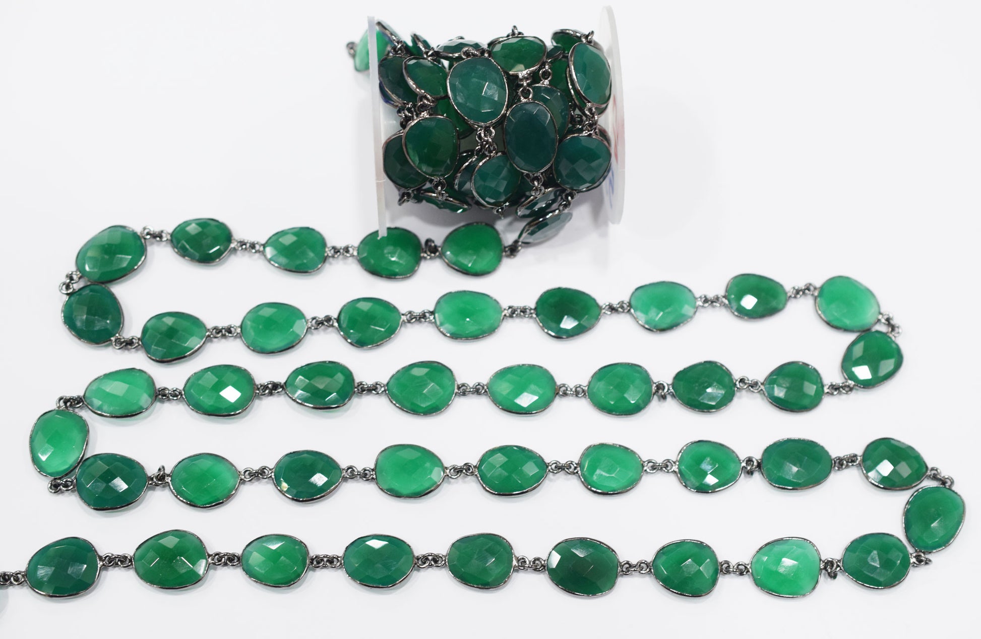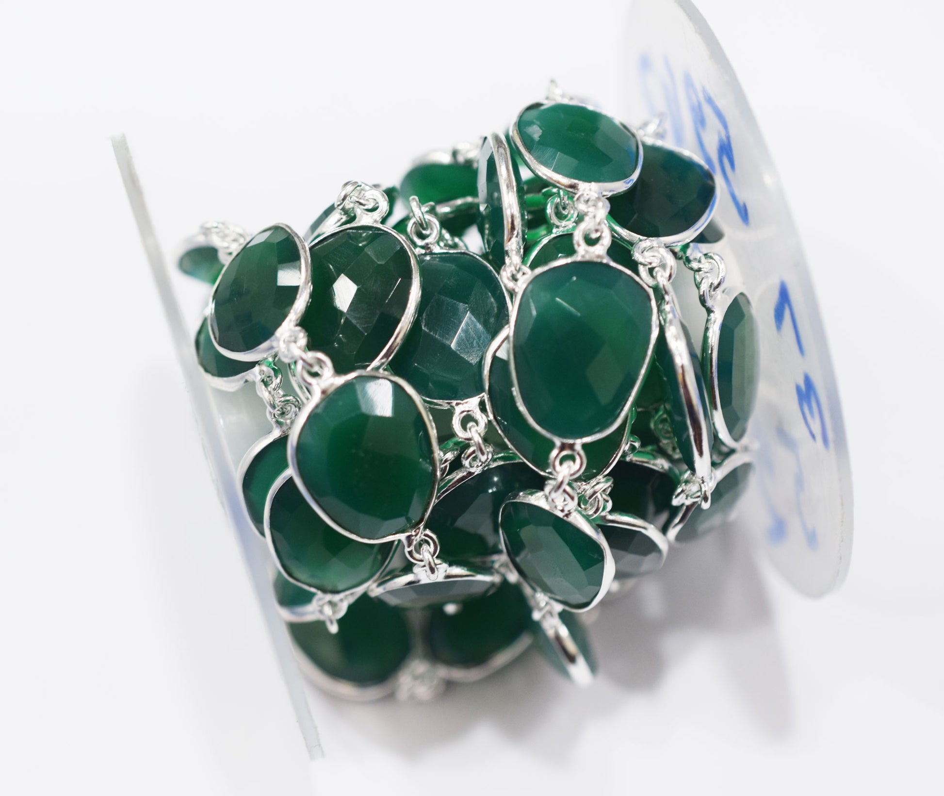 Green Onyx Faceted Slice Shape Connector Chain , Green Onyx Free Form Shape Bezel Link Chain , 13x16 - 14x20 mm , RB-6693