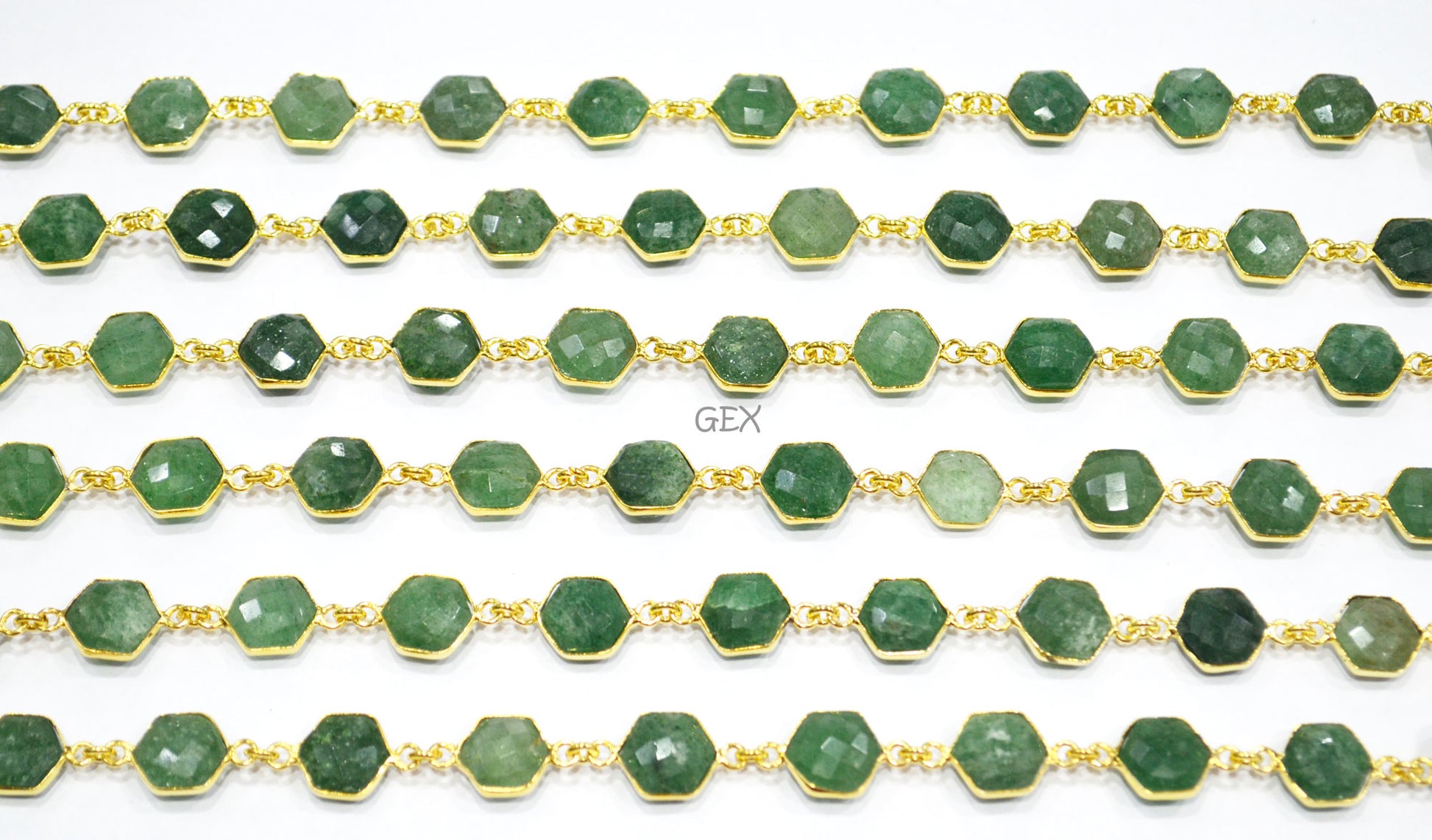 Green Strawberry Quartz Faceted Hexagon Shape Connector Chain , Green Strawberry Quartz Hexagon Shape Bezel Link Chain , 10 - 11 mm , RB-7215