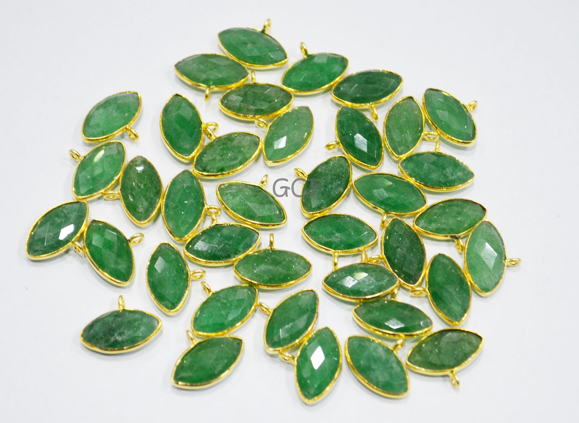 Green Strawberry Quartz Faceted Marquise Shape Connector , Green Strawberry Quartz Bezel Connector , Sold By Piece , 8x15 mm , RB-7058