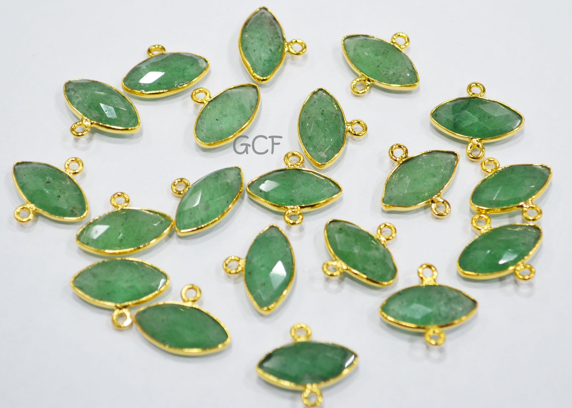 Green Strawberry Quartz Faceted Marquise Shape Connector , Green Strawberry Quartz Bezel Connector , Sold By Piece , 9x17 mm , RB-6852