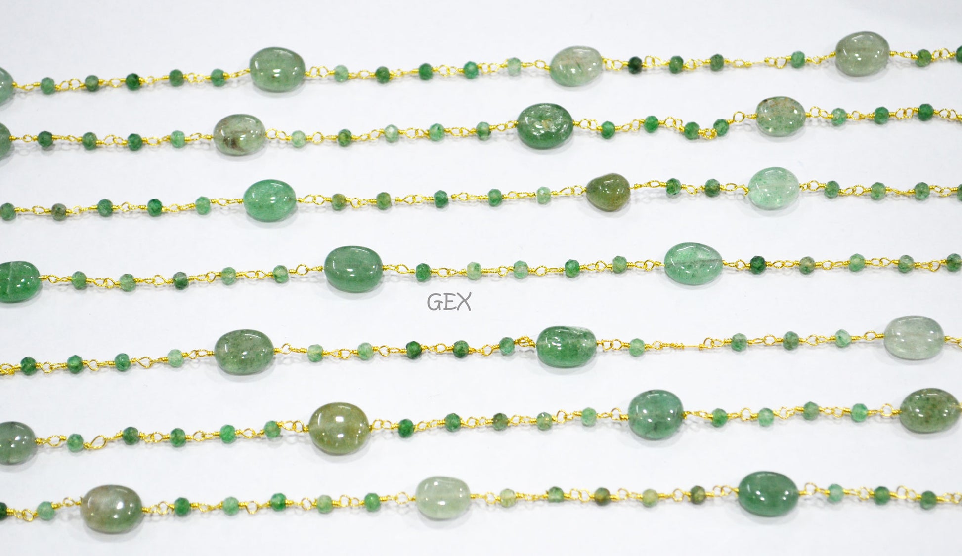 Green Strawberry Quartz Faceted Round Shape Rosary Beaded Chain , Green Strawberry Quartz Smooth Oval Shape Wire Wrapped Chain , 3 mm , 7252