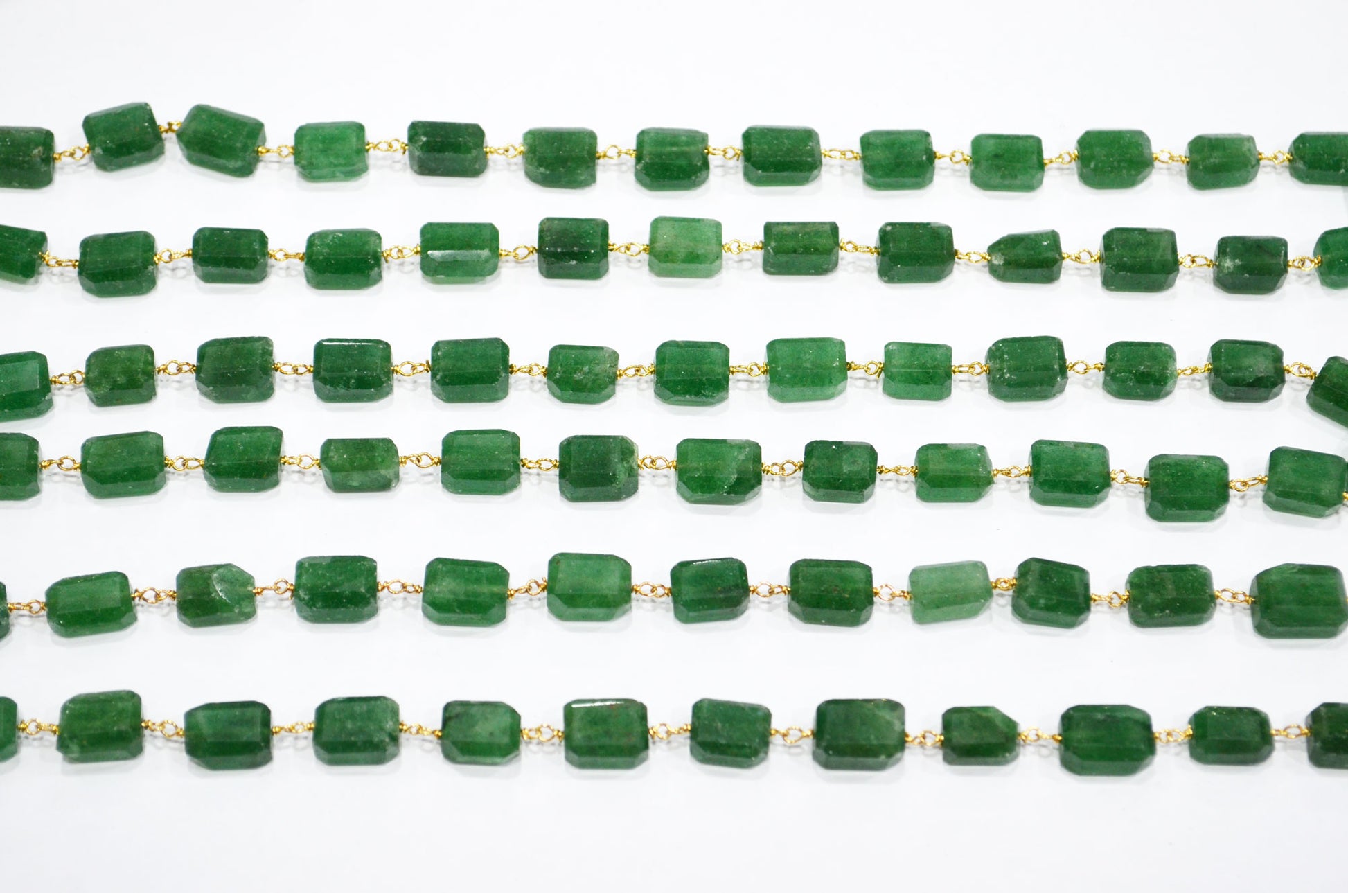 Green Strawberry Quartz Laser Cut Nuggets Shape Rosary Beaded Chain , Green Strawberry Quartz Wire Wrapped Chain , 8 - 12 mm , RB-7392