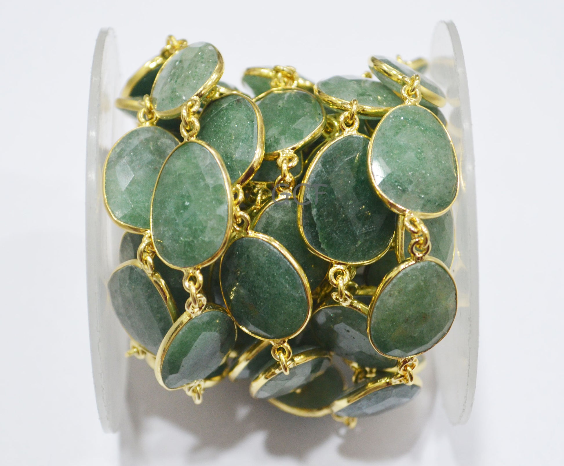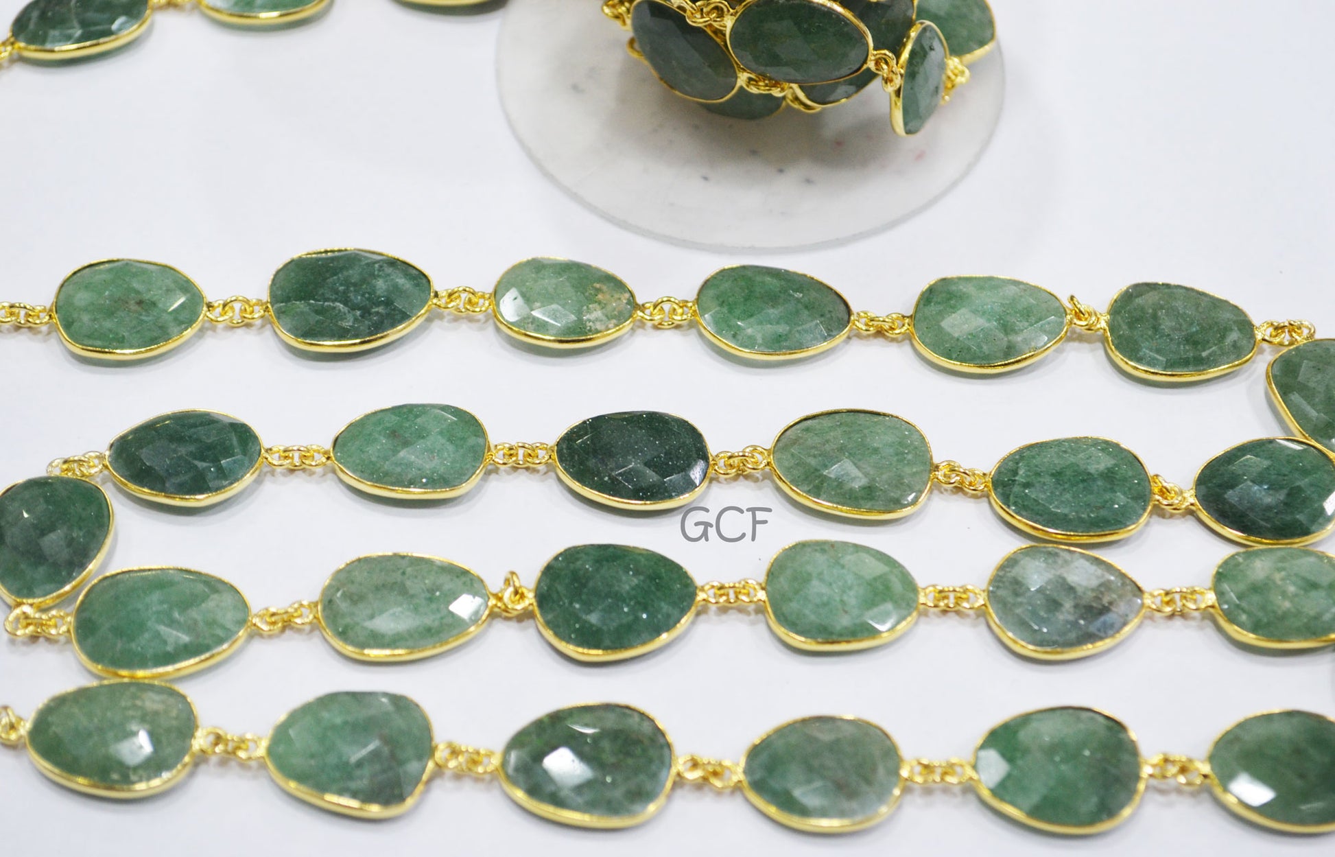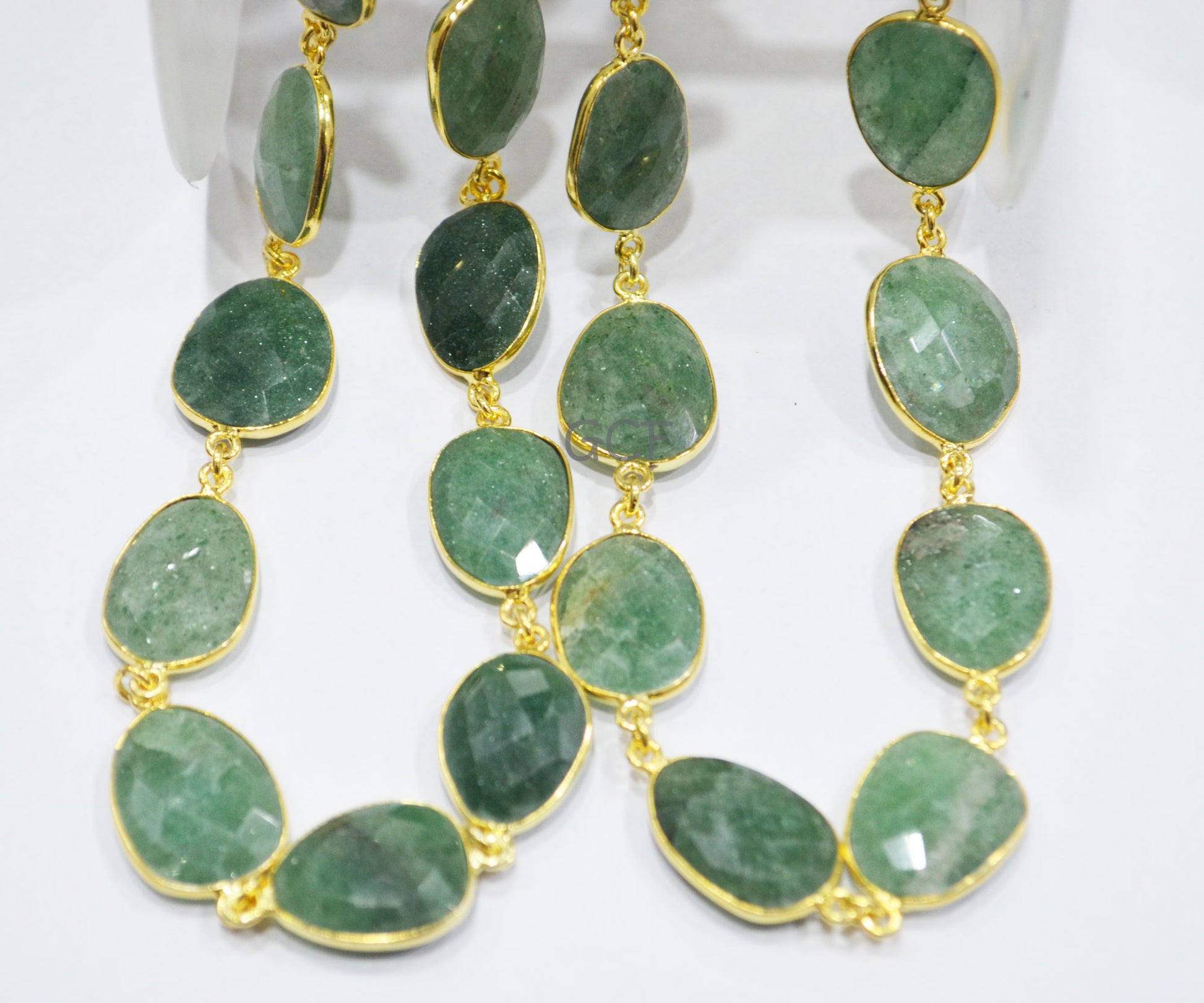 Green Strawberry Quartz Slice Shape Connector Chain , Strawberry Quartz Faceted Bezel Link ChainΒ , 11x15 - 17x21 mm , 6901