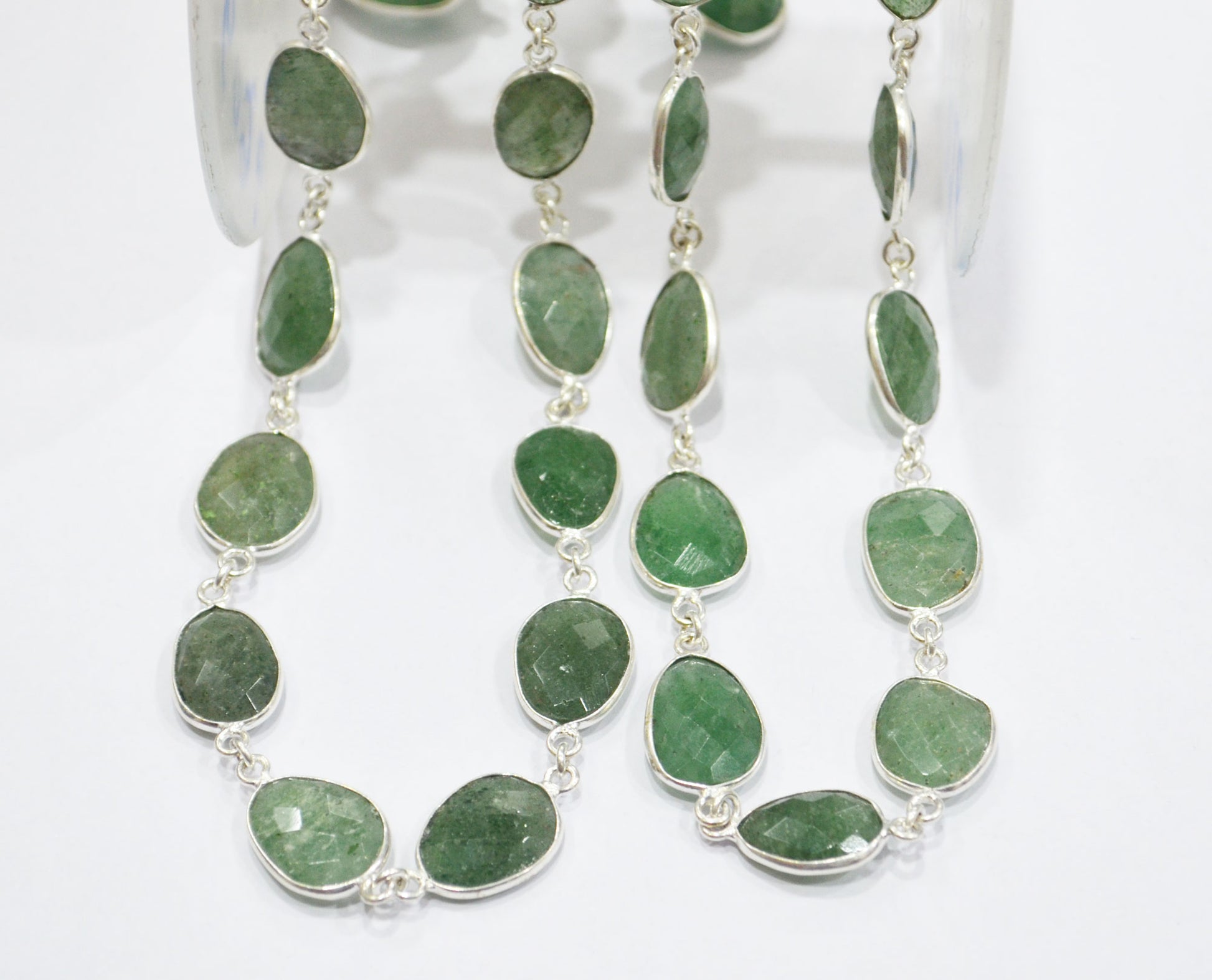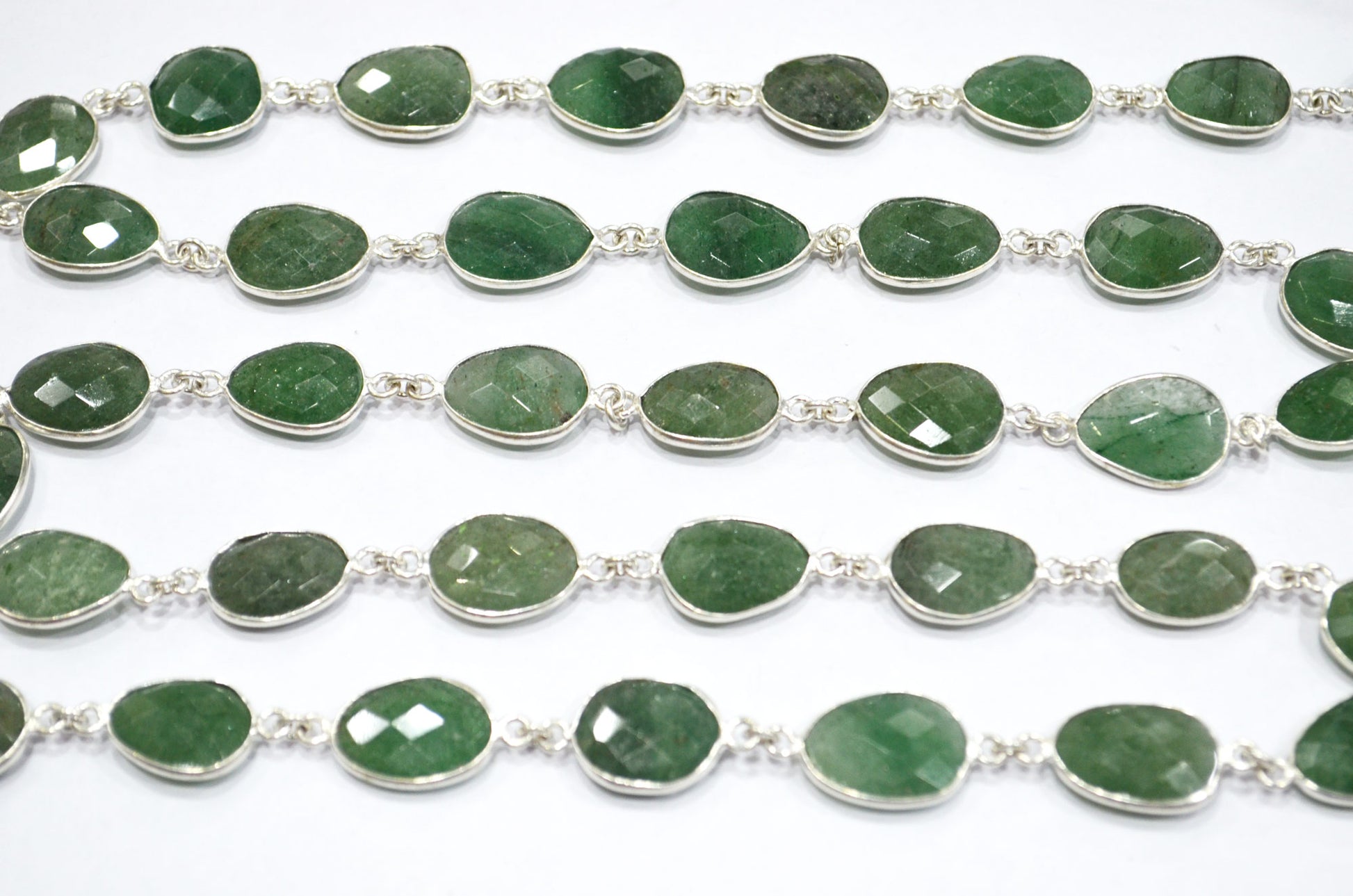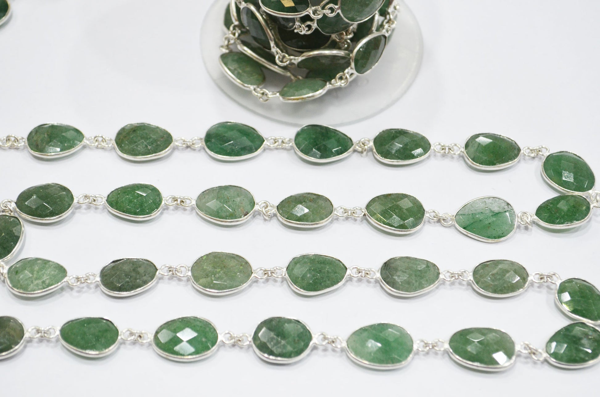 Green Strawberry Rock Quartz Slice Shape Connector Chain , Green Strawberry Rock Quartz Faceted Free Form Shape Bezel Link Chain , 10 - 13 mm , RB-6332A