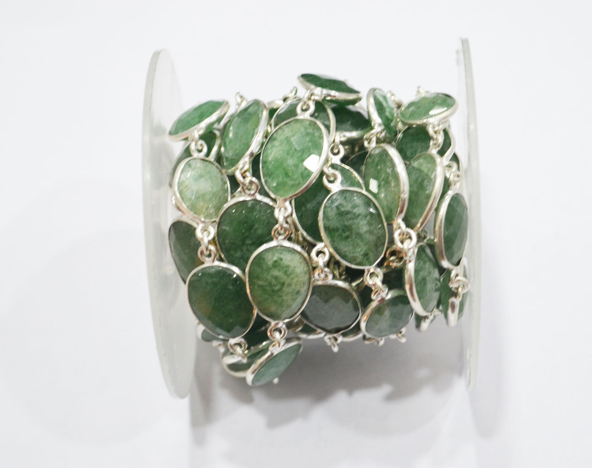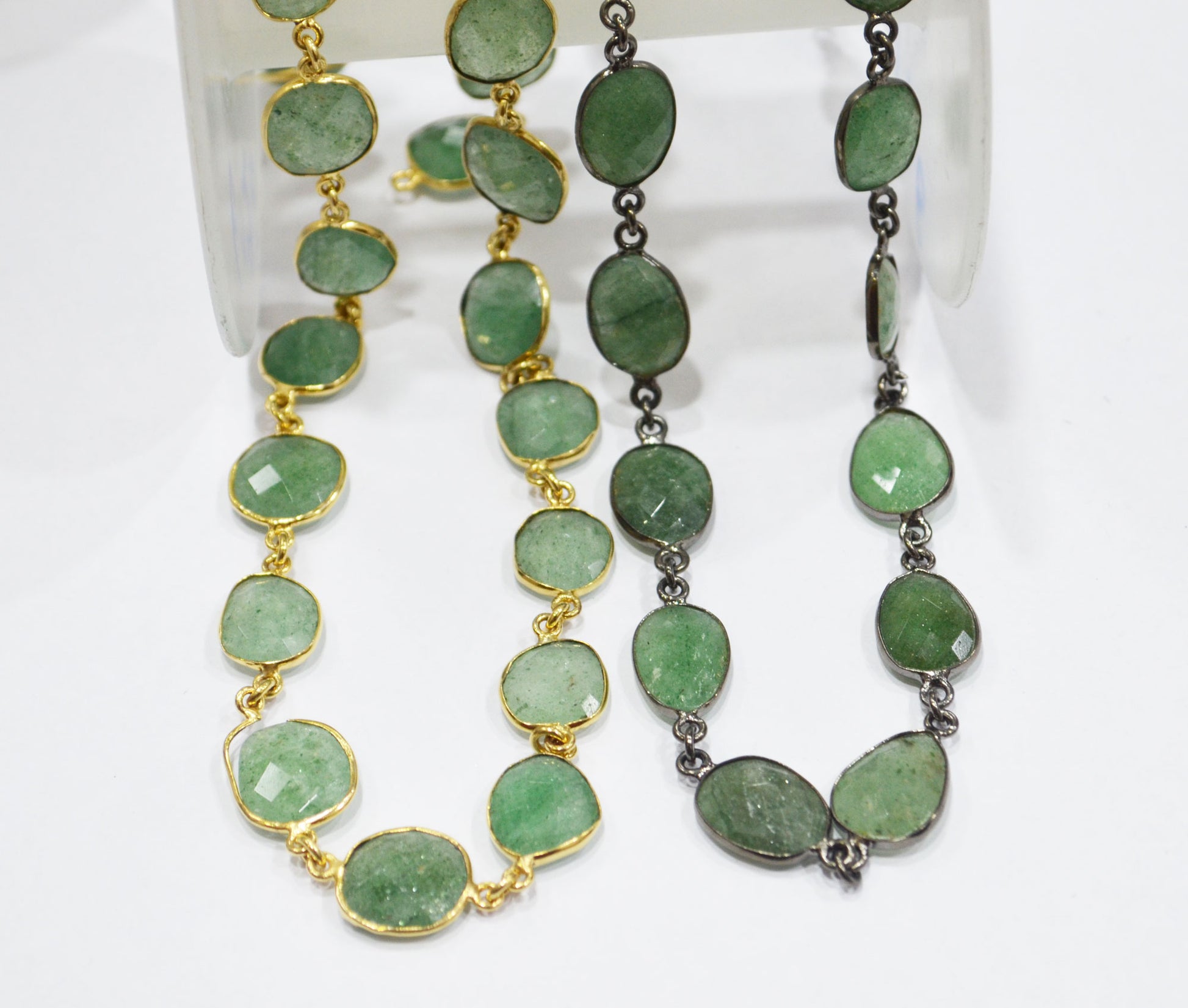 Green Strawberry Rock Quartz Slice Shape Connector Chain , Green Strawberry Rock Quartz Faceted Free Form Shape Bezel Link Chain , 13 - 16 mm , RB-6332