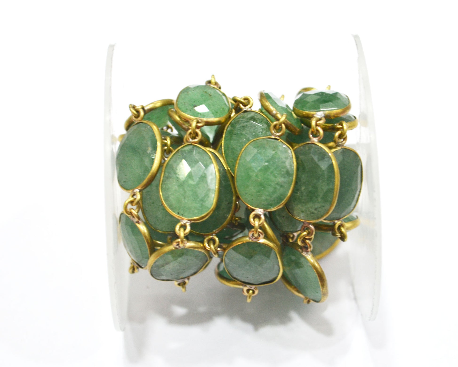 Green Strawberry Rock Quartz Slice Shape Connector Chain , Green Strawberry Rock Quartz Faceted Free Form Shape Bezel Link Chain , 18 - 21 mm , RB-6331