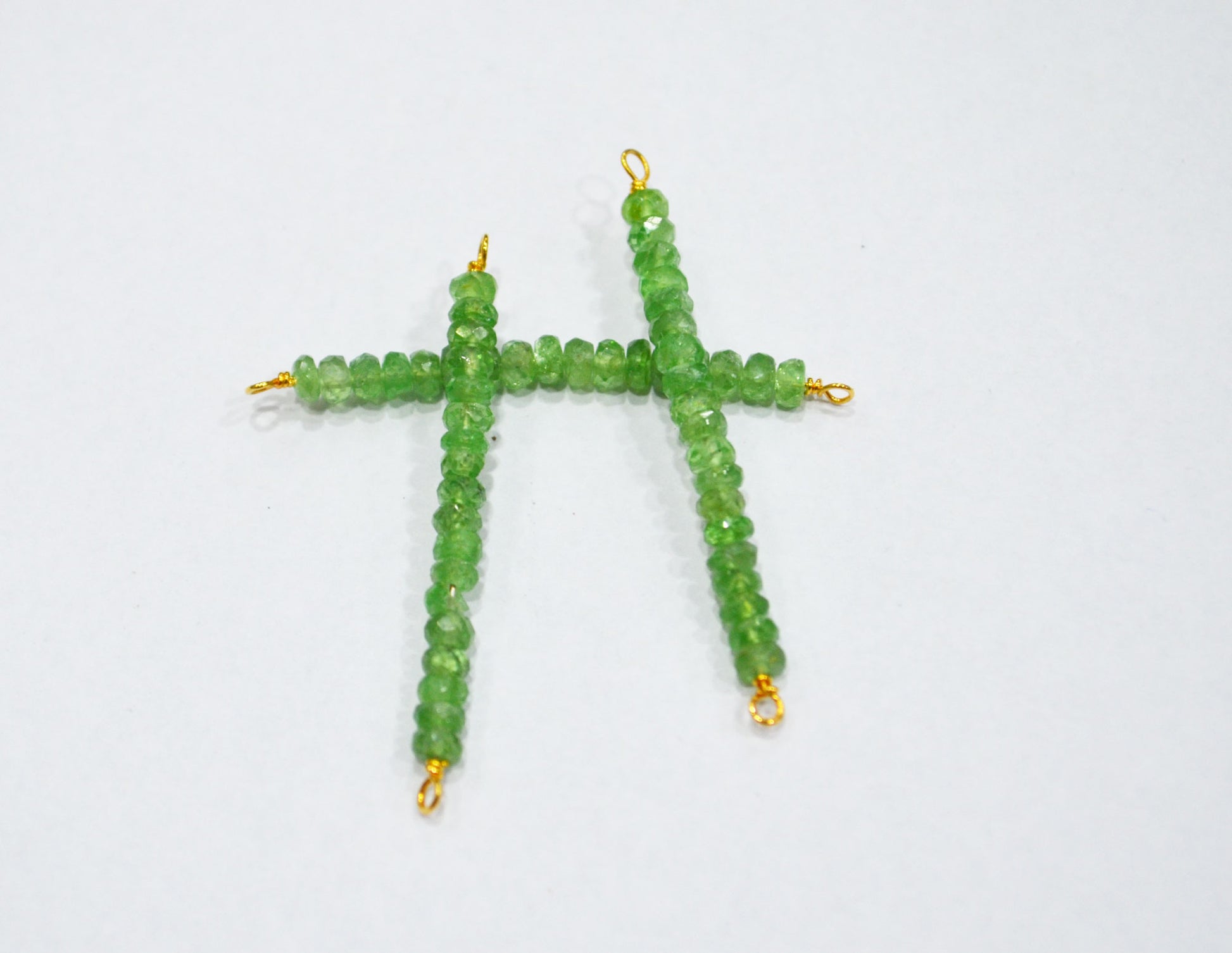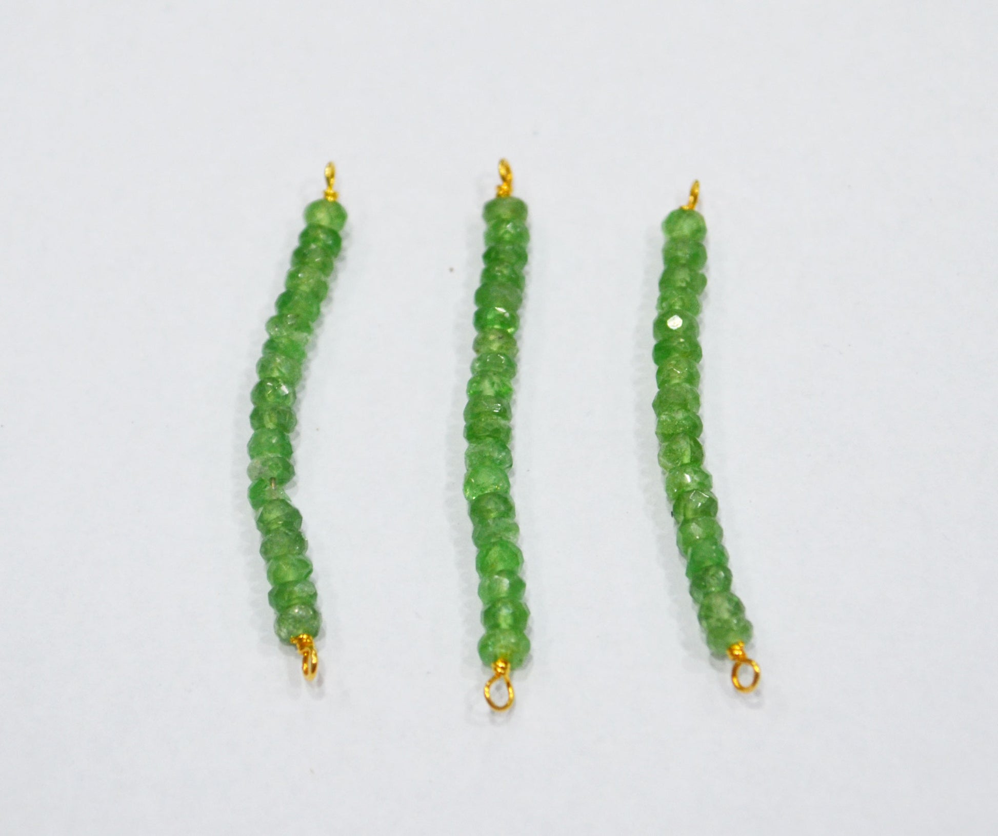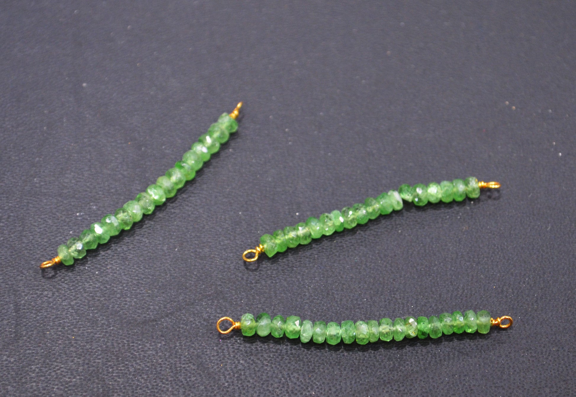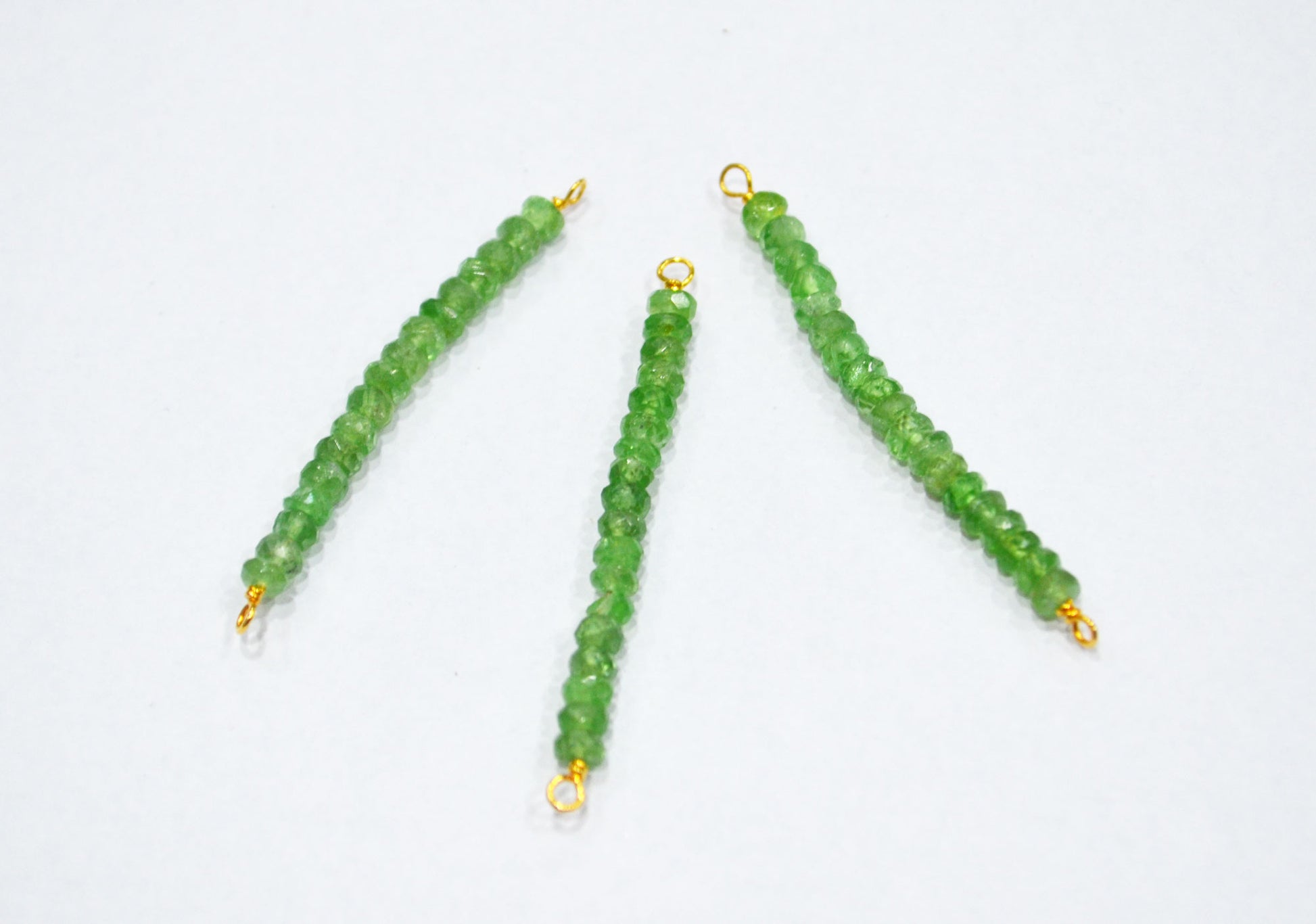 Green Tsavorite Faceted Rondelle Shape Charm , Green Tsavorite Gold Plated Wire Wrapped Bar , Sold By Piece , 30 - 35 mm , RB-6360