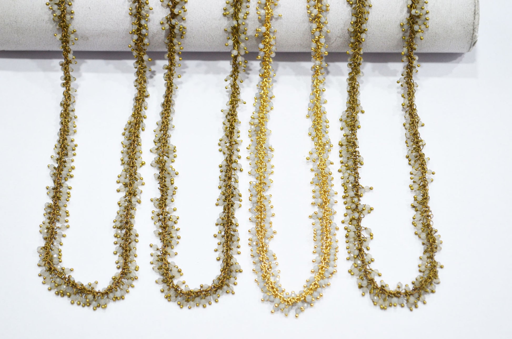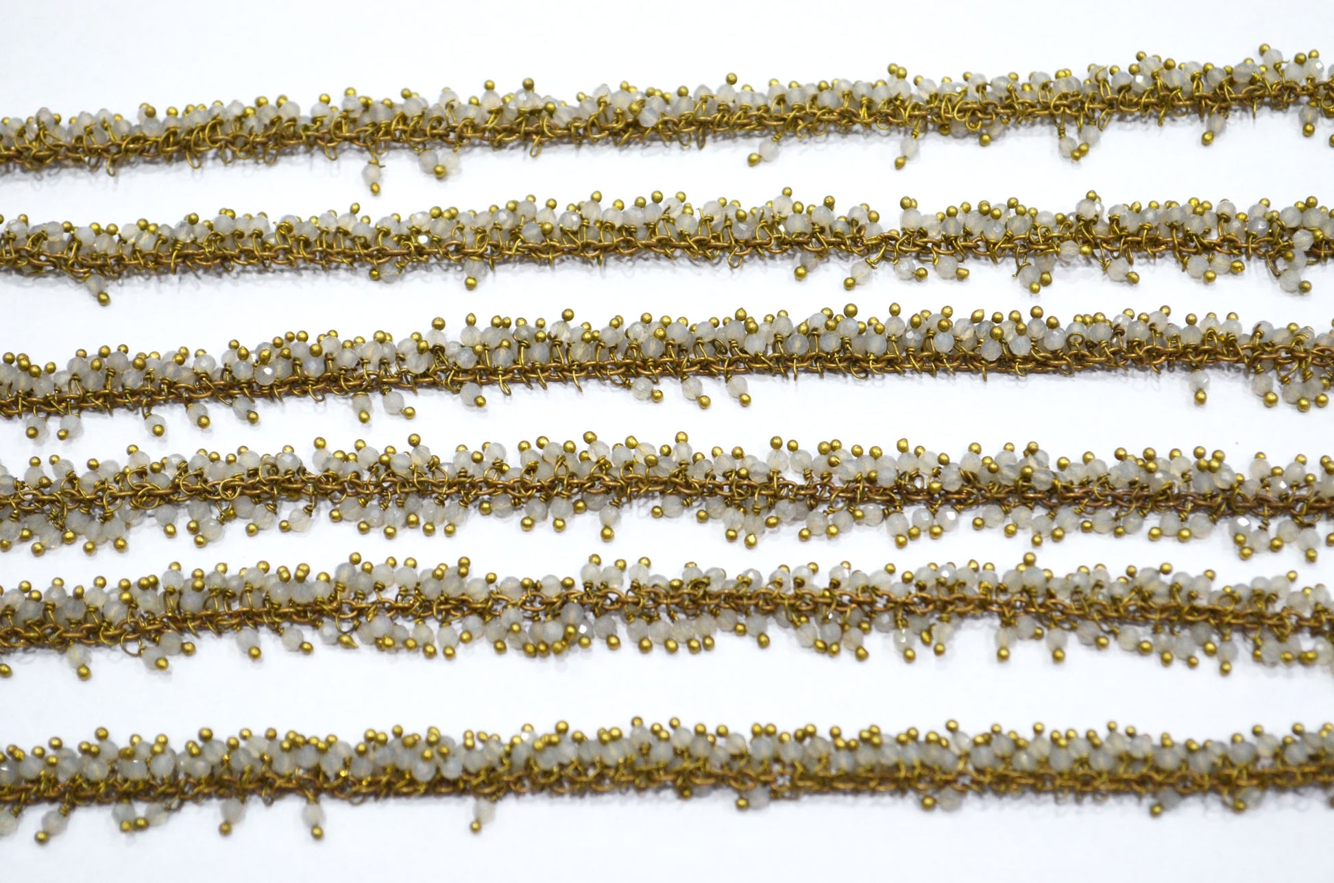Grey Chalcedony Faceted Round Shape Grape Chain , Grey Chalcedony Angoori Cluster Wire Wrapped Chain , 2 mm , RB-5847