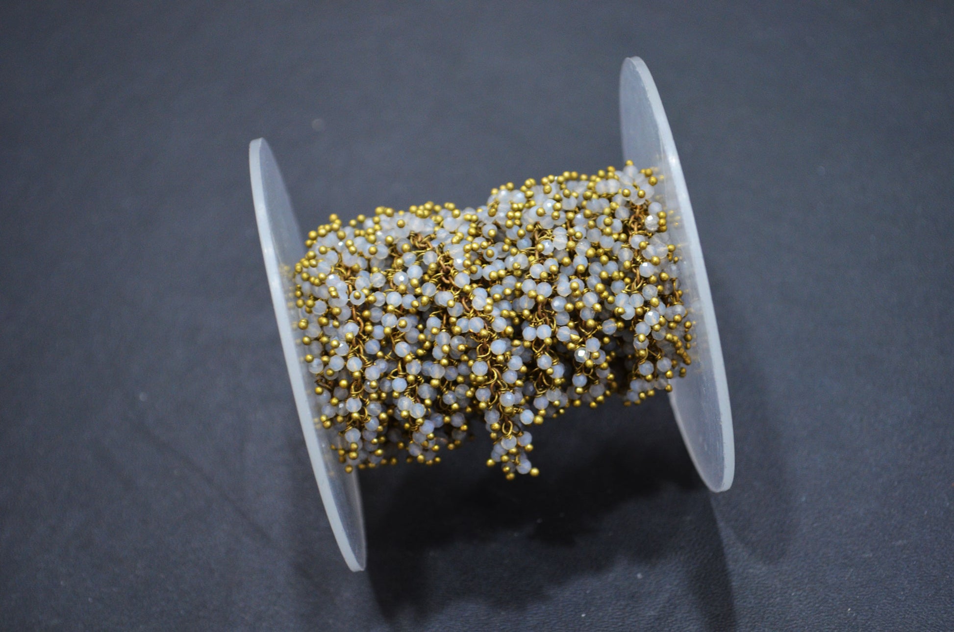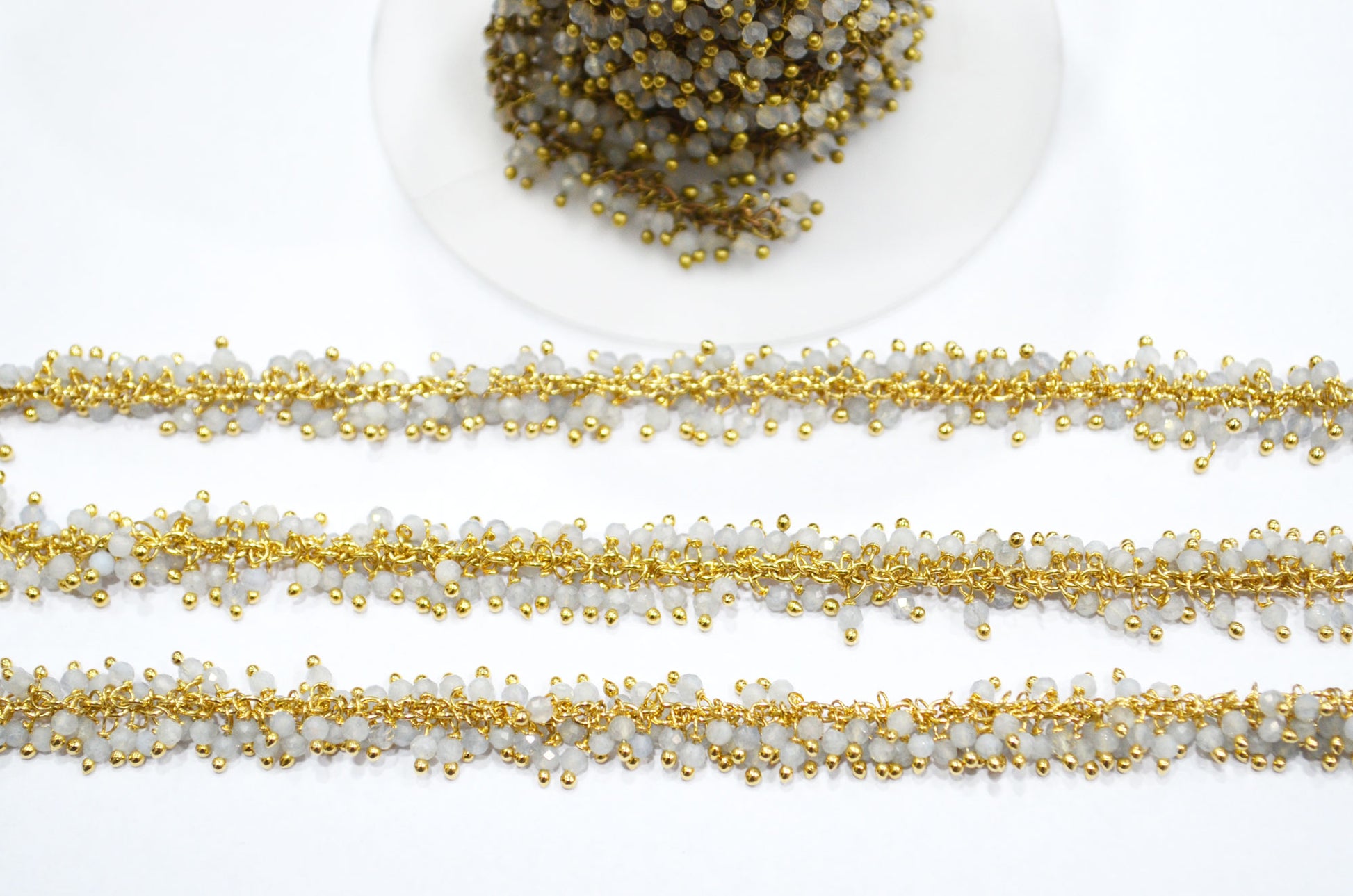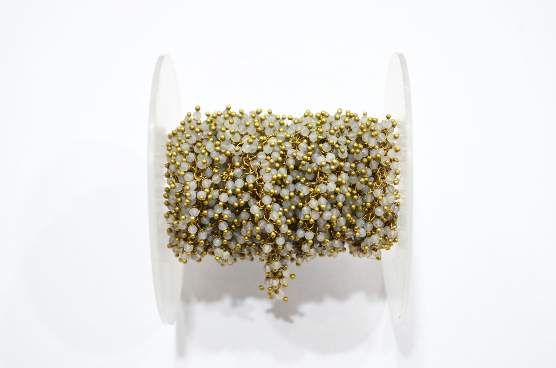 Grey Chalcedony Faceted Round Shape Grape Chain , 2 mm , RB-5847