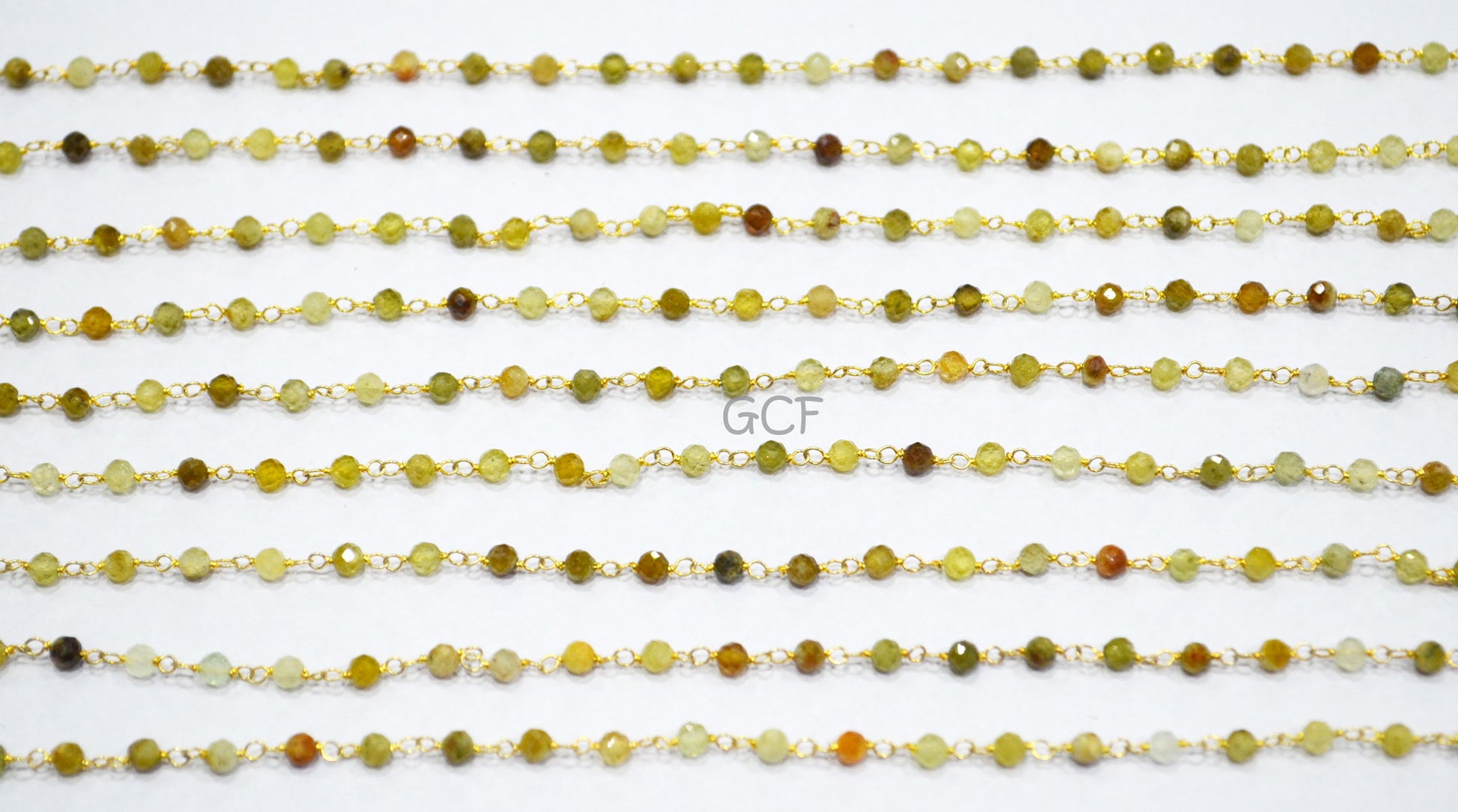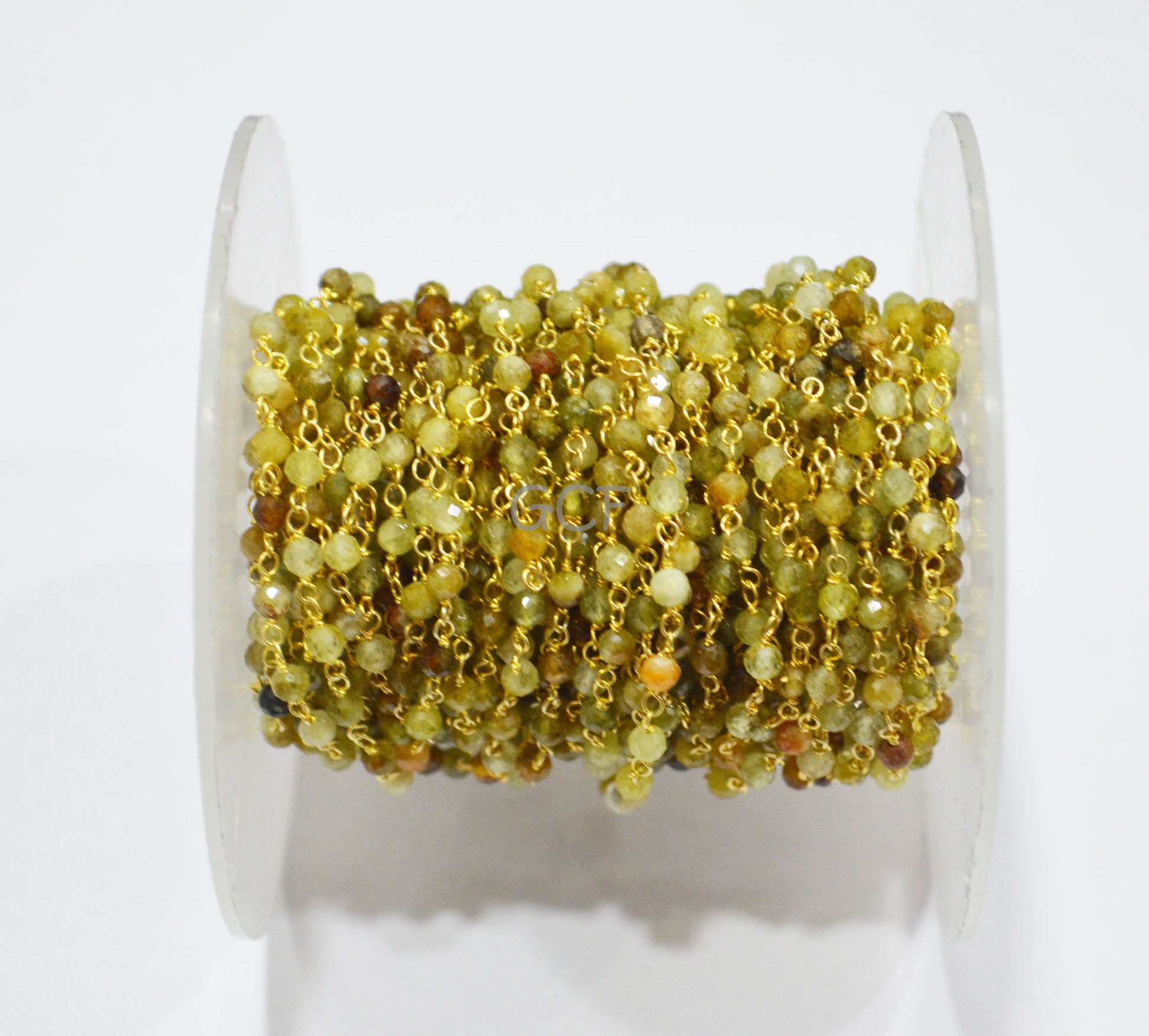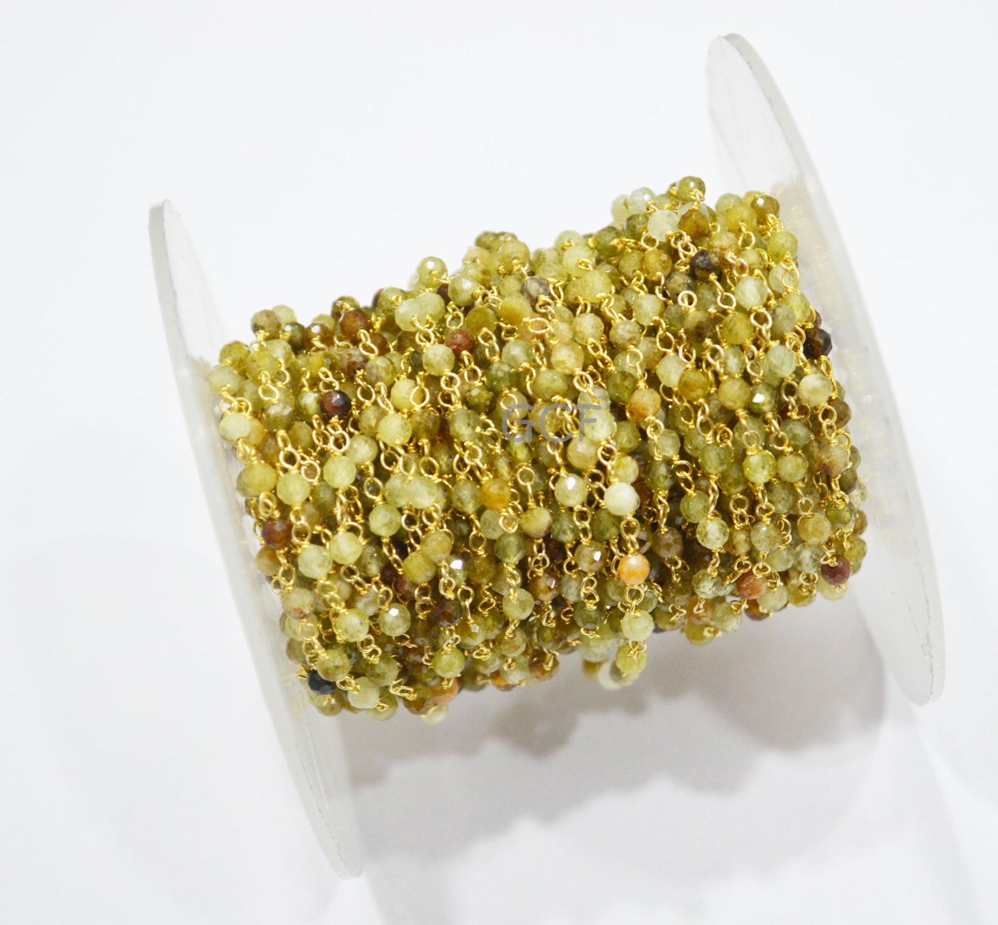 Grossular Garnet Faceted Round Shape Rosary Beaded Chain , Grossular Garnet Round Shape Wire Wrapped ChainΒ , 3 mm , RB-6992