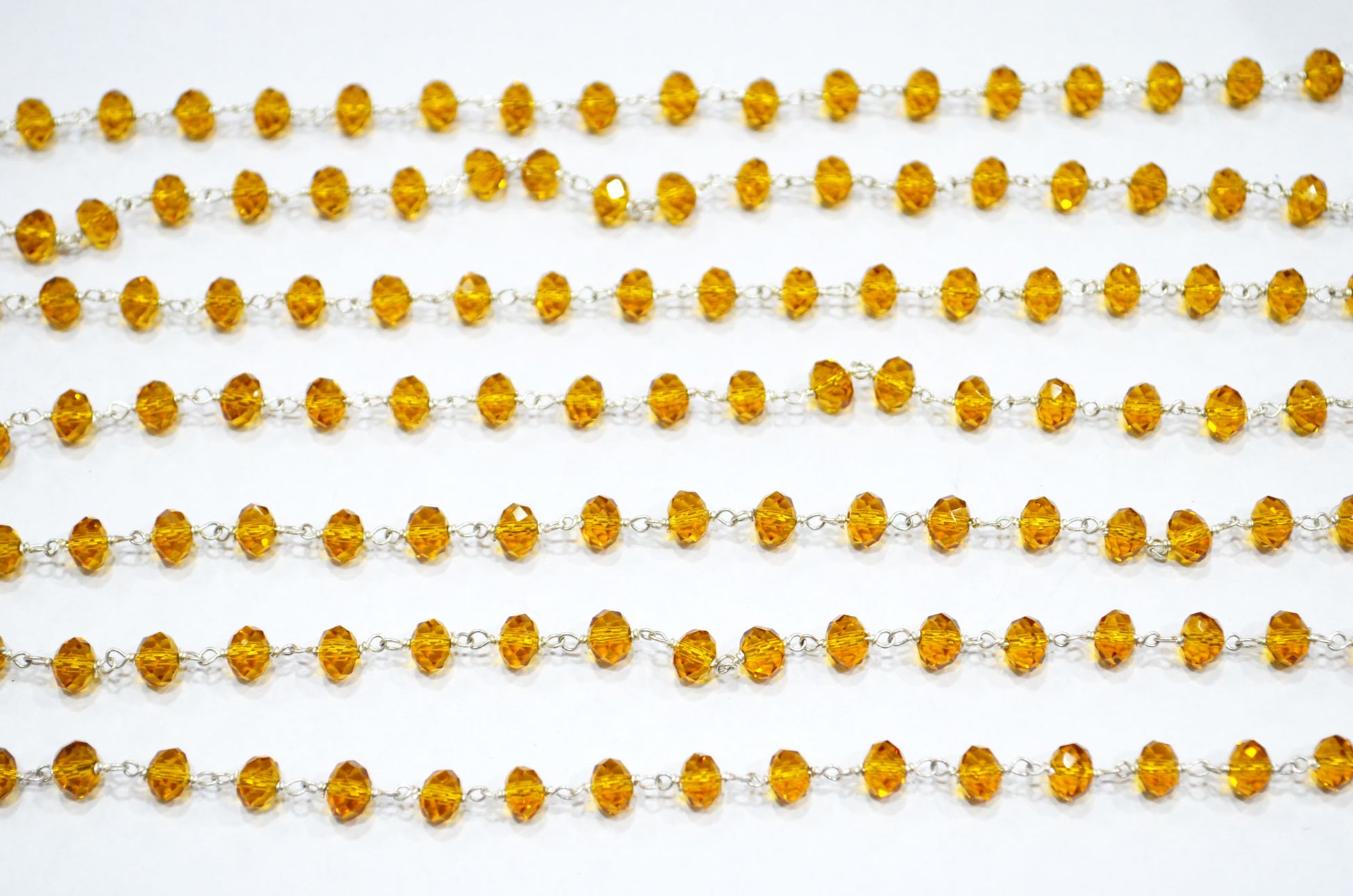 Hessonite Hydro Quartz Faceted Rondelle Shape Rosary Beaded Chain , Hessonite Hydro Quartz Wire Wrapped Chain , Sold By Foot , 6 - 6.25 mm , RB-5839