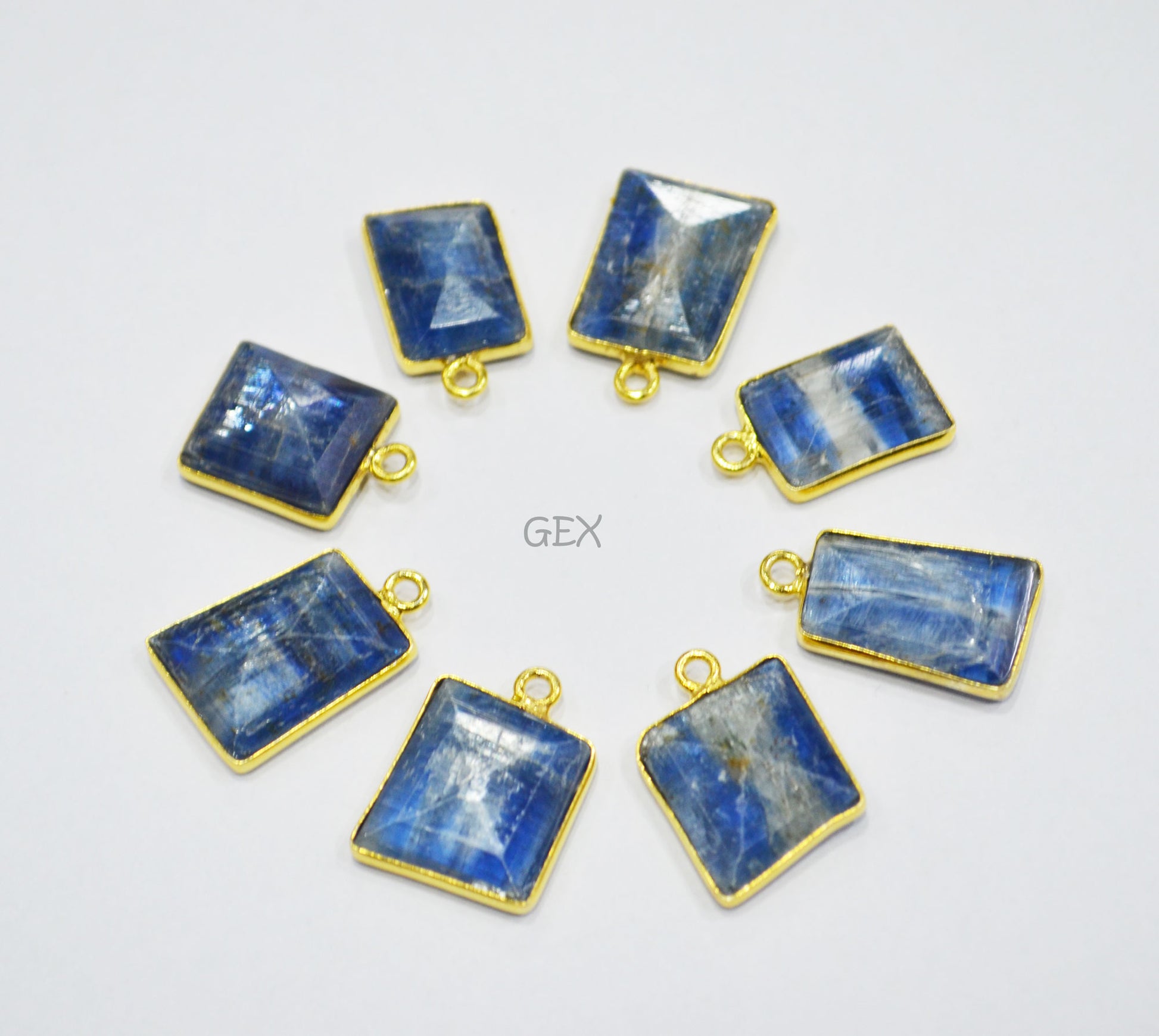 Himalayan Kyanite Faceted Fancy Shape Connector , Himalayan Kyanite Single Bail Connector , Sold By Piece , 11x14 - 15x23 mm , RB-7125