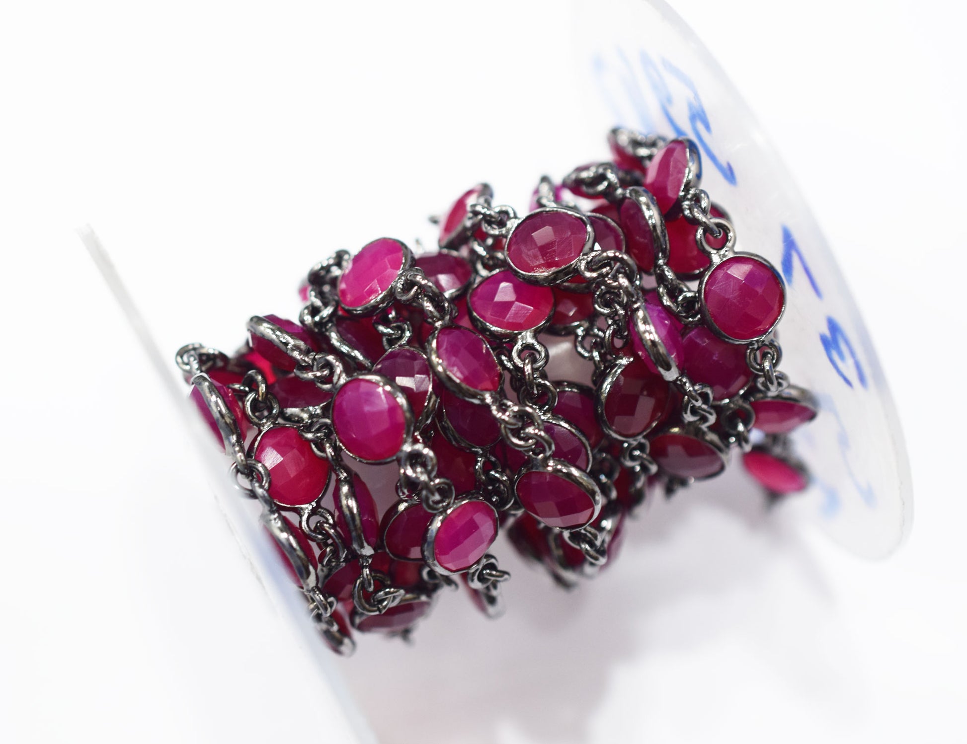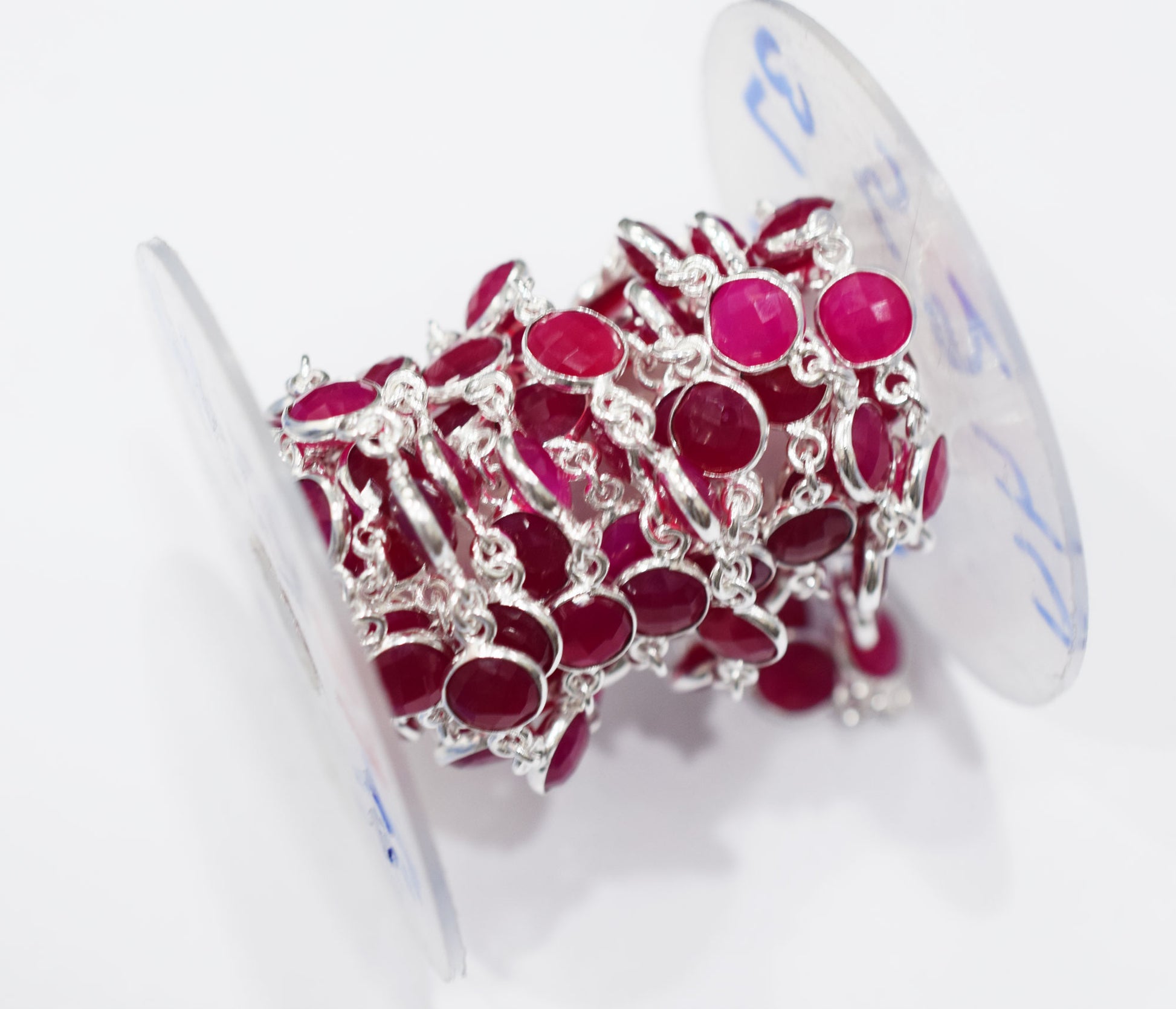 Hot Pink Chalcedony Faceted Coin Shape Connector Chain , Hot Pink Chalcedony Bezel Link ChainΒ , 9 mm , RB-6690