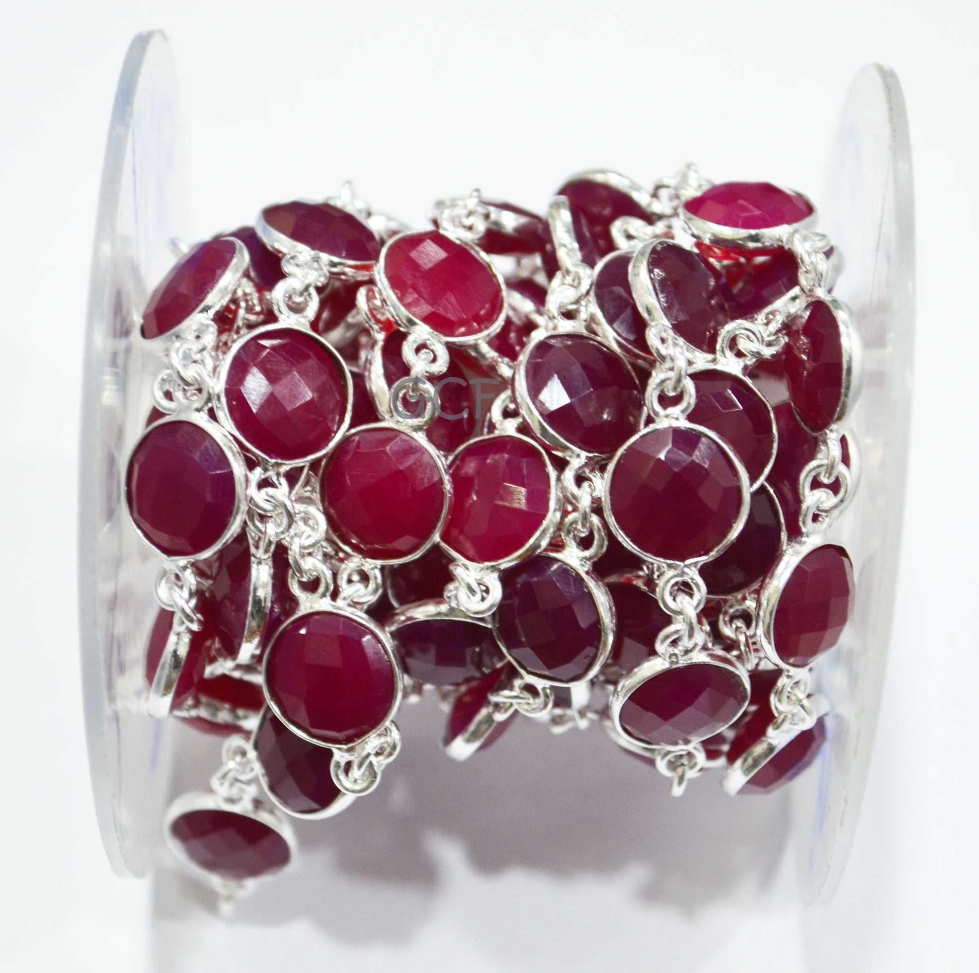 Hot Pink Chalcedony Faceted Coin Shape Connector Chain , Hot Pink Chalcedony Coin Bezel Link ChainΒ , 11 mm , 6777