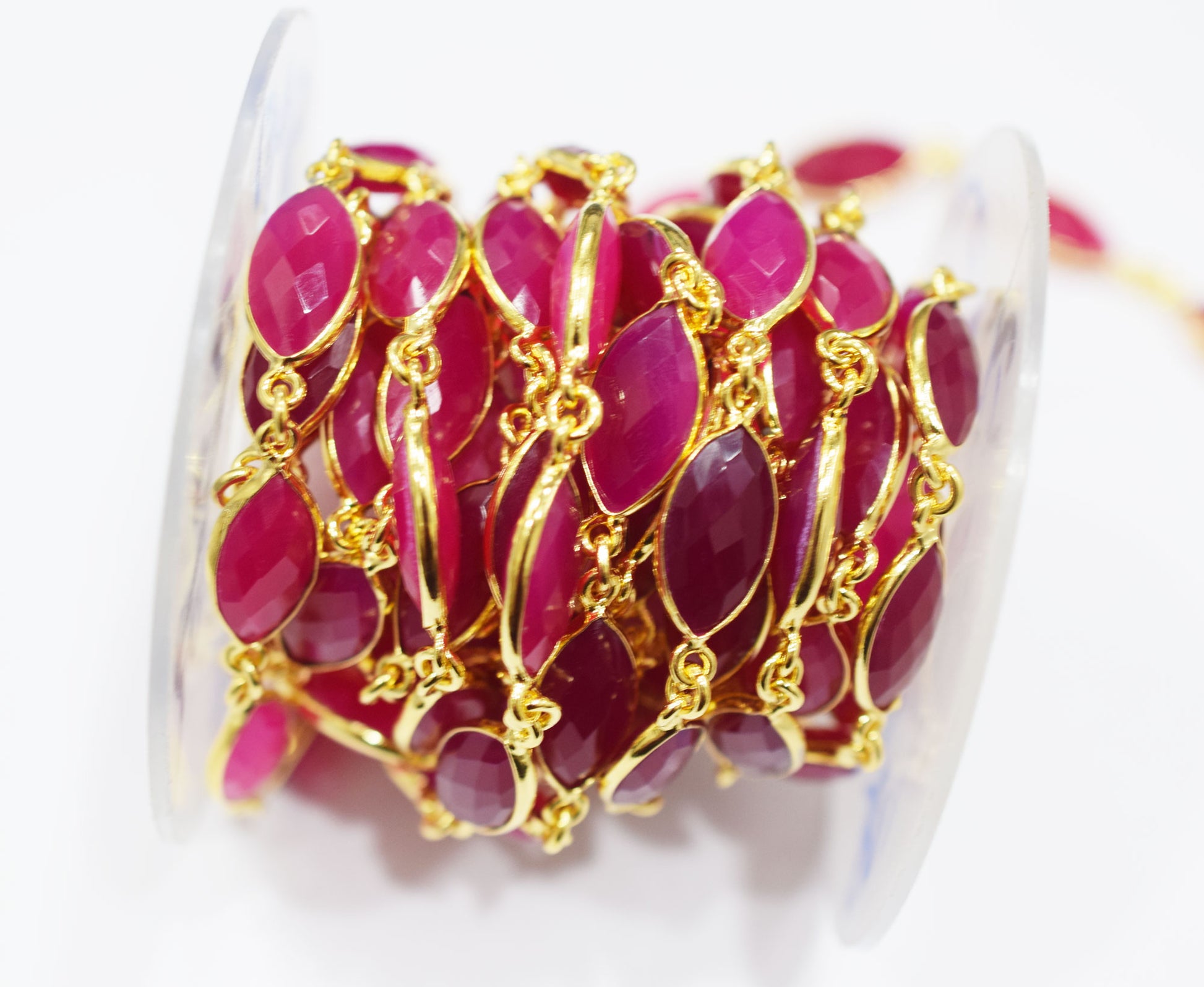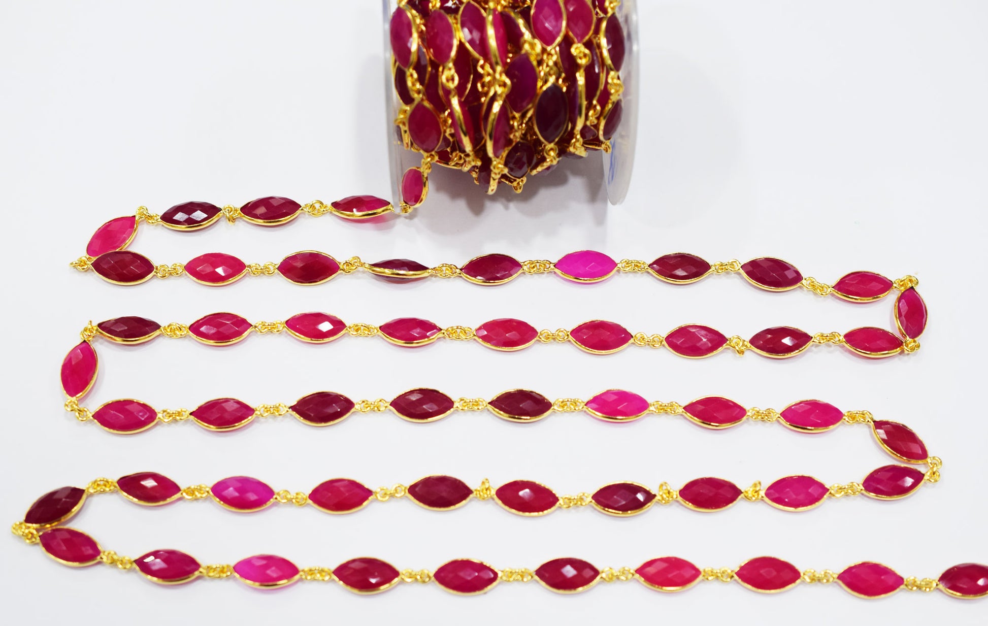 Hot Pink Chalcedony Faceted Marquise Shape Connector Chain , Hot Pink Chalcedony Bezel Link ChainΒ , 9x17 mm , RB-6681
