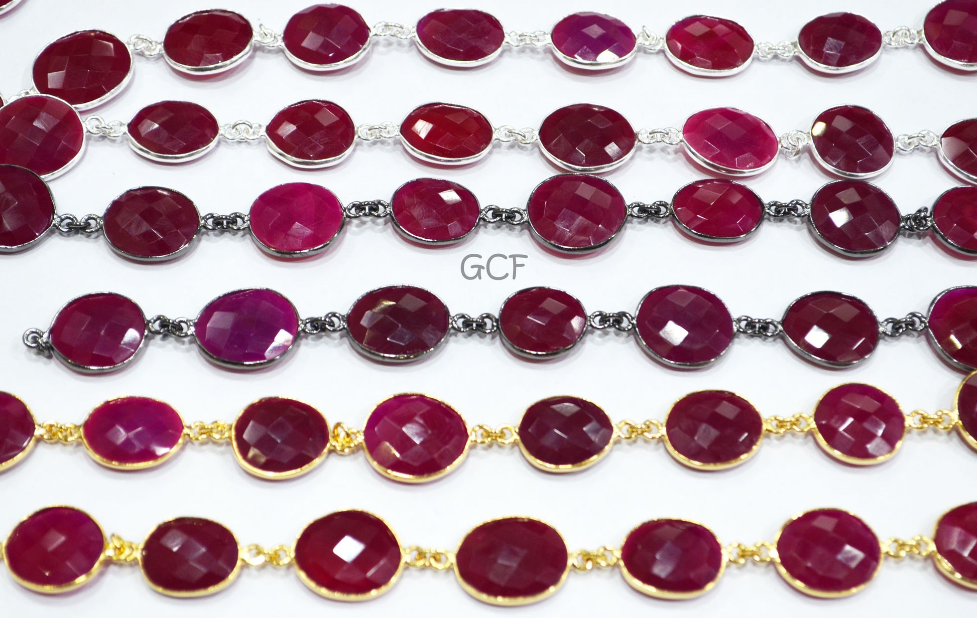 Hot Pink Chalcedony Faceted Slice Shape Connector Chain ,Hot Pink Chalcedony Slice Bezel Link ChainΒ , 14x16 - 17x20 mm , 6779