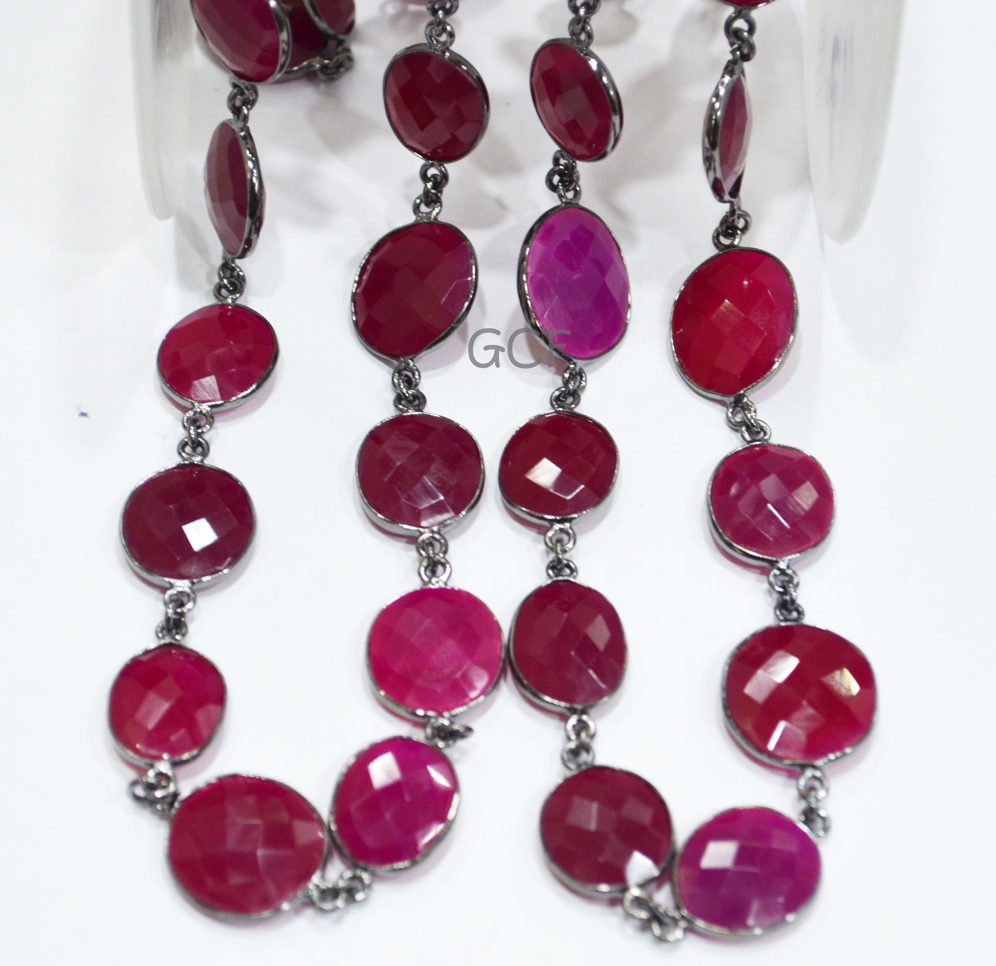 Hot Pink Chalcedony Faceted Slice Shape Connector Chain ,Hot Pink Chalcedony Slice Bezel Link Chain , 14x16 - 17x20 mm , 6779