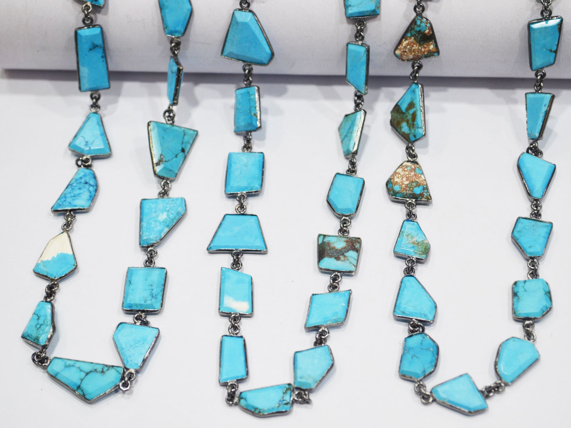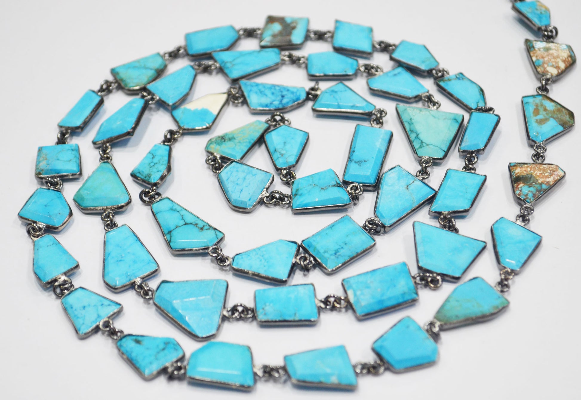 Howlite Turquoise Crown Cut Fancy Shape Connector Chain , Howlite Turquoise Bezel Link Chain , Β 13 - 21 mm , RB-6496