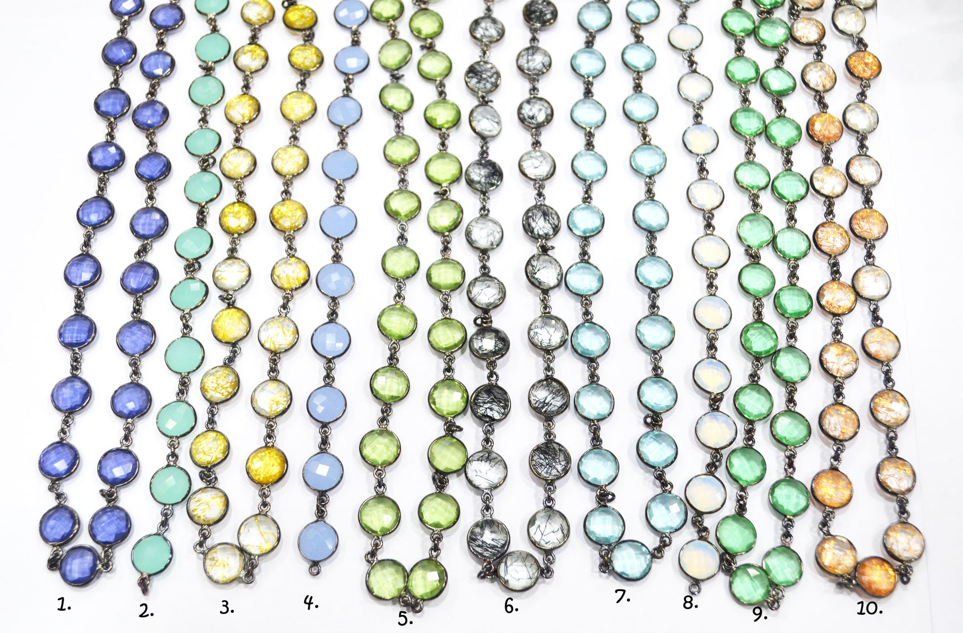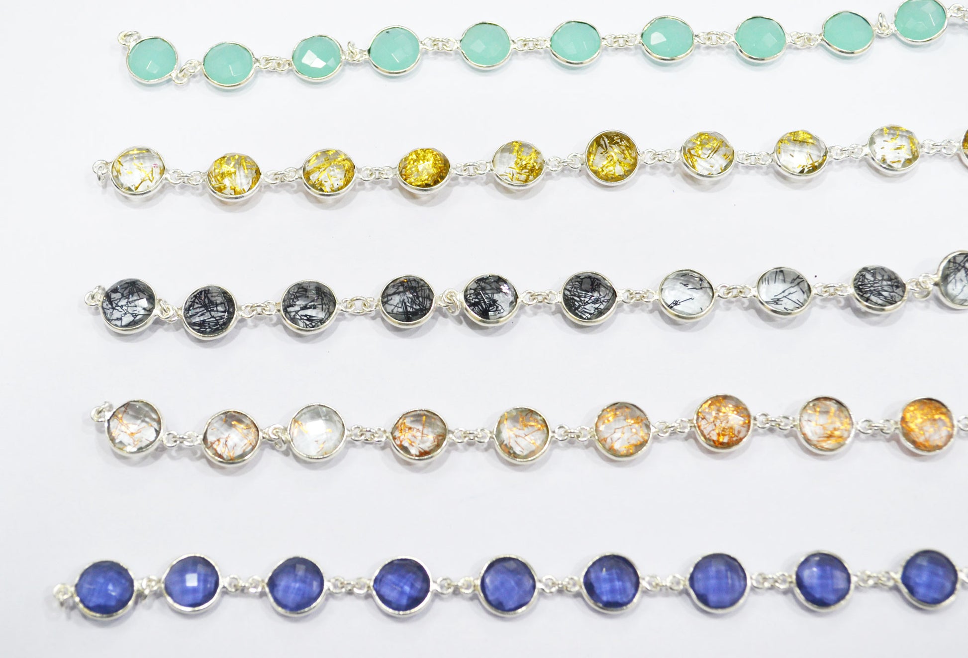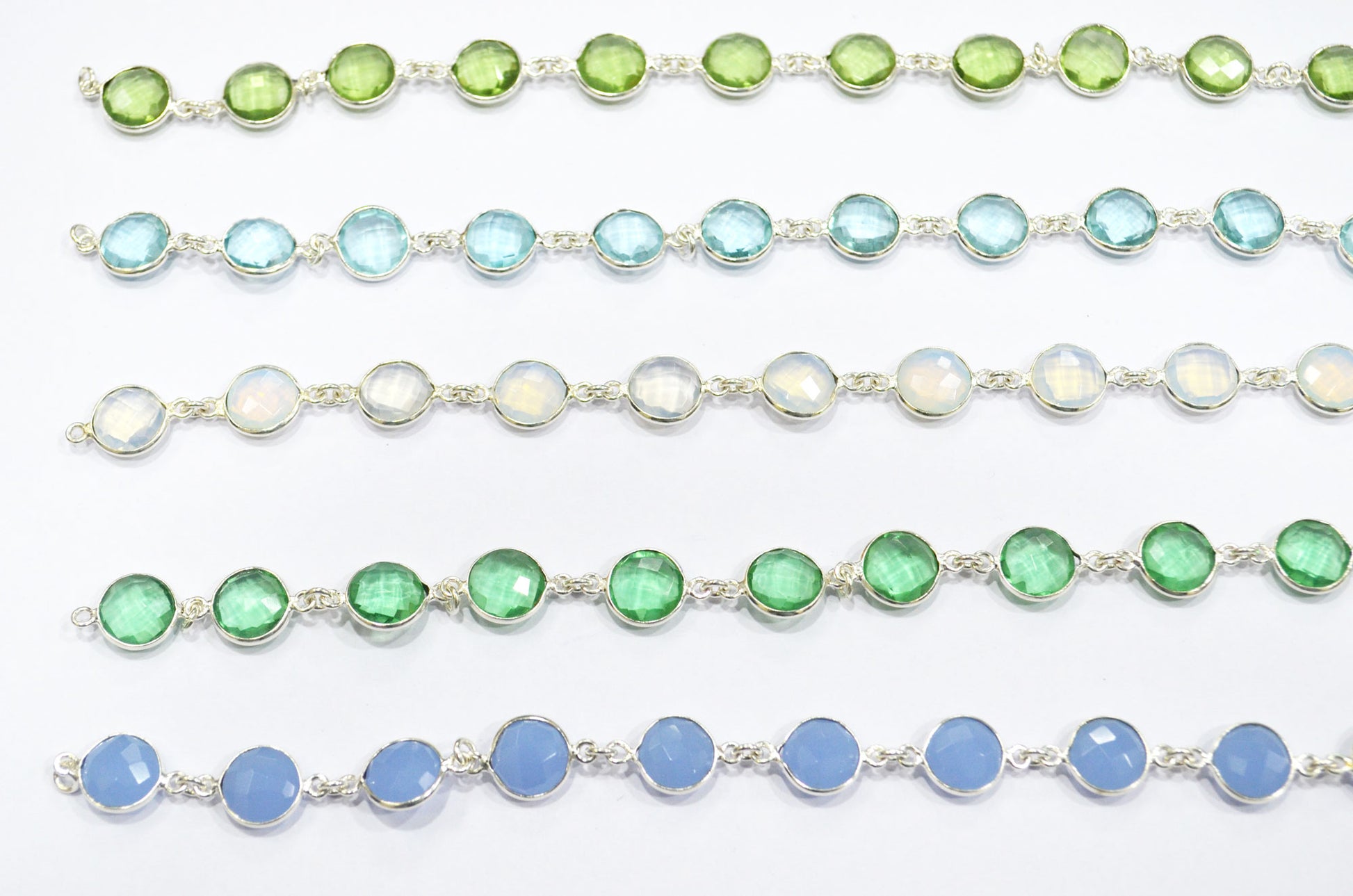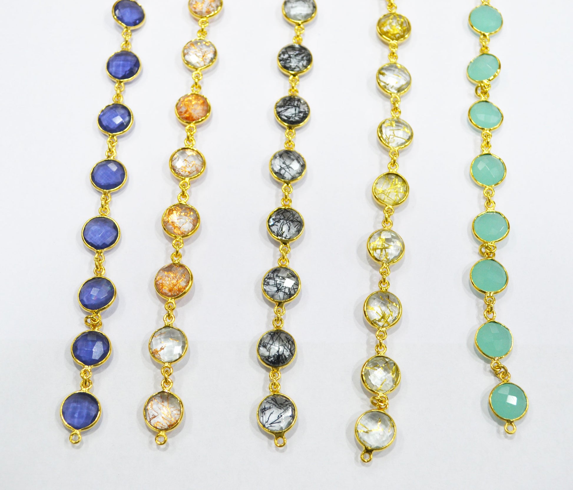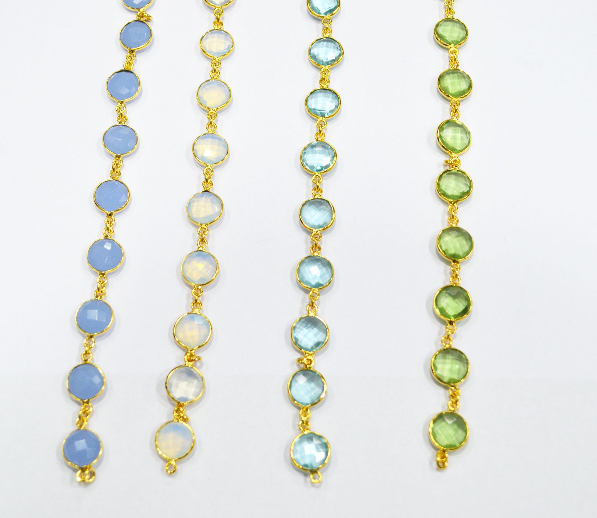 Multi Hydro Quartz Coin Shape (Glass) Connector Chain - Multi Hydro Quartz Faceted Bezel Connector Station Link Chain, Sold By Foot, 11 mm - 6282