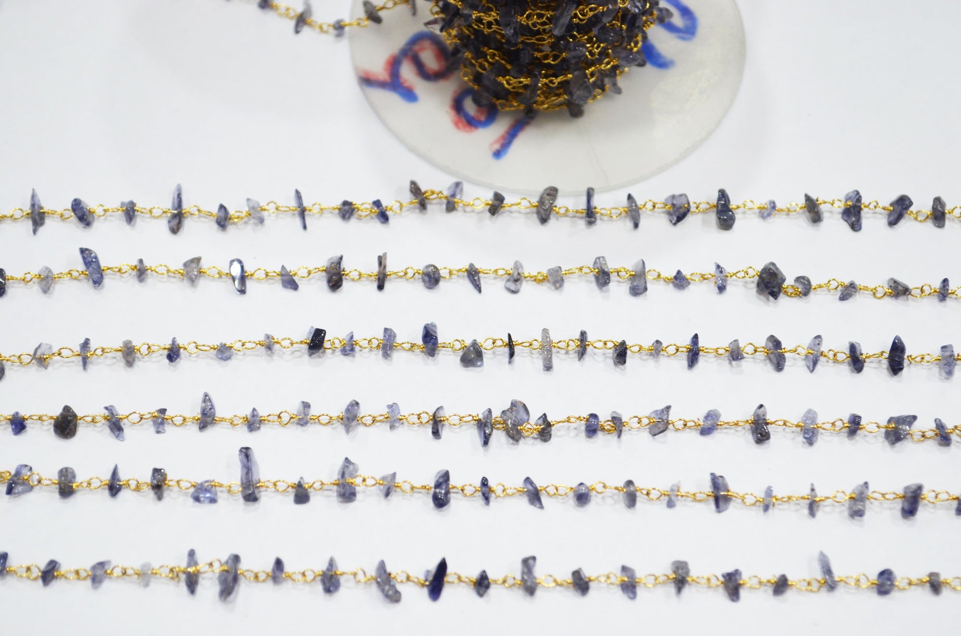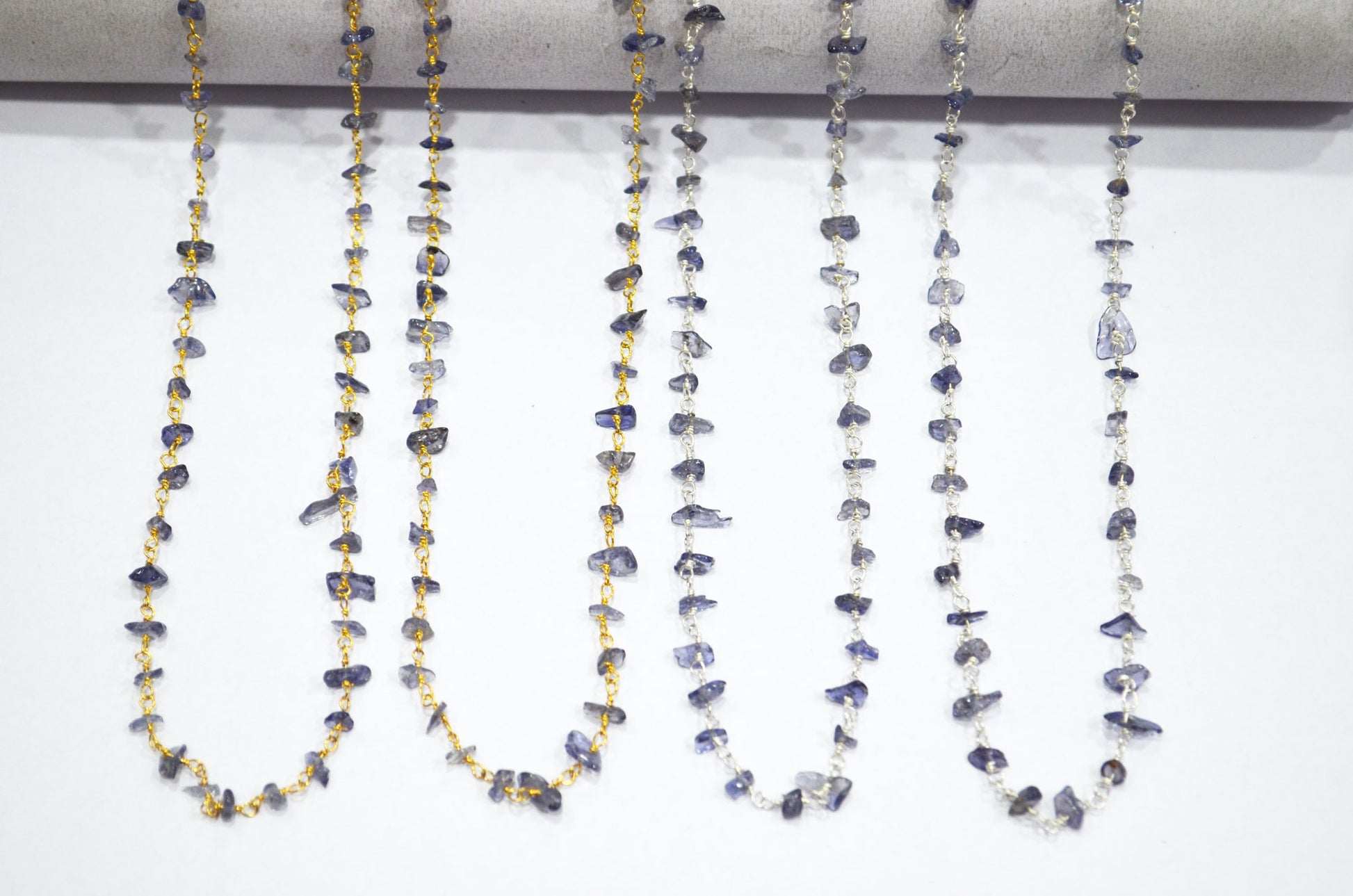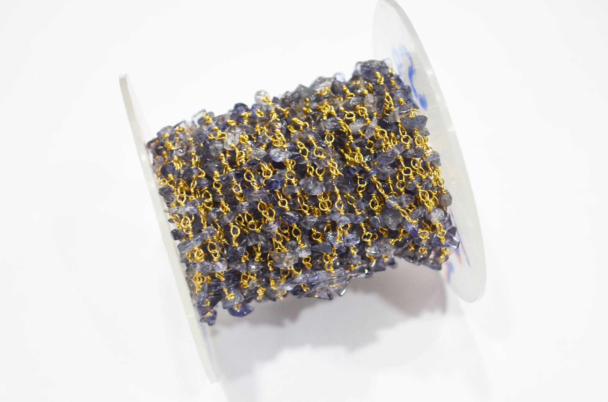 Iolite Organic Polished Irregular Flat Chips Rosary Beaded ChainΒ , Iolite Smooth Rough Nuggets Chips Wire Wrapped Chain , 2 - 3 mm , RB-5900