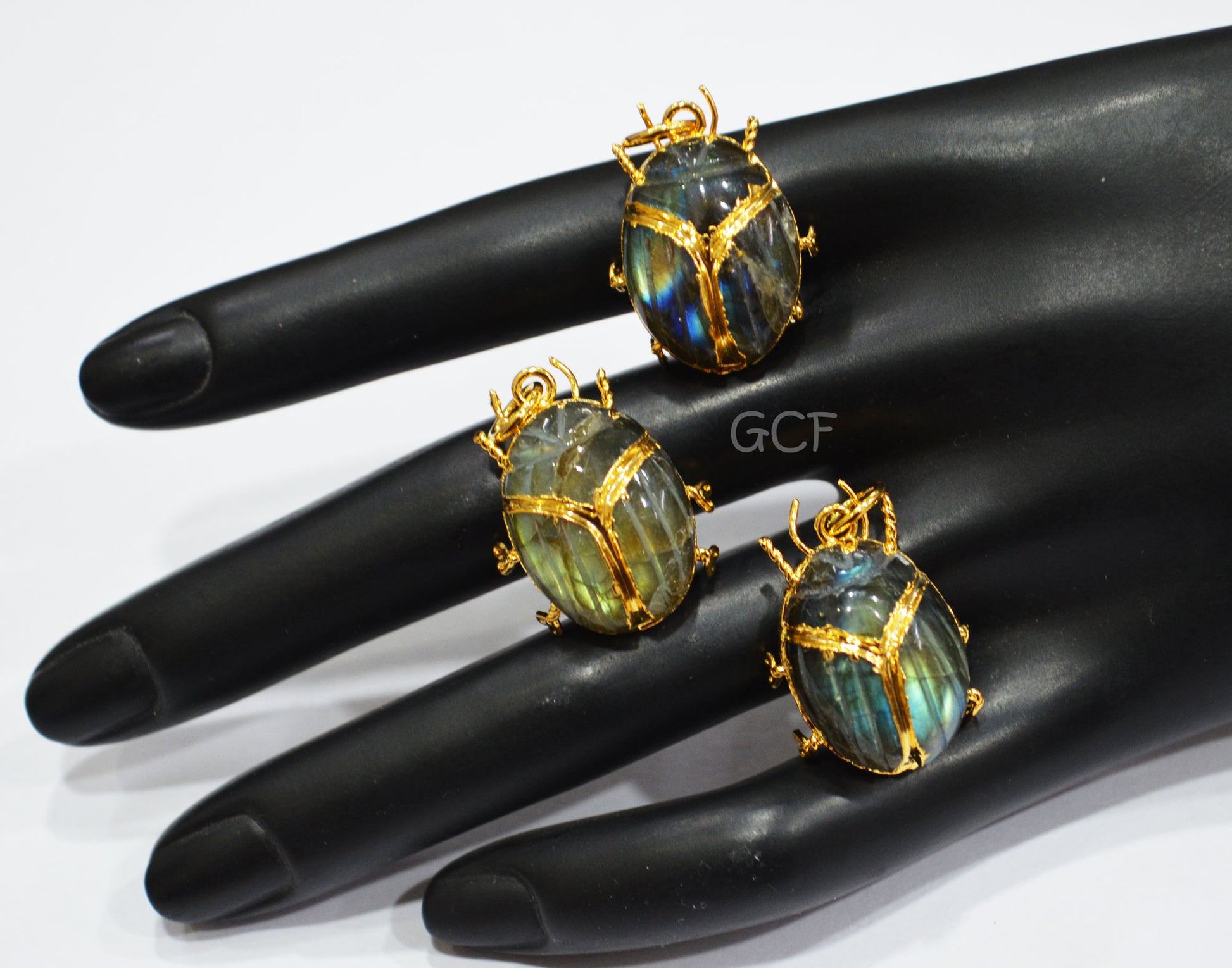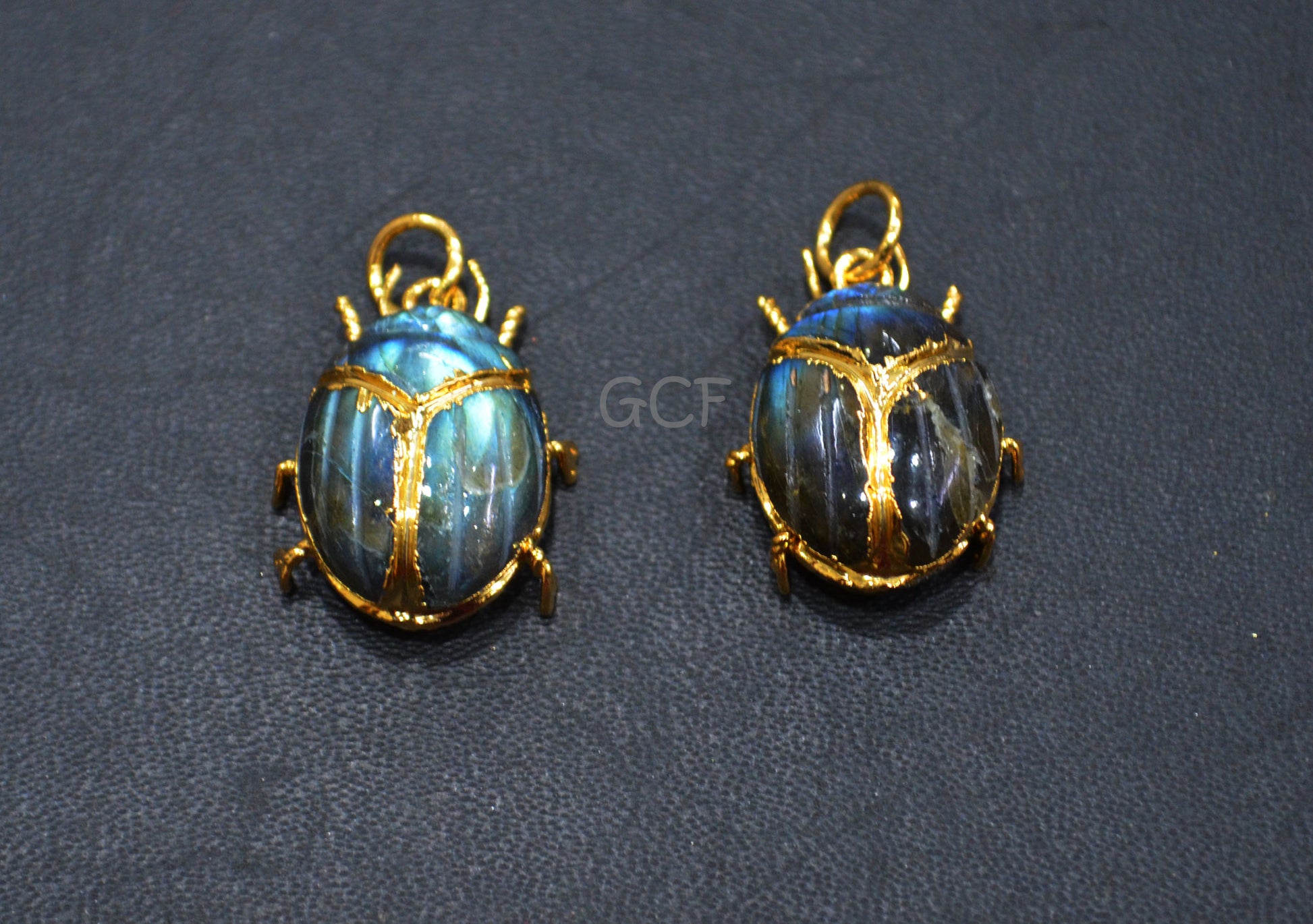 Labradorite Electroplated Beetle Pendant , Egyptian Scarab Labradorite Charm , Sold By Piece , Use To Make Jewelry , 2.25 - 2.50 cm , 31347
