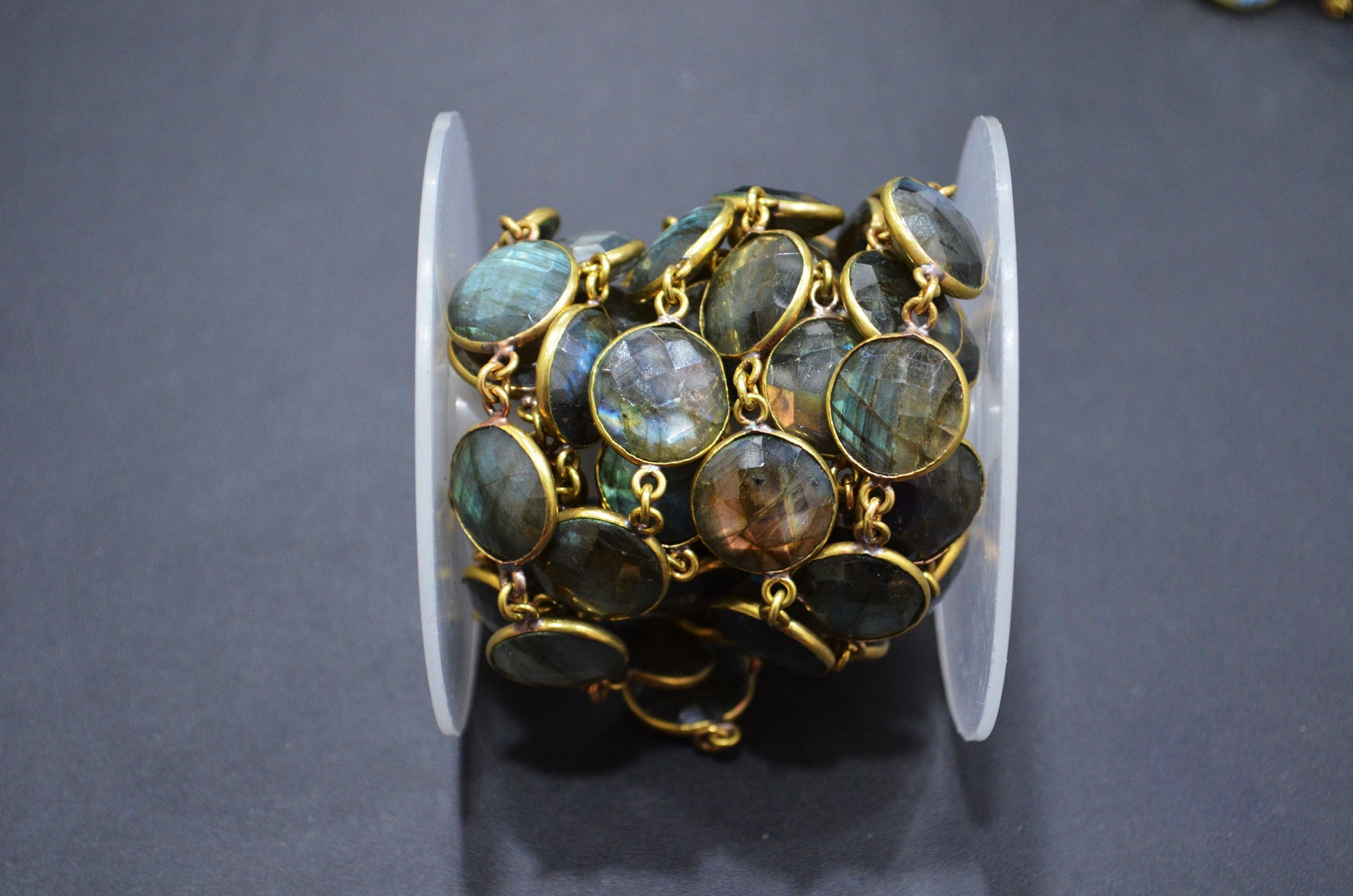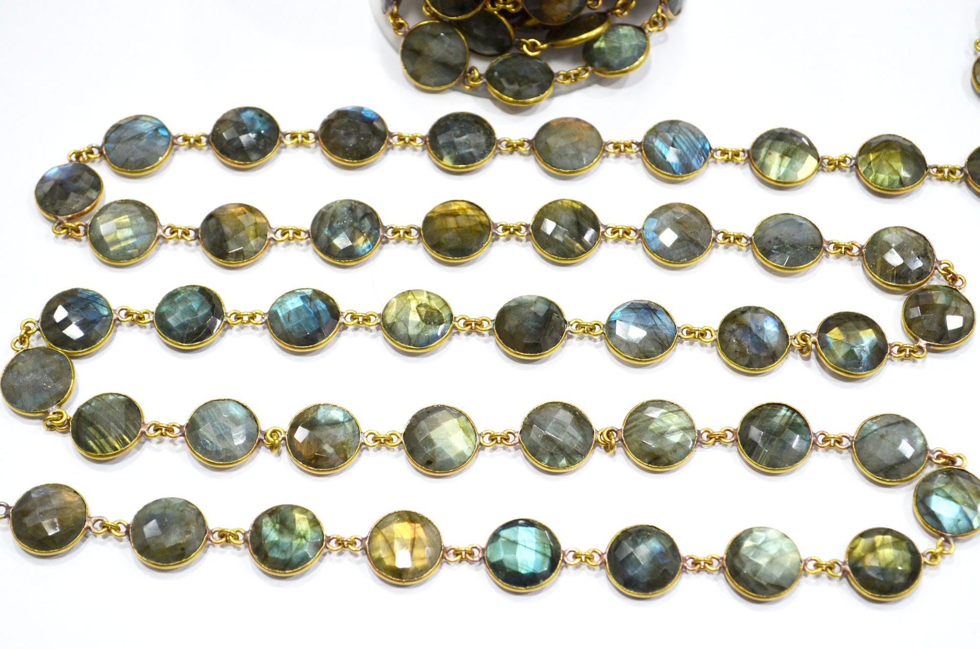 Labradorite Faceted Coin Shape Connector Chain , Labradorite Coin Shape Bezel Link Chain , 15 mm , RB-5717