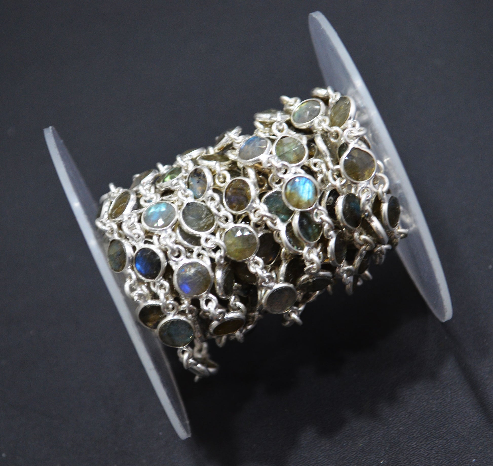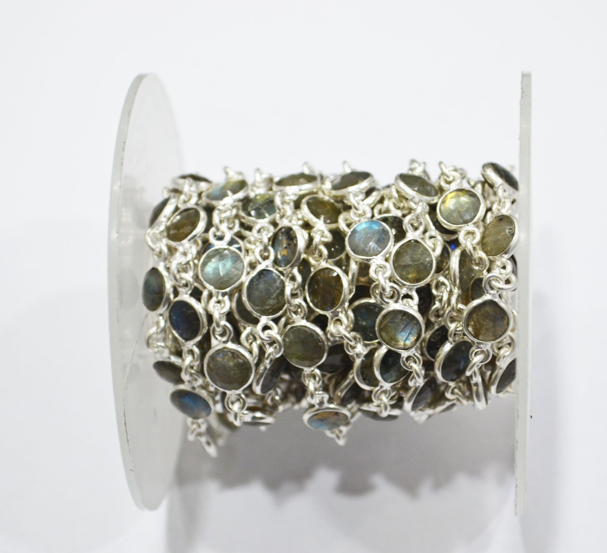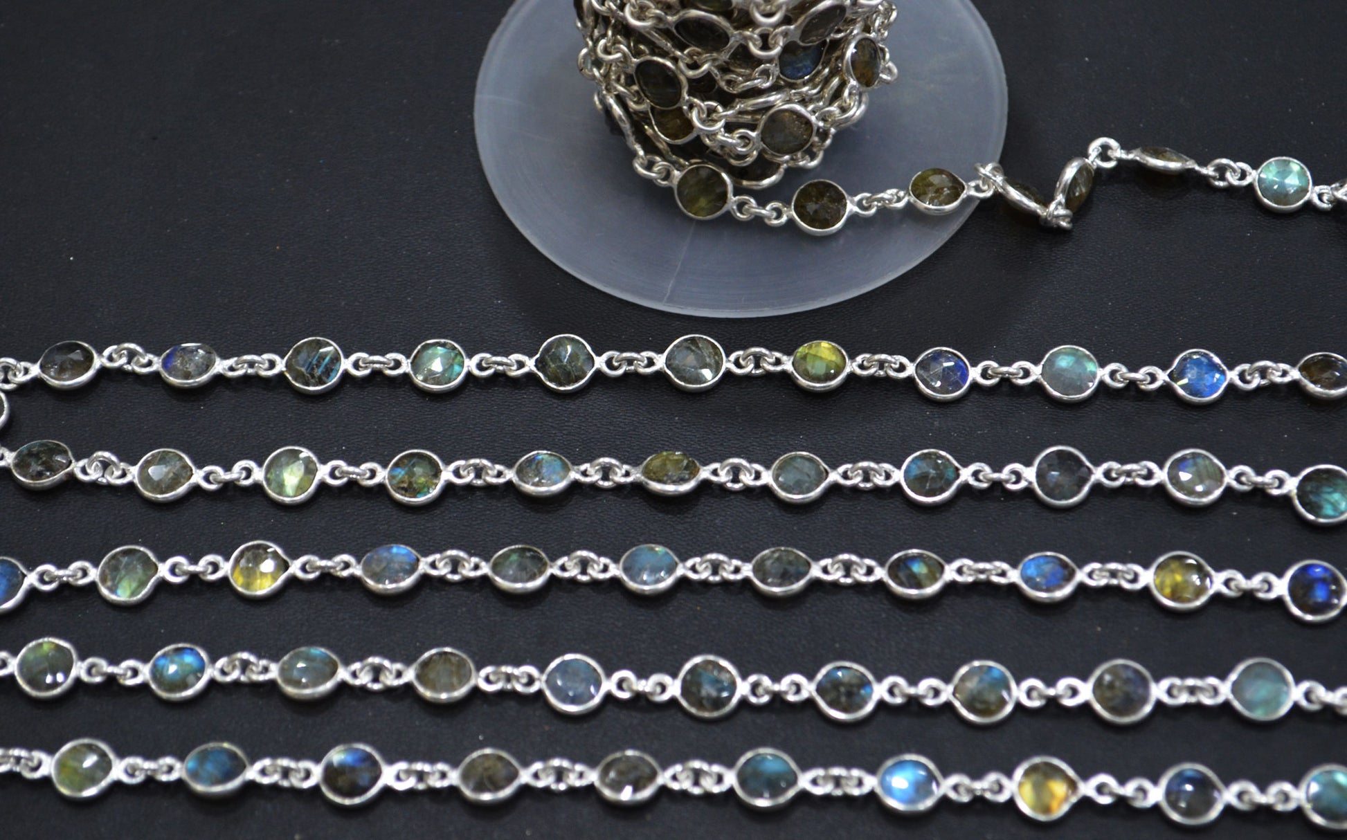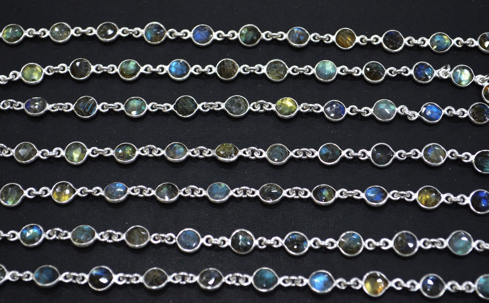 Labradorite Faceted Coin Shape Connector Chain , 6 mm , RB-6285